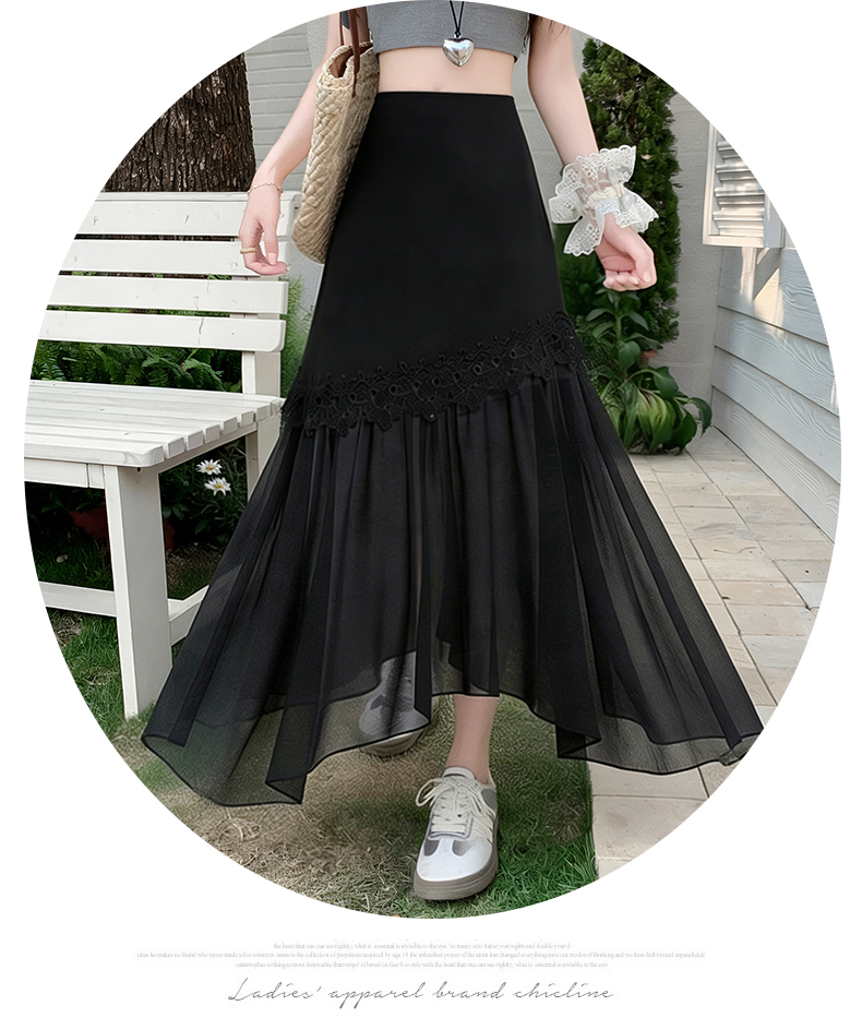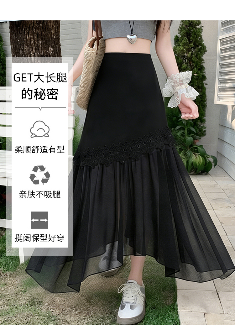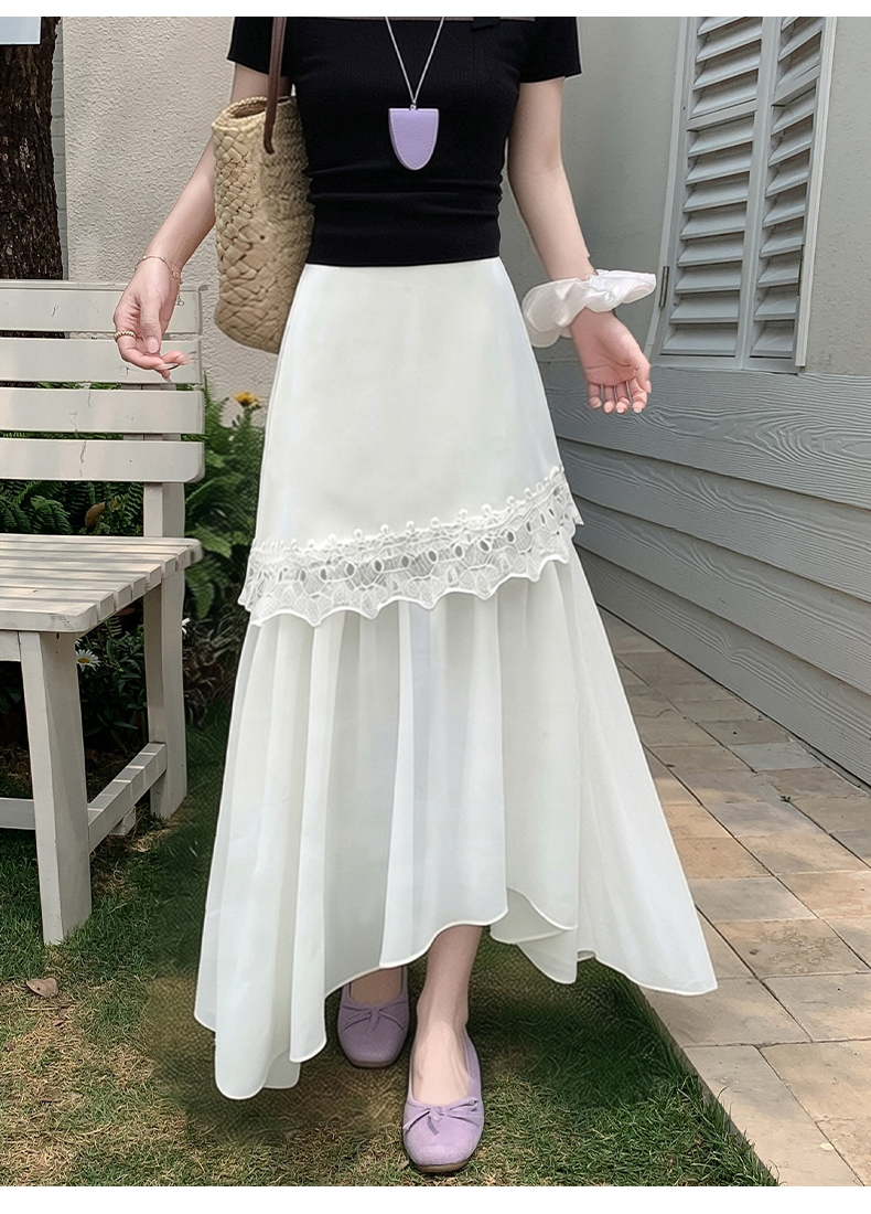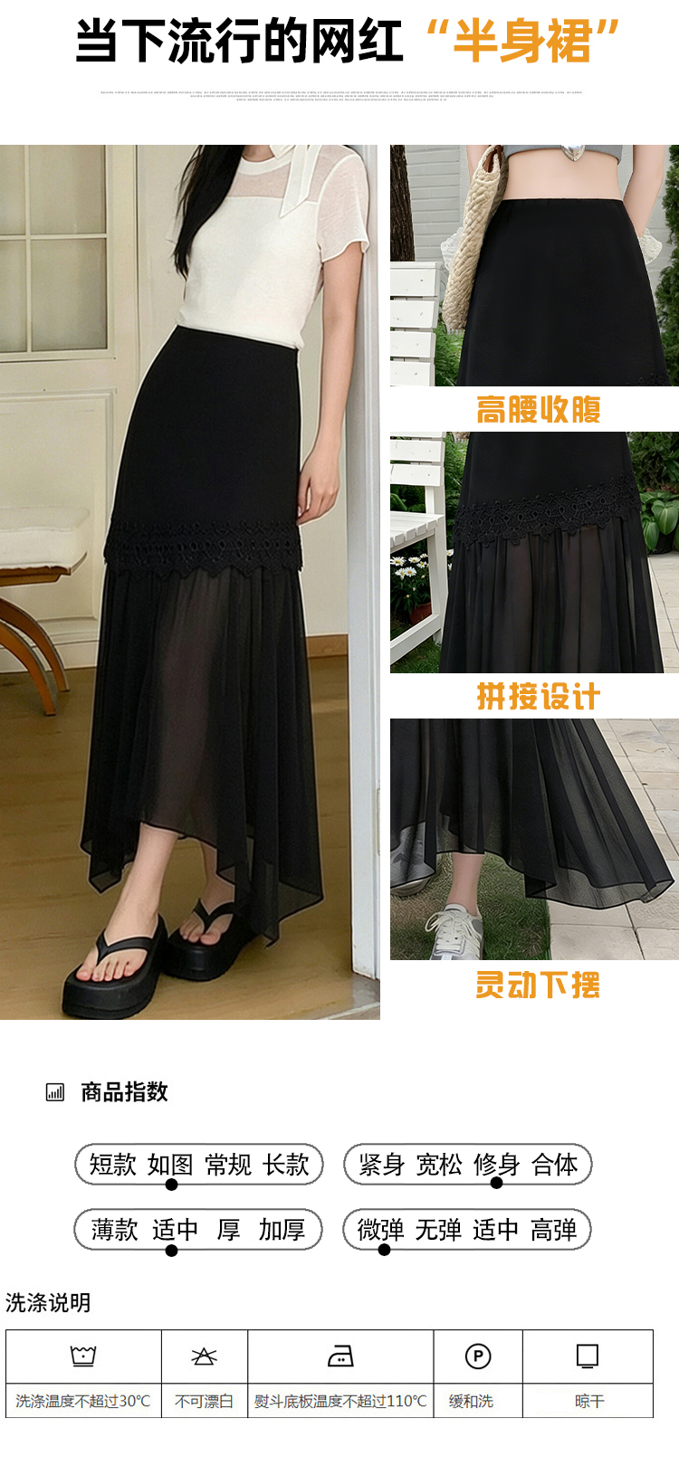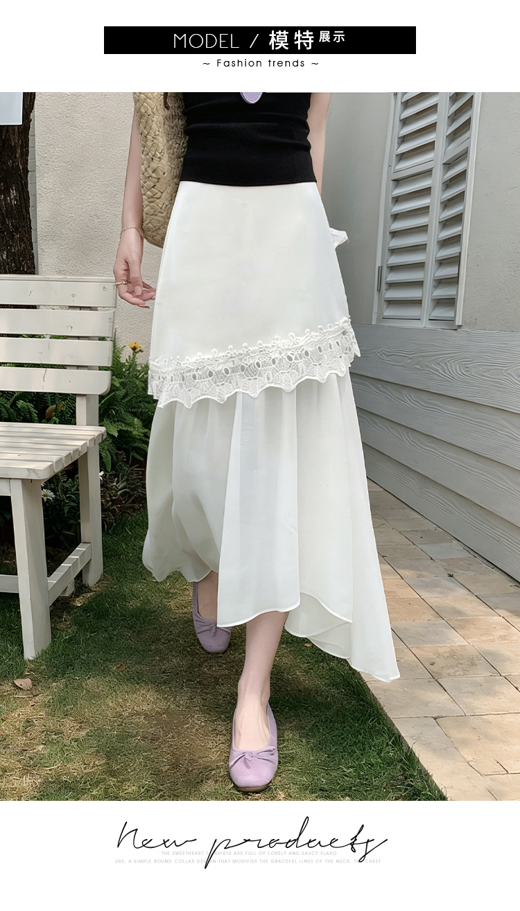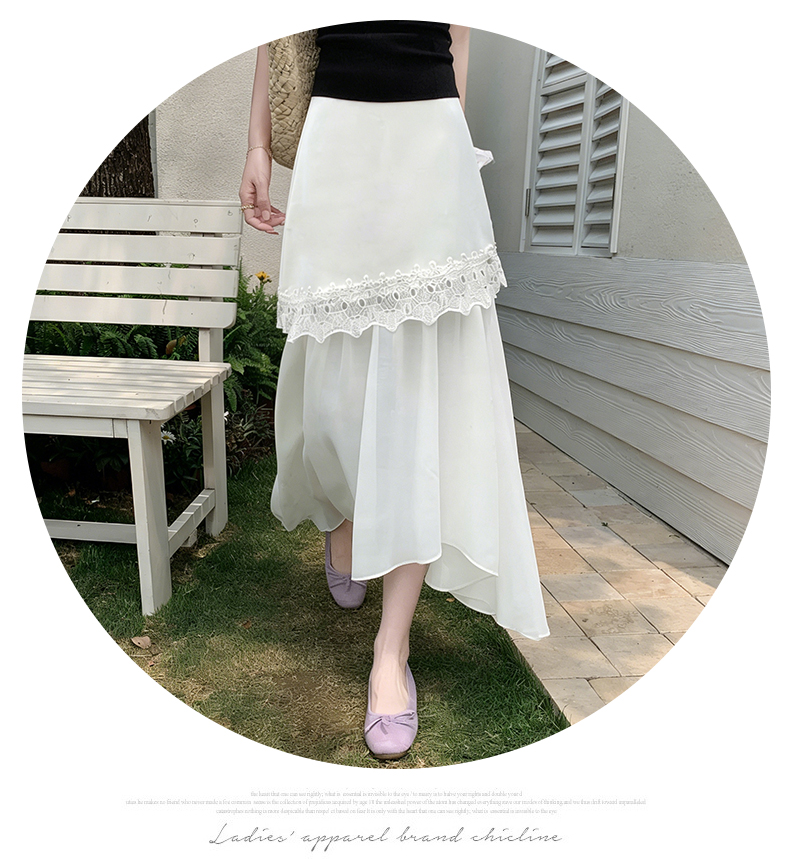 실사 봄 여름 새로운 출퇴근 바람 레이스 레이스 명중 재료 패치워크 쉬폰 불규칙 A라인 스커트 계층의 감각 반 스커트