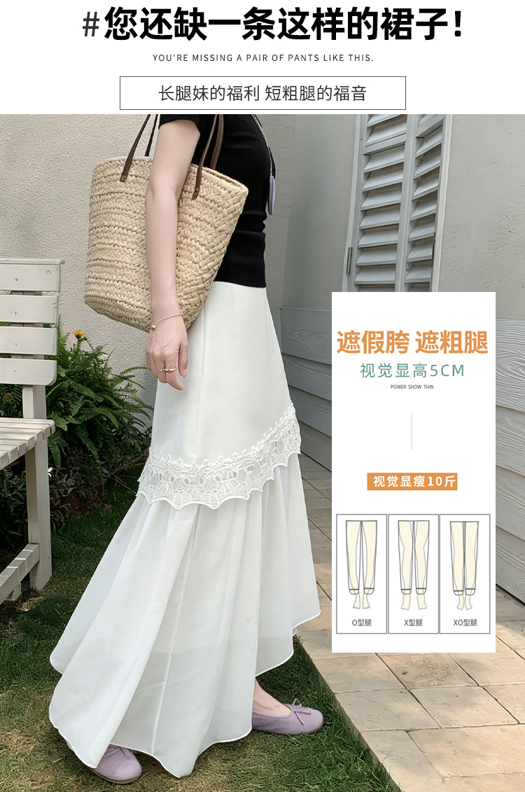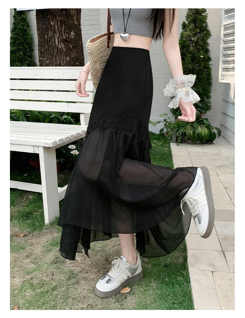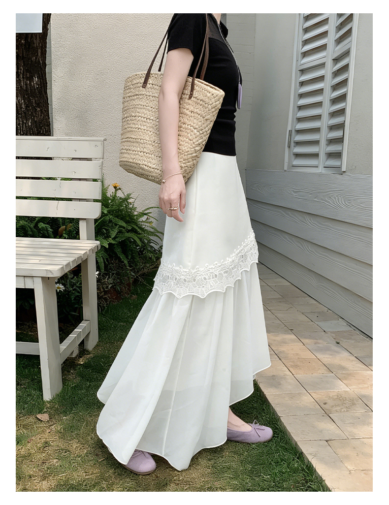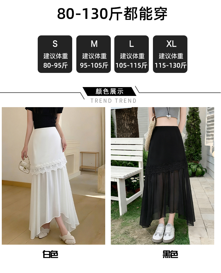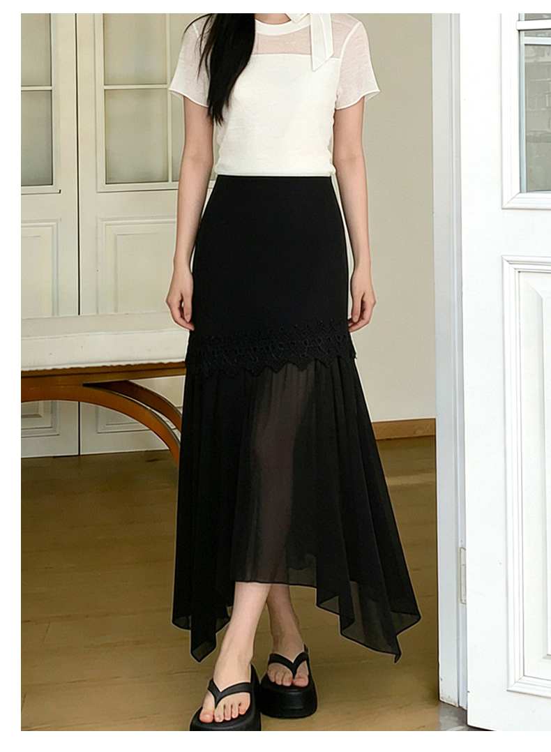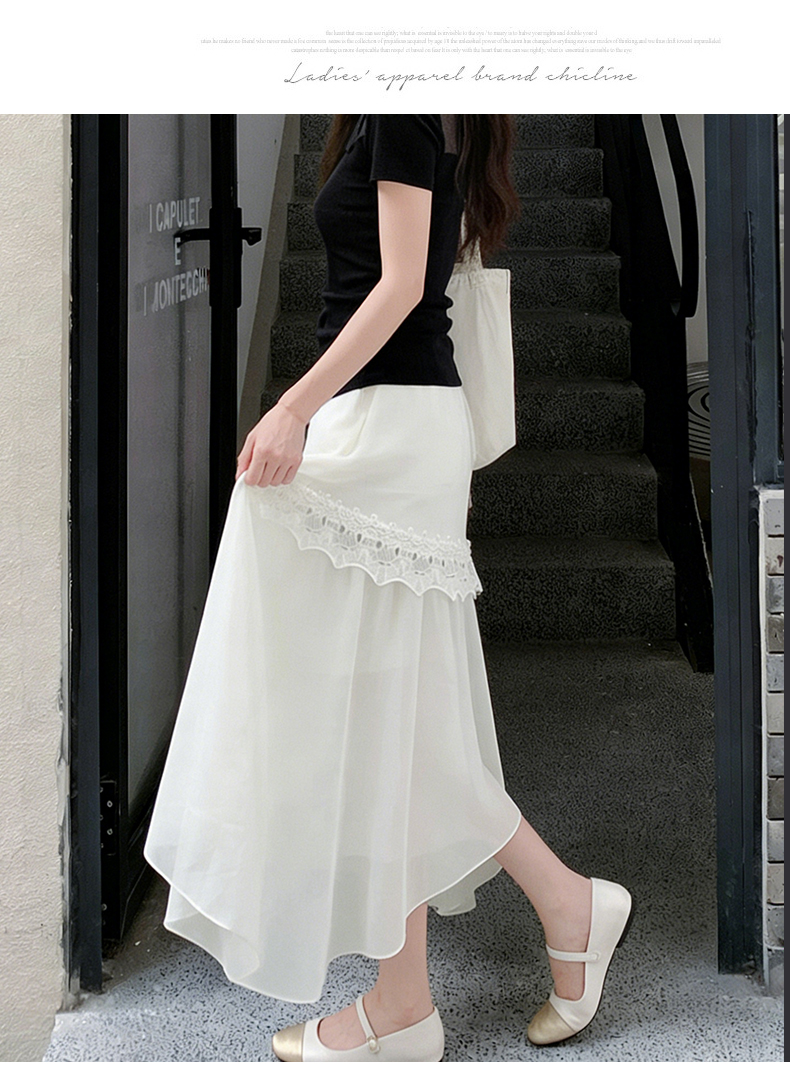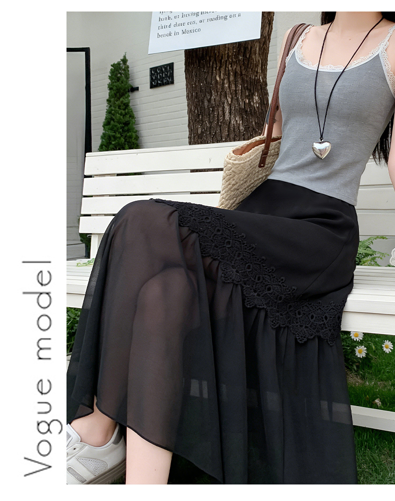 실사 봄 여름 새로운 출퇴근 바람 레이스 레이스 명중 재료 패치워크 쉬폰 불규칙 A라인 스커트 계층의 감각 반 스커트