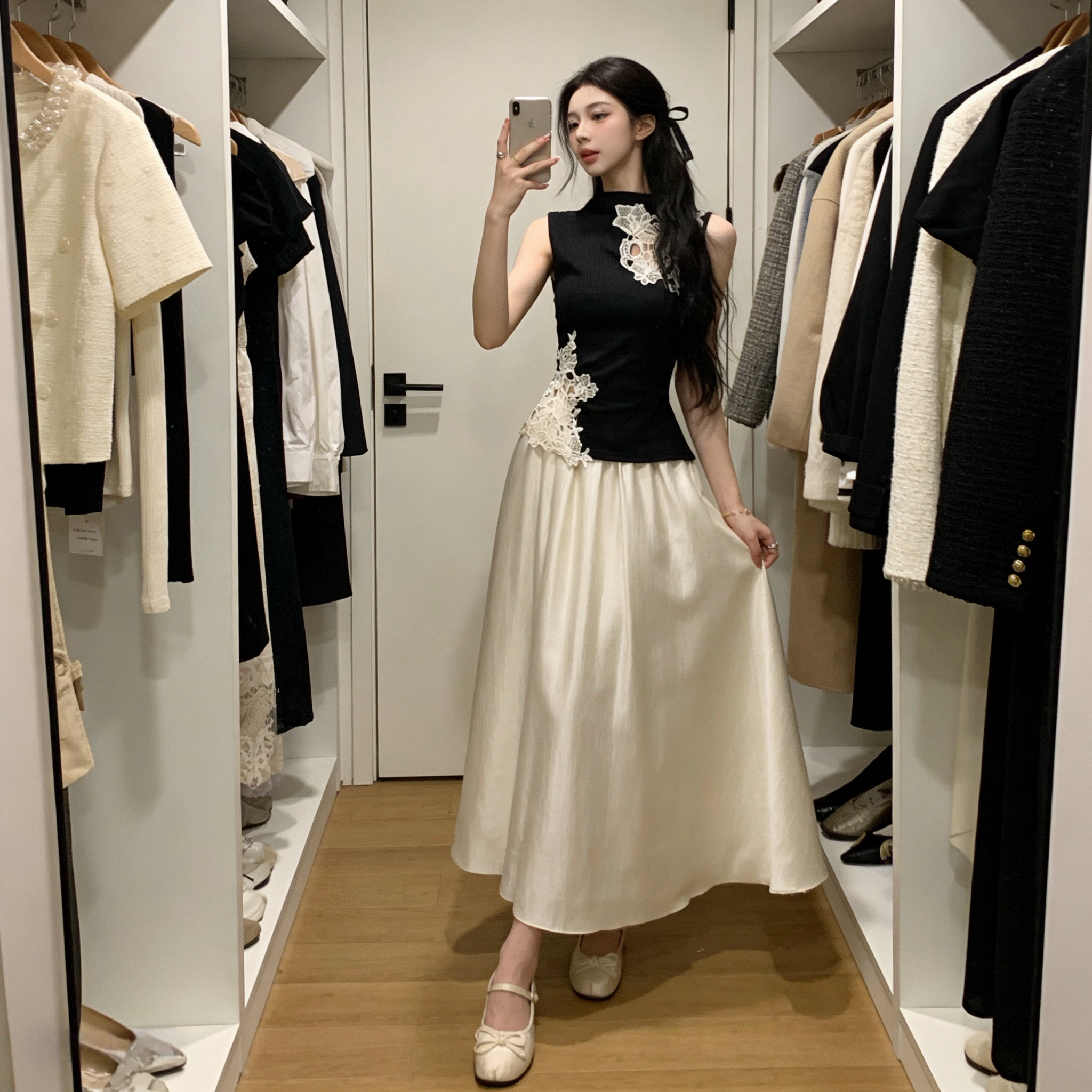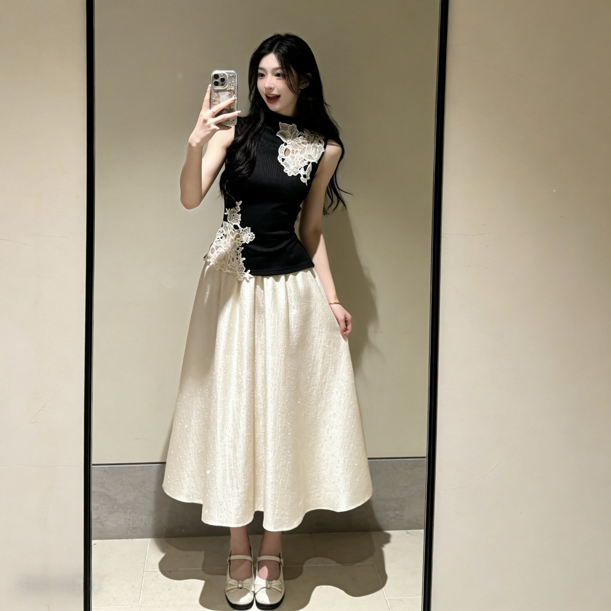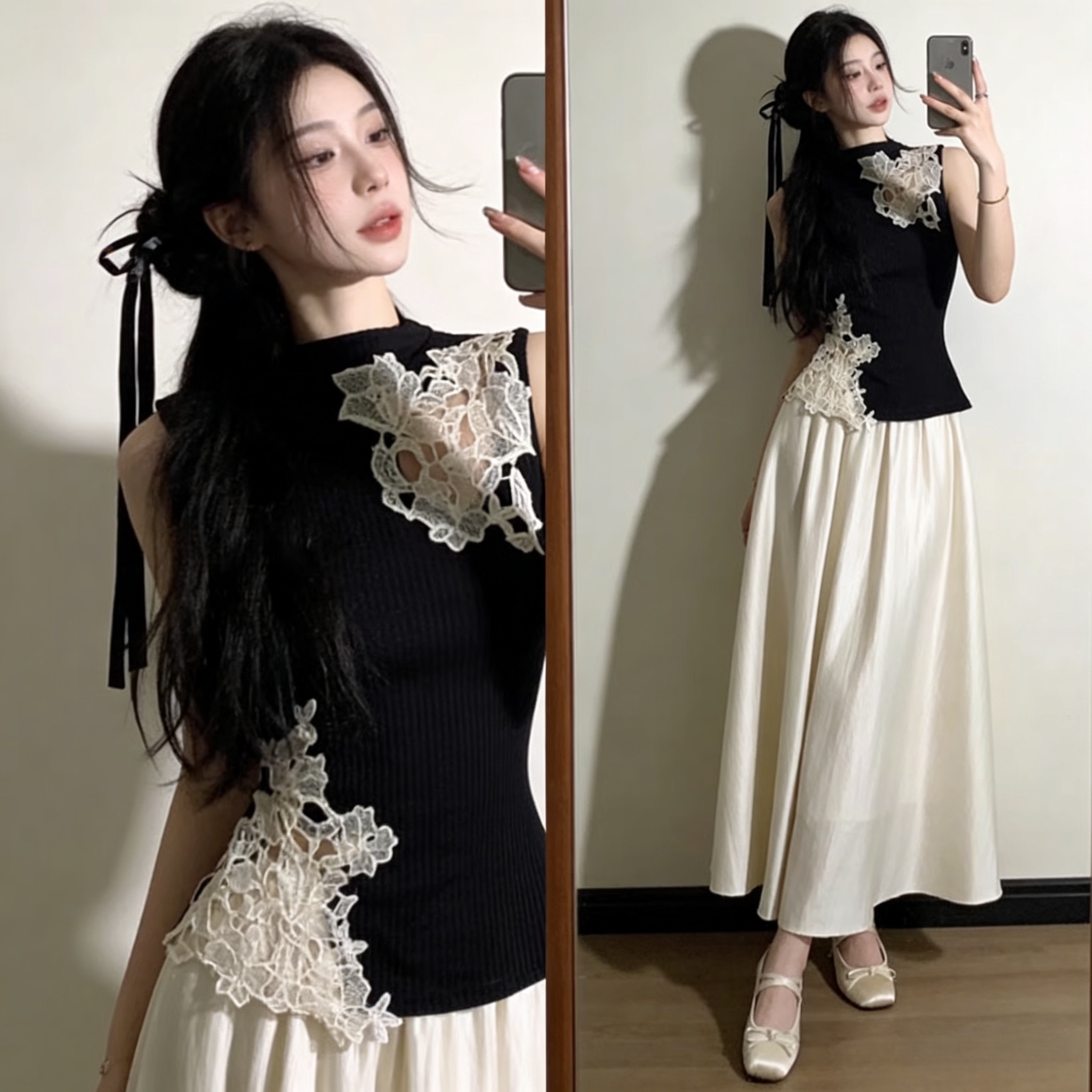 아마 민소매 베스트 반신 치마 세트 여성 2026 슈퍼 화재 열린 봄 착용 가져 가라. 자이언트 잘 생긴 캐주얼 고유 한 디자인 센스