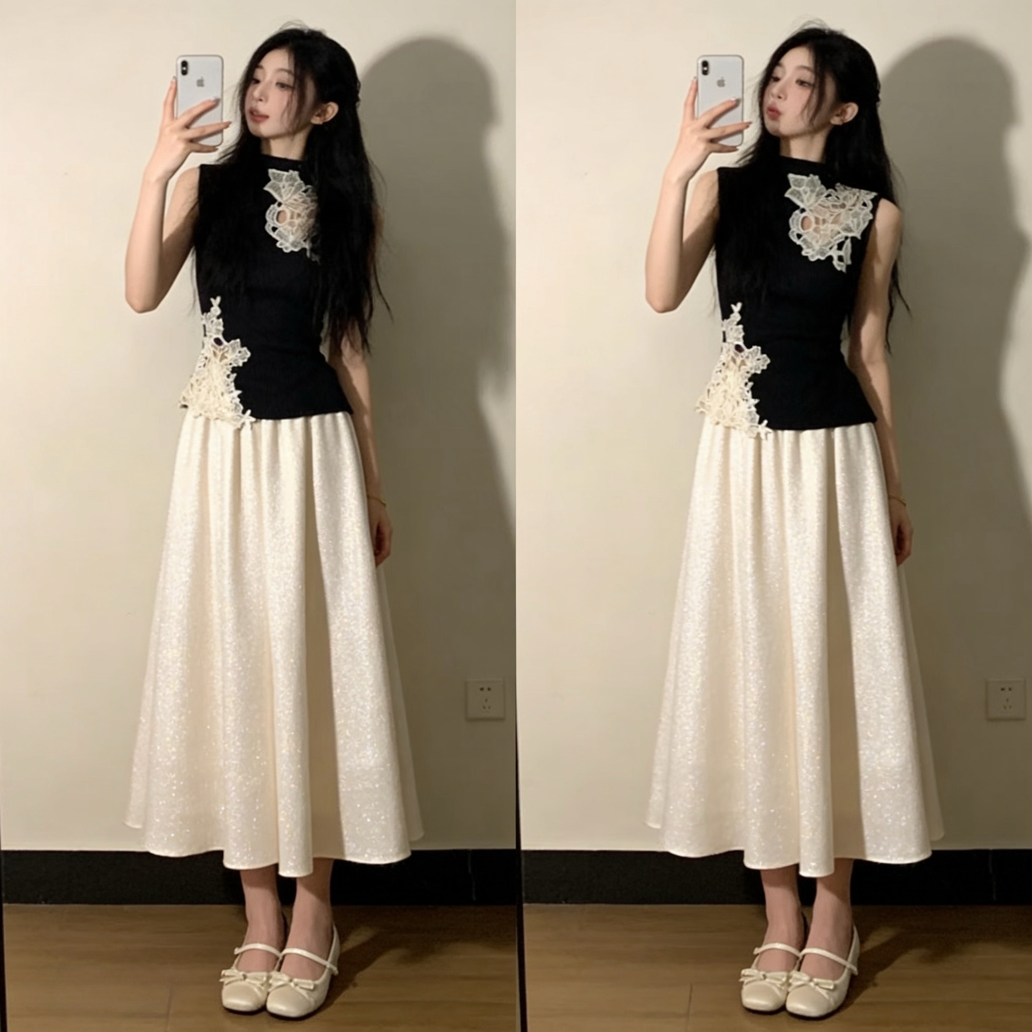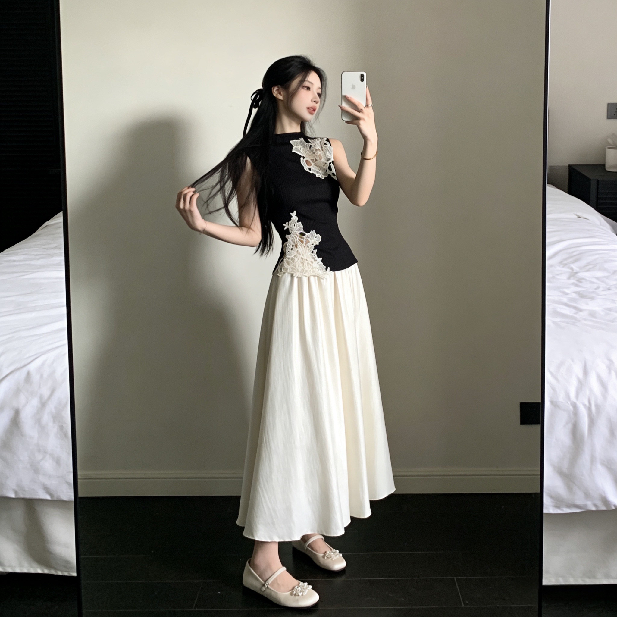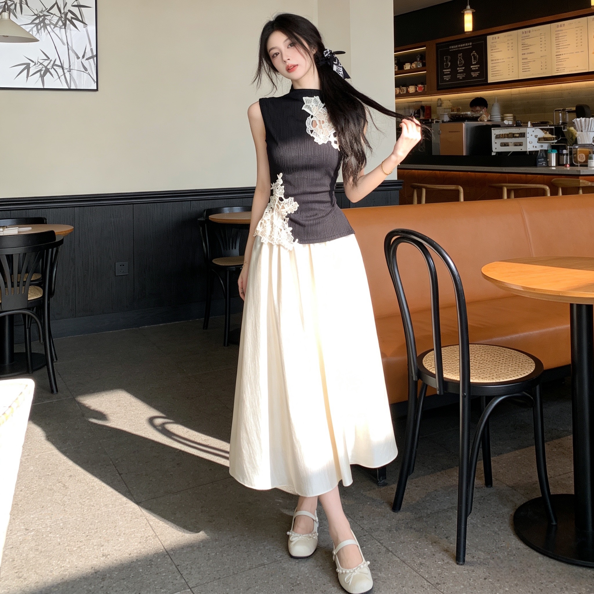 아마 민소매 베스트 반신 치마 세트 여성 2026 슈퍼 화재 열린 봄 착용 가져 가라. 자이언트 잘 생긴 캐주얼 고유 한 디자인 센스