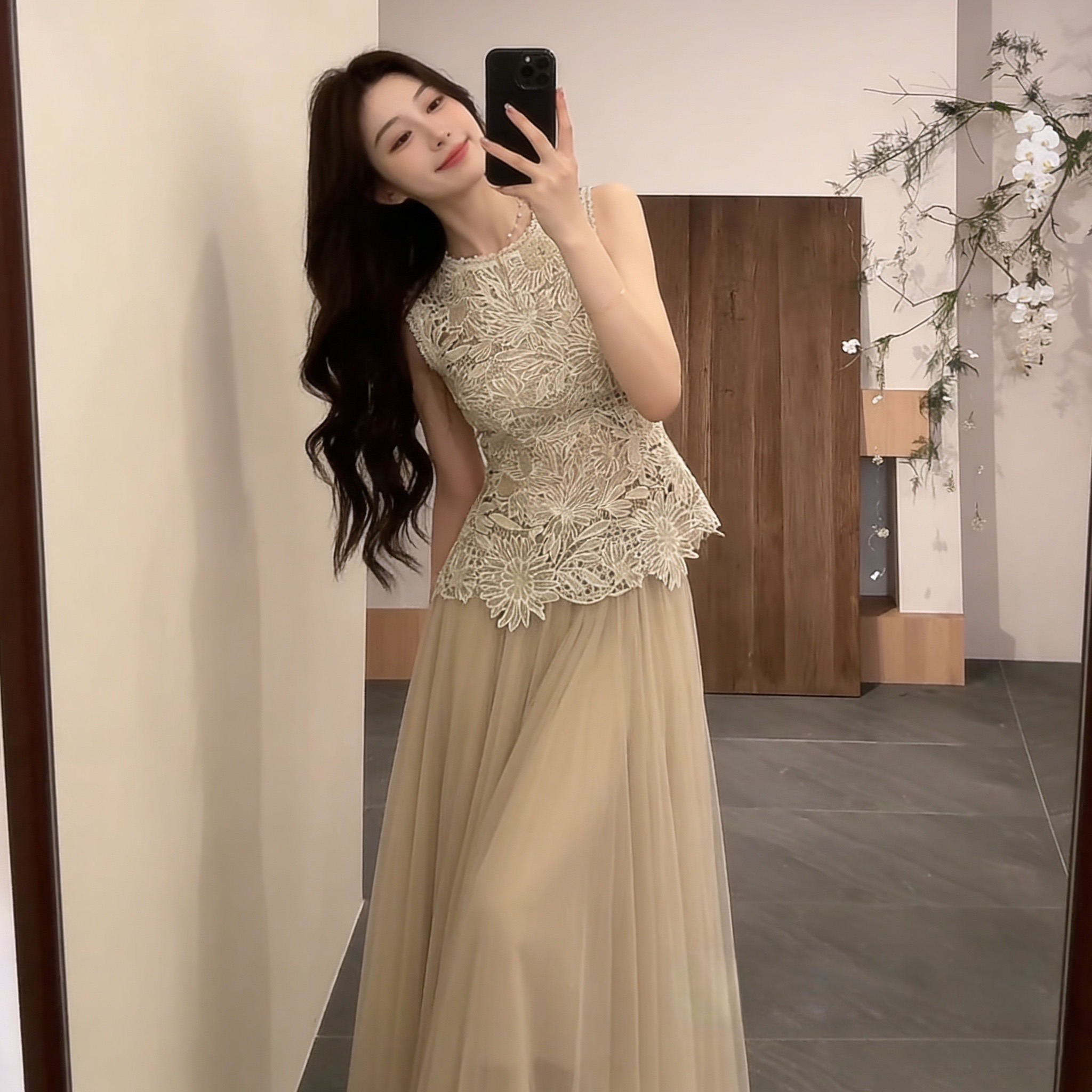 실사 정가 2026 여름 새로운 품격 다용도 반신 스커트 도루 센스 A라인 스커트 프랑스식 우아함 3 차원 홀로우 아웃