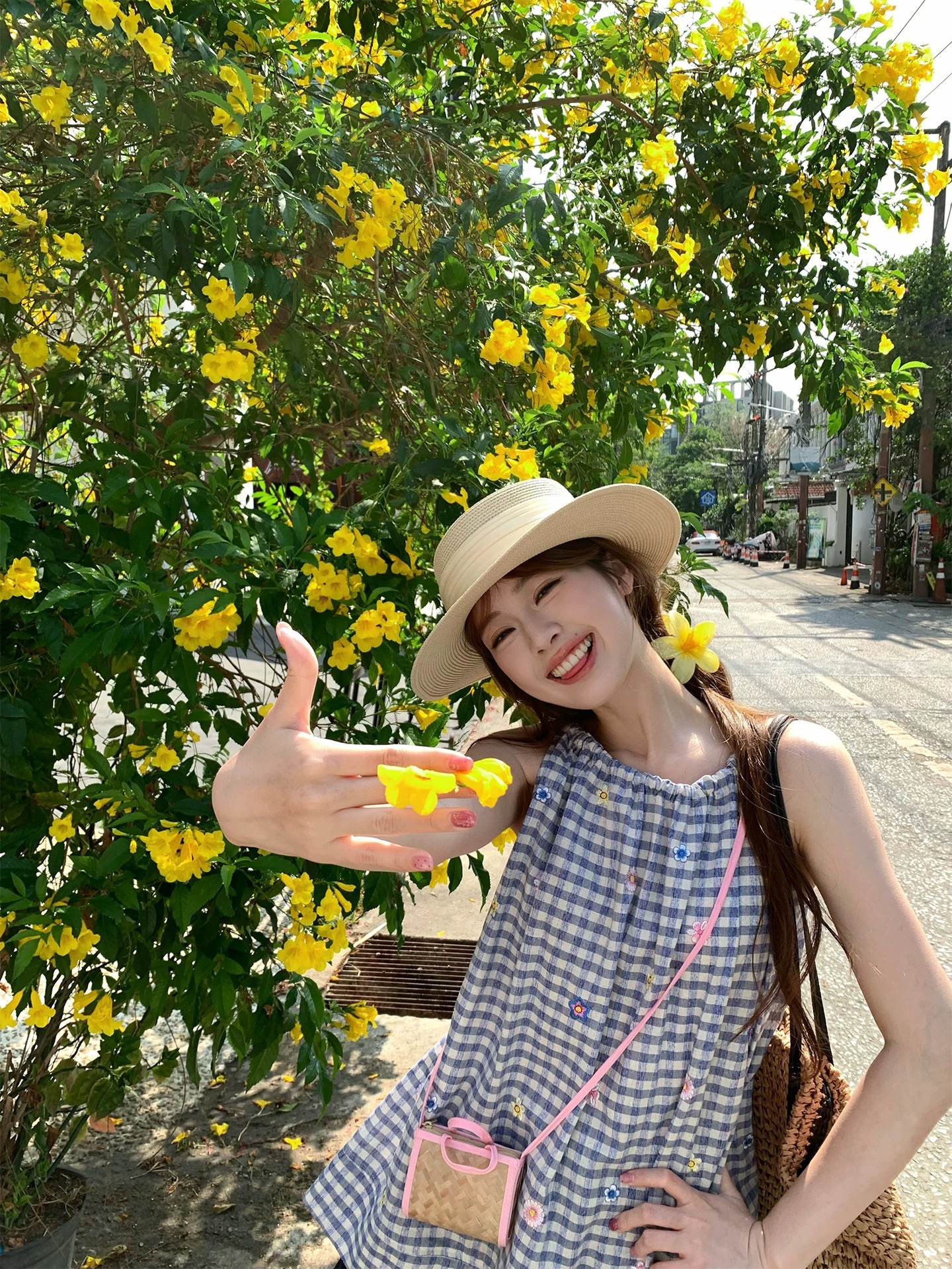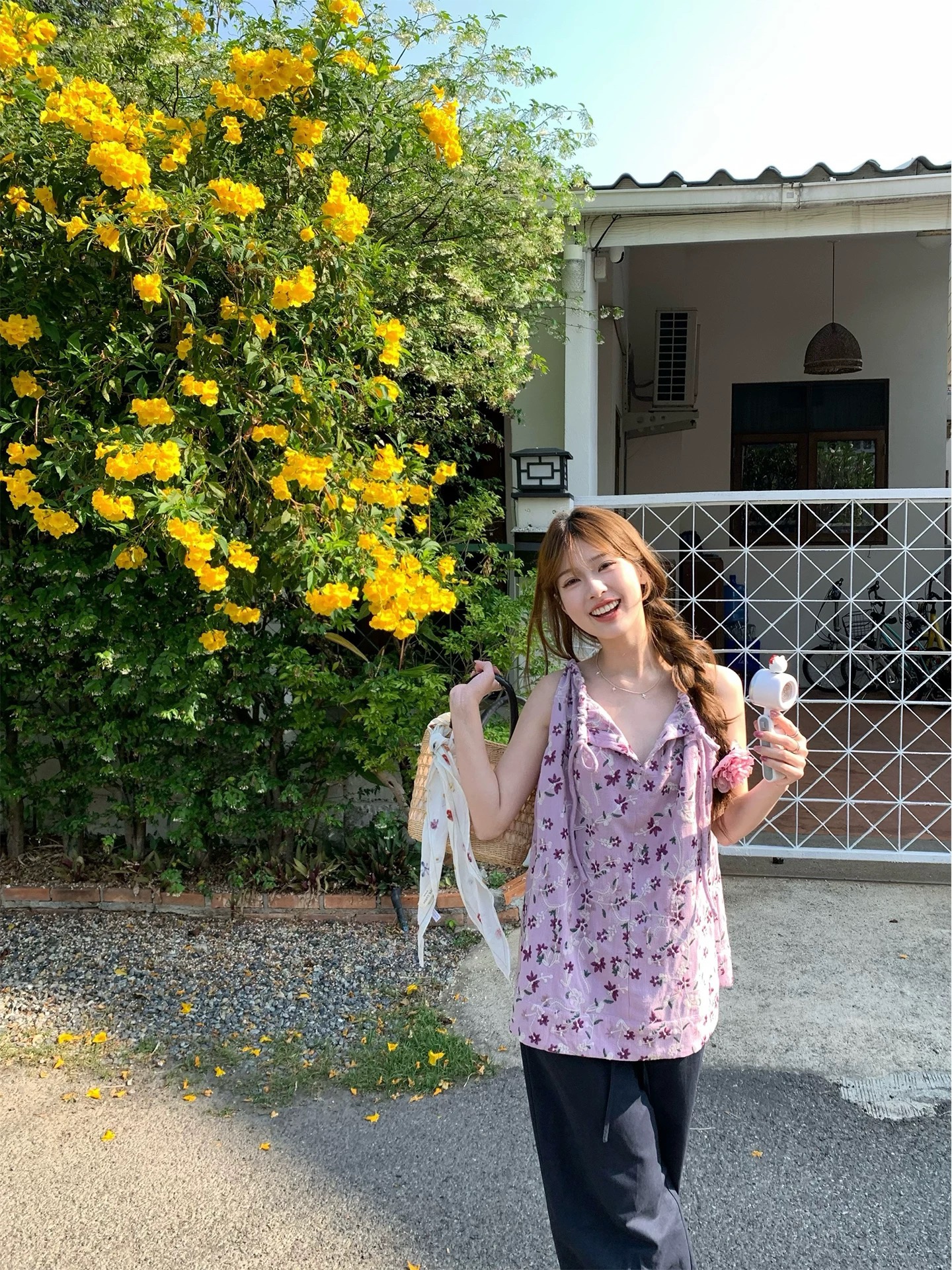 실사 2026 여름 얇은 스타일 주간 실크 면 린넨 캐주얼 와이드 레그 팬츠 체크무늬 패치워크 방귀 커튼 한국 스타일 슬림해 보이는 와이드 레그 팬츠