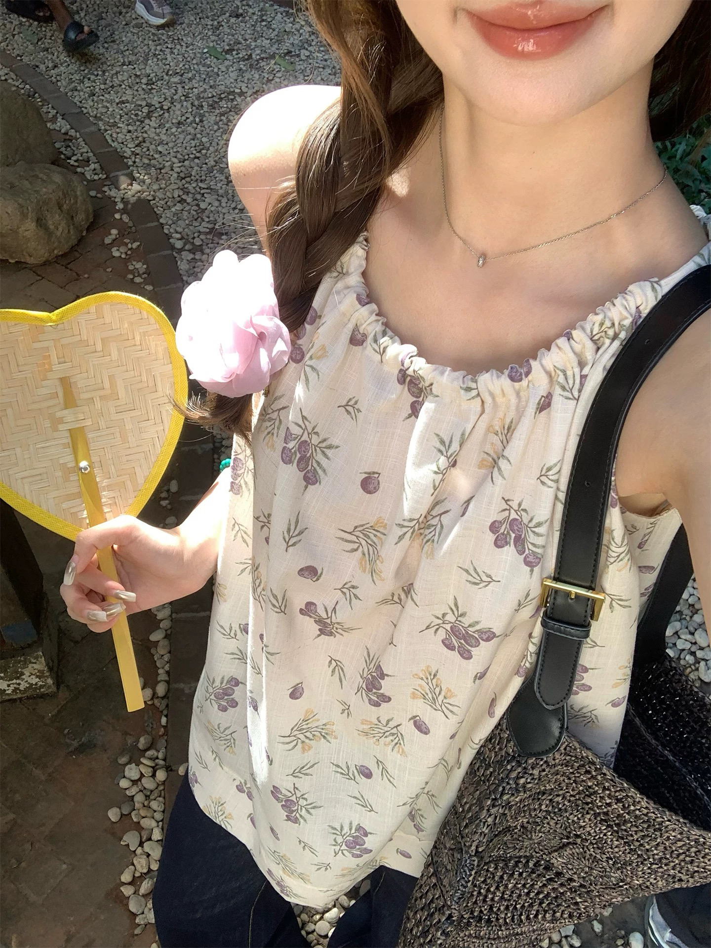 실사 2026 여름 새로운 쉬폰 블라우스 품격 우아함 슬림해 보이는 Chic 디자인 센스 네클라인 레이스업 맨위 여성