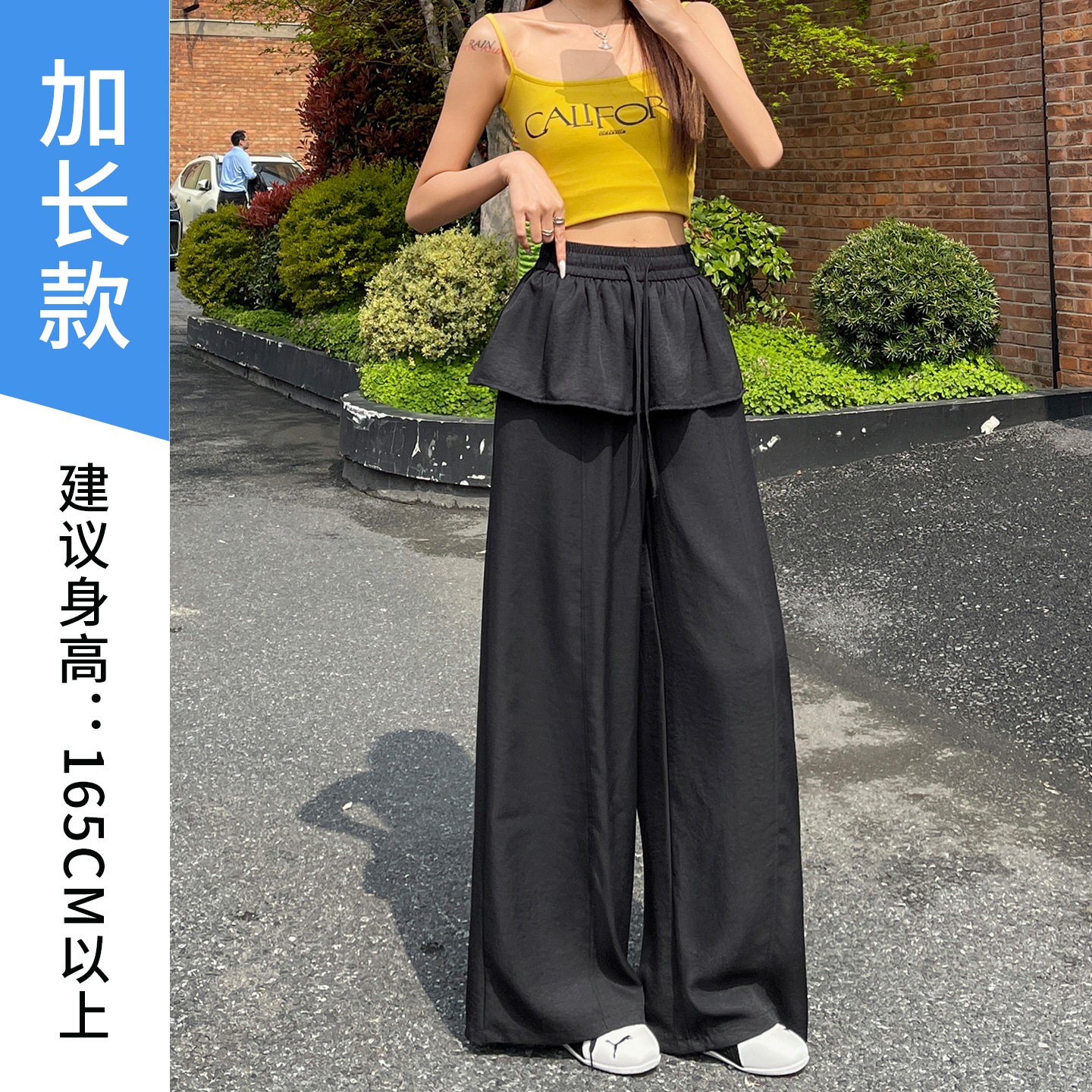 페이크 레이어드 방귀 커튼 도트 무늬 와이드 레깅스 바지 여름 얇은 스타일 2026 새로운 하이웨이스트 슬림해 보이는 루즈핏 도루 센스 바닥 청소 바지