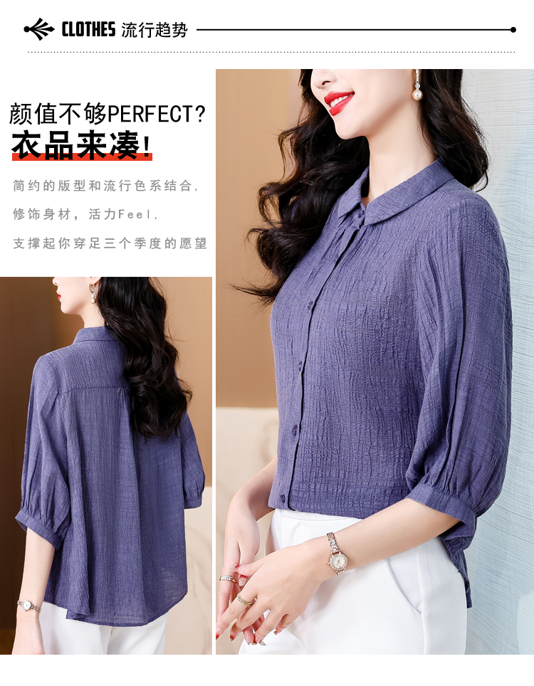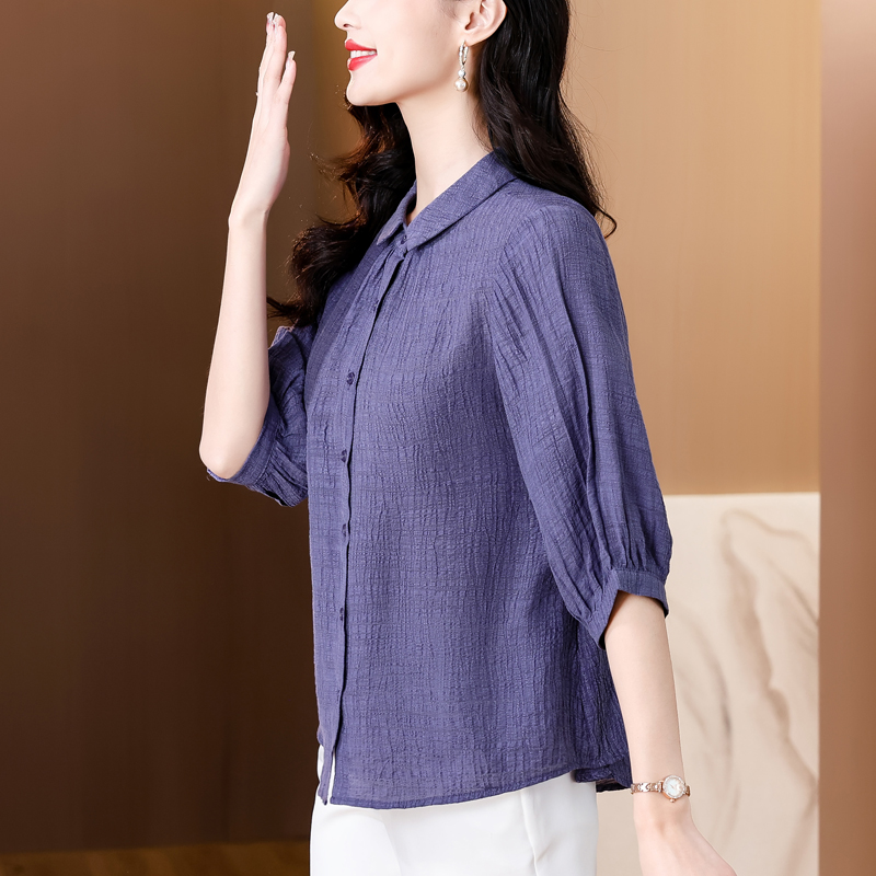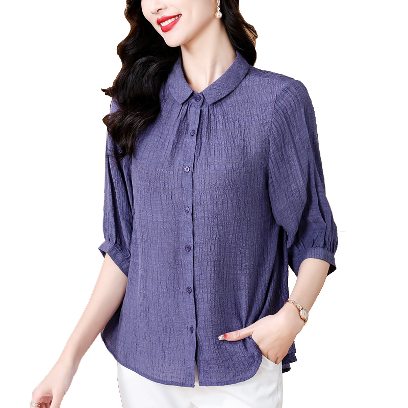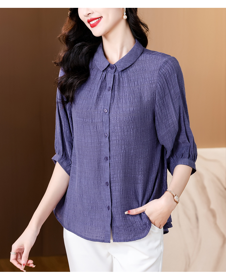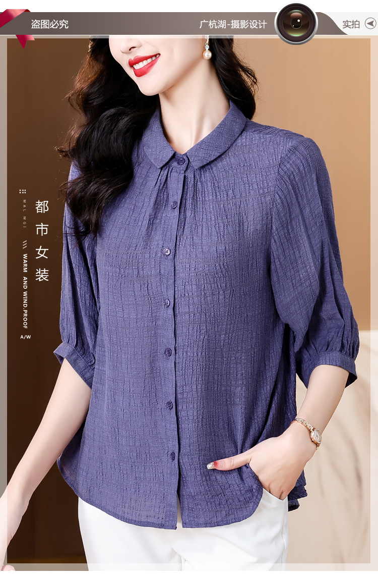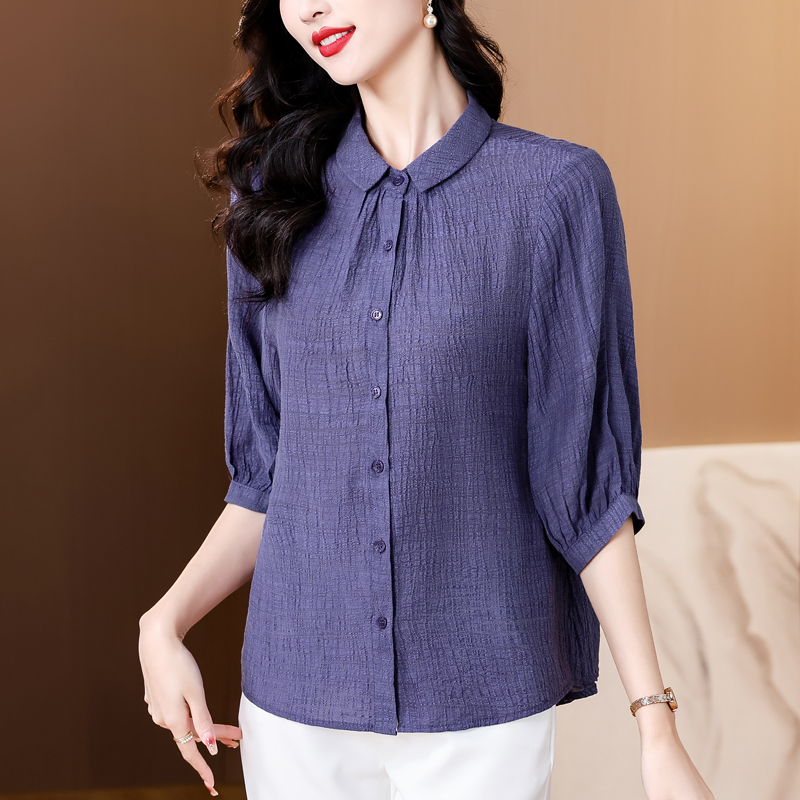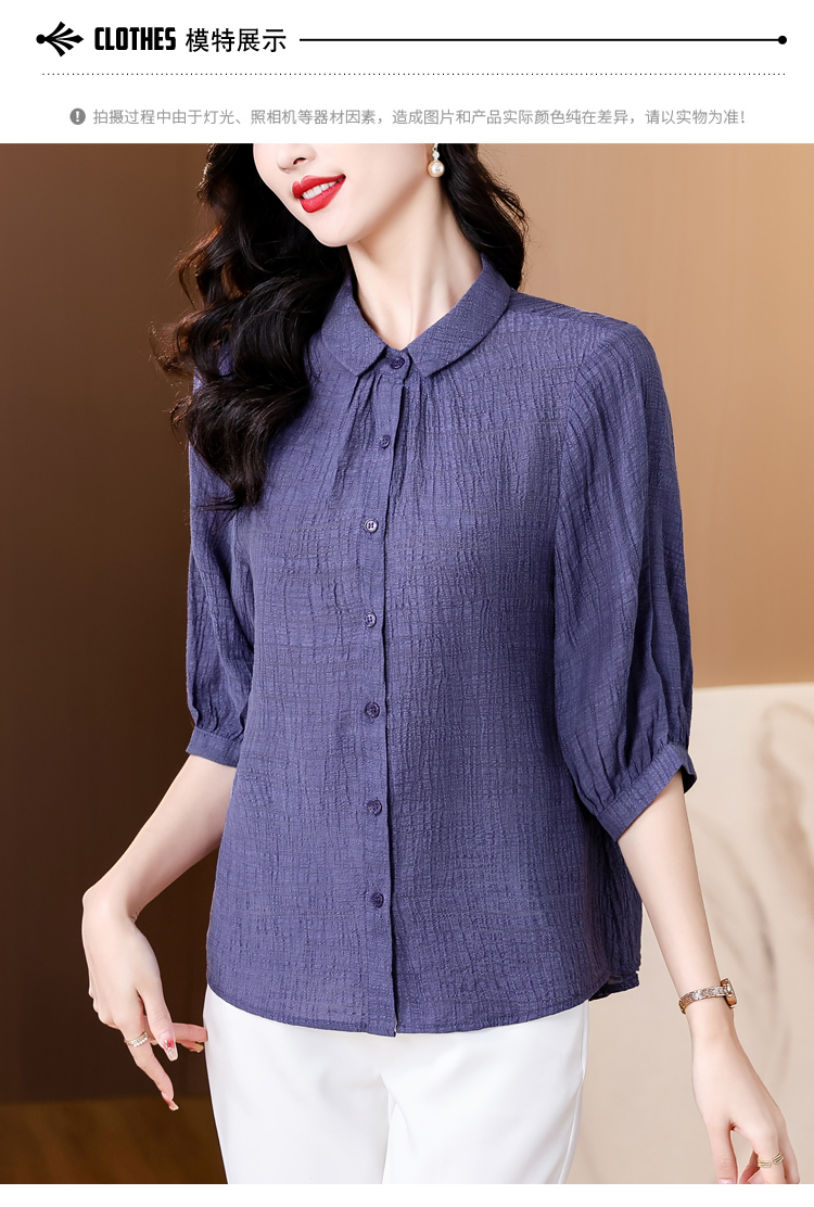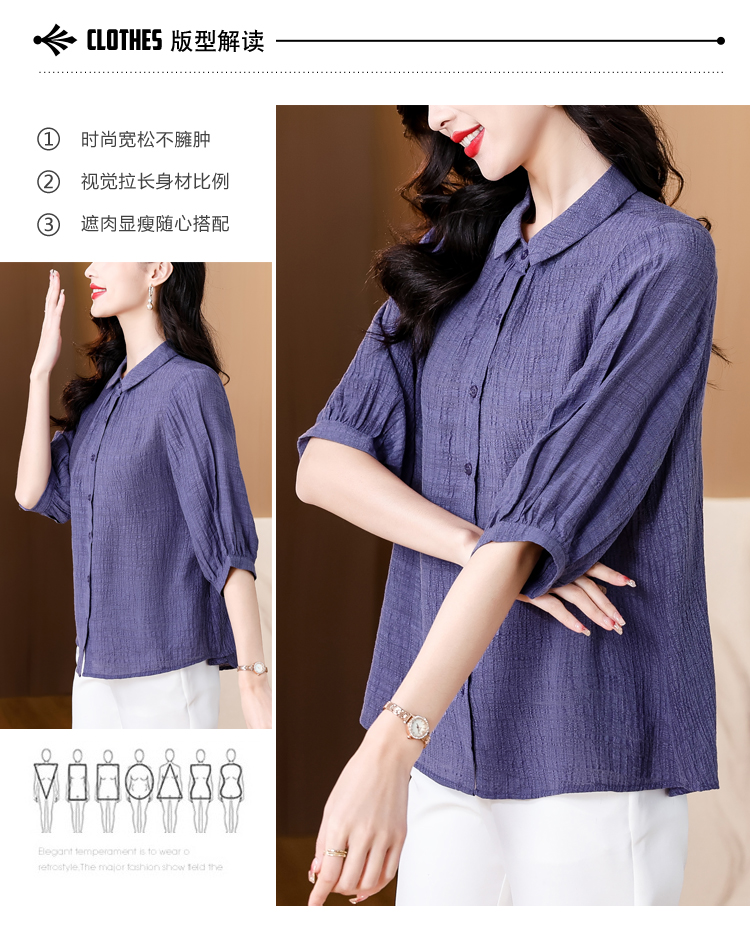 2026 여름 새로운 5 점 반팔 티셔츠 루즈핏 자수 슬림해 보이는 중년 엄마 캐주얼 맨위 작은 셔츠
