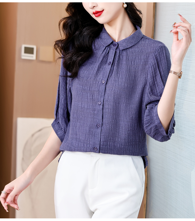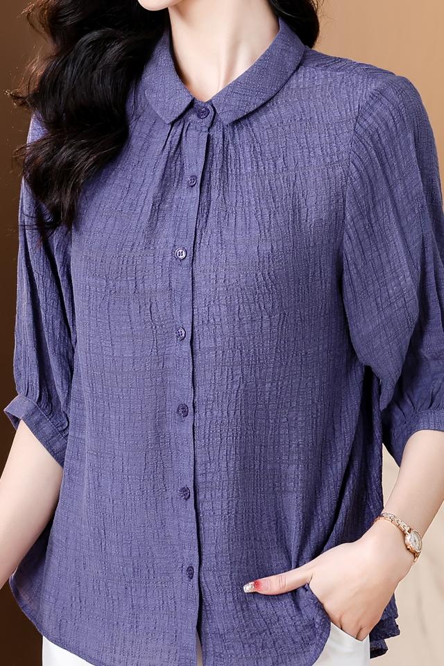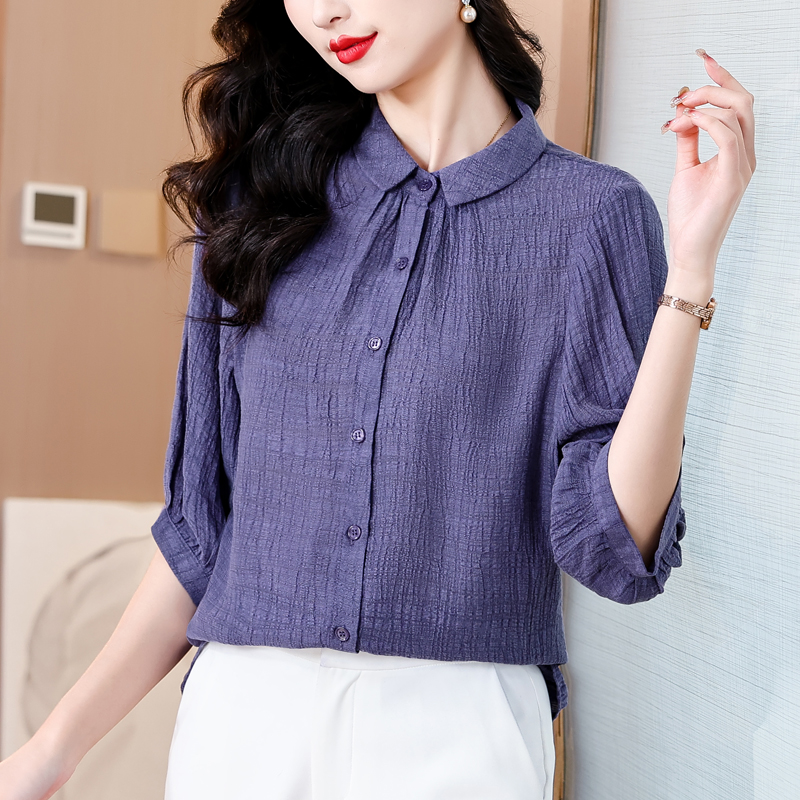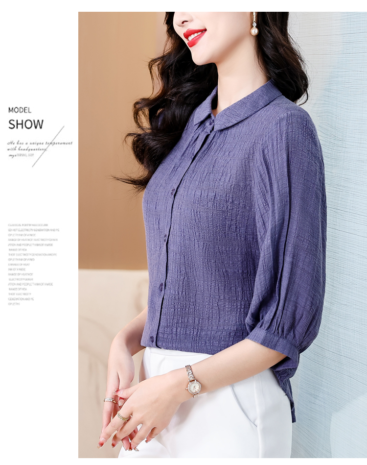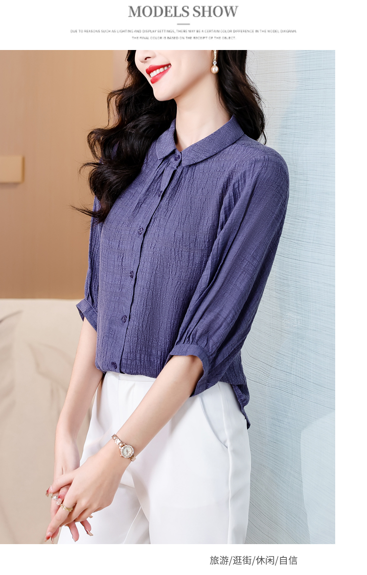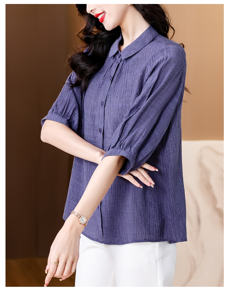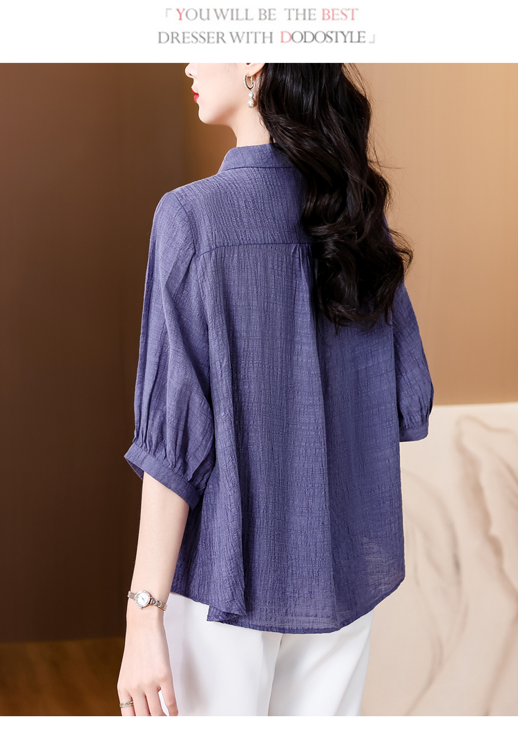 2026 여름 새로운 5 점 반팔 티셔츠 루즈핏 자수 슬림해 보이는 중년 엄마 캐주얼 맨위 작은 셔츠