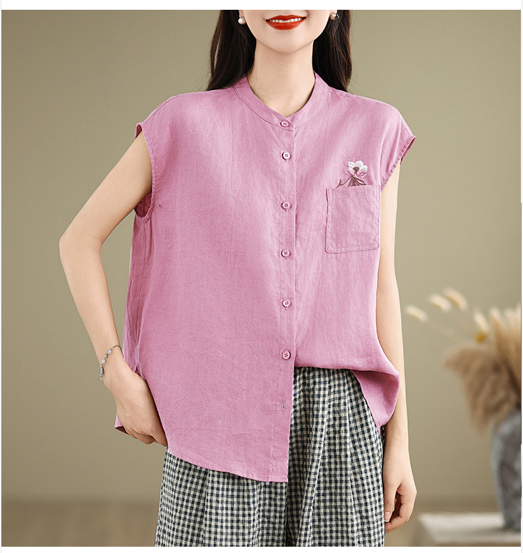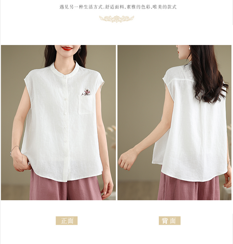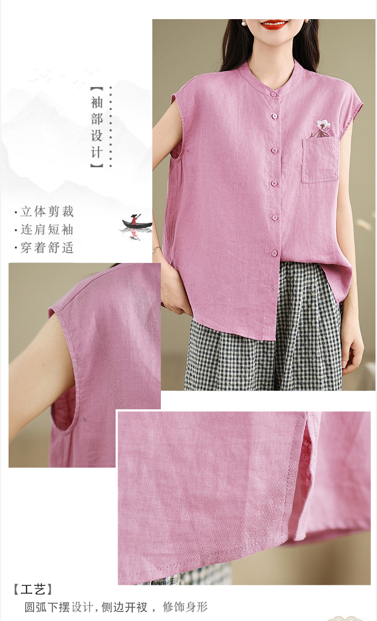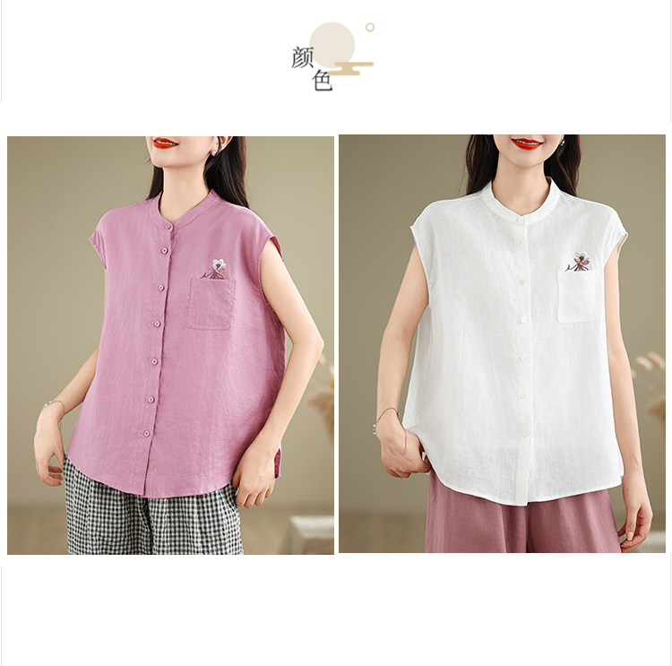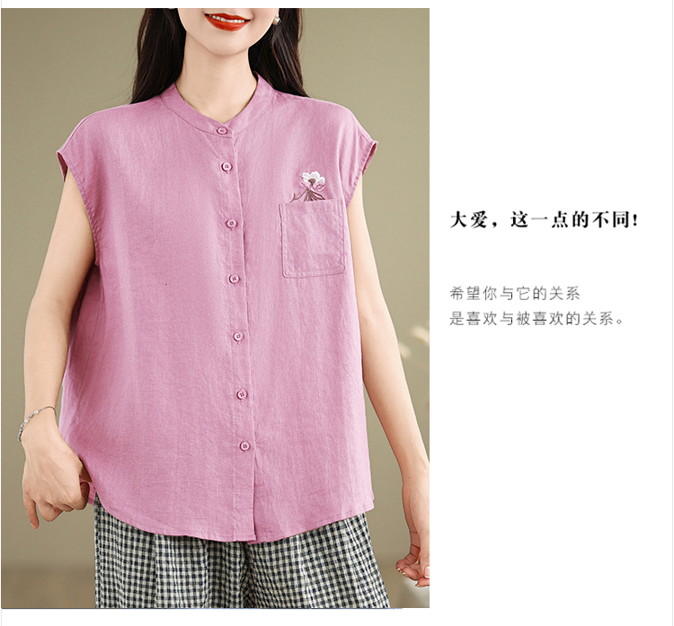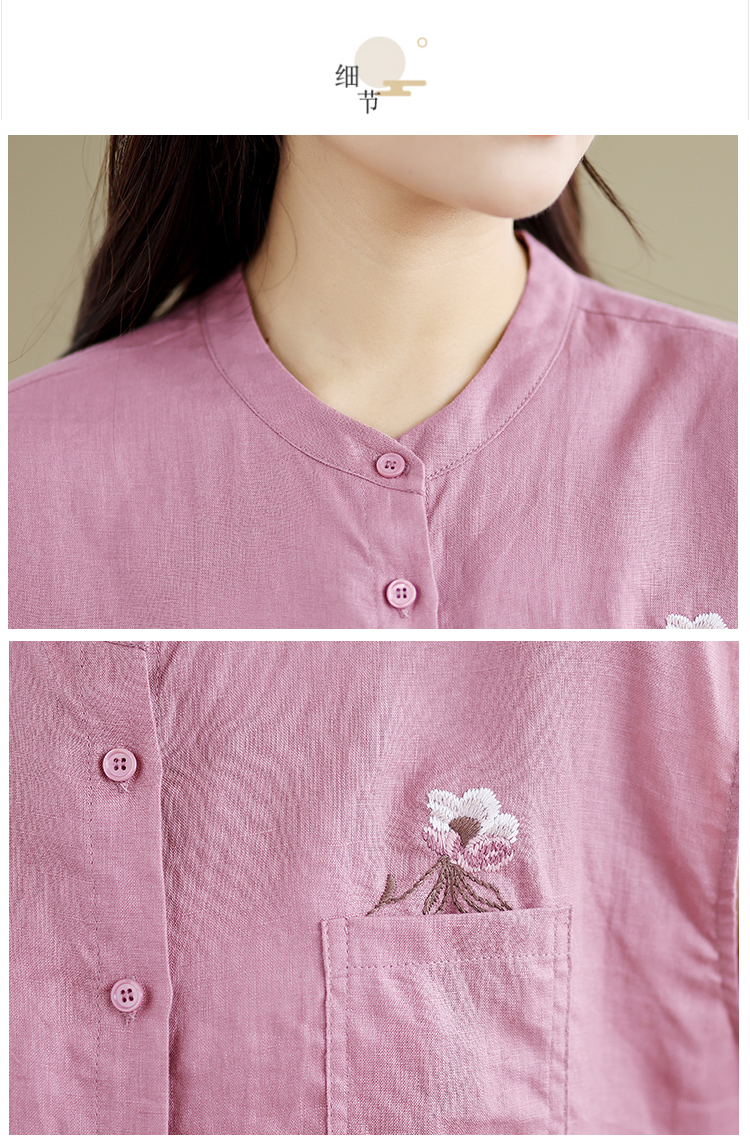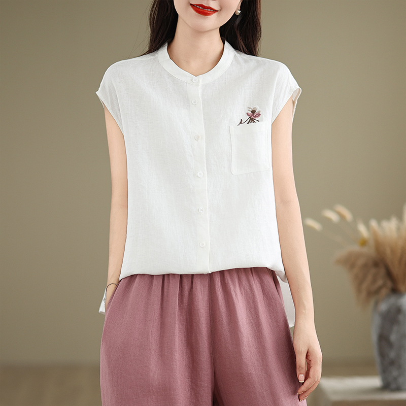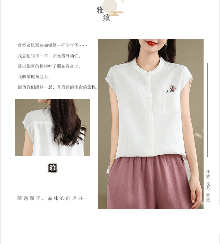 면 린넨 지성 문예 여름 섹션 새로운 스탠드 칼라 배트윙 소매 루즈핏 셔츠 아마 하프 열기 빅 사이즈 맨위