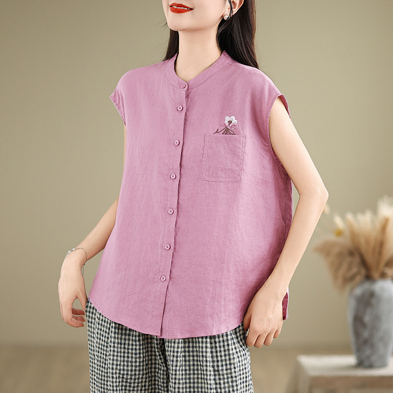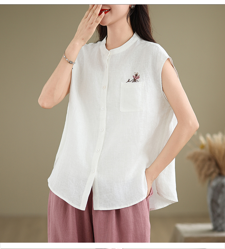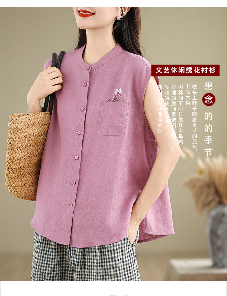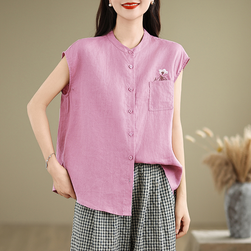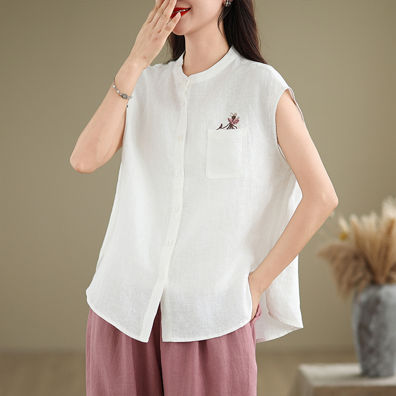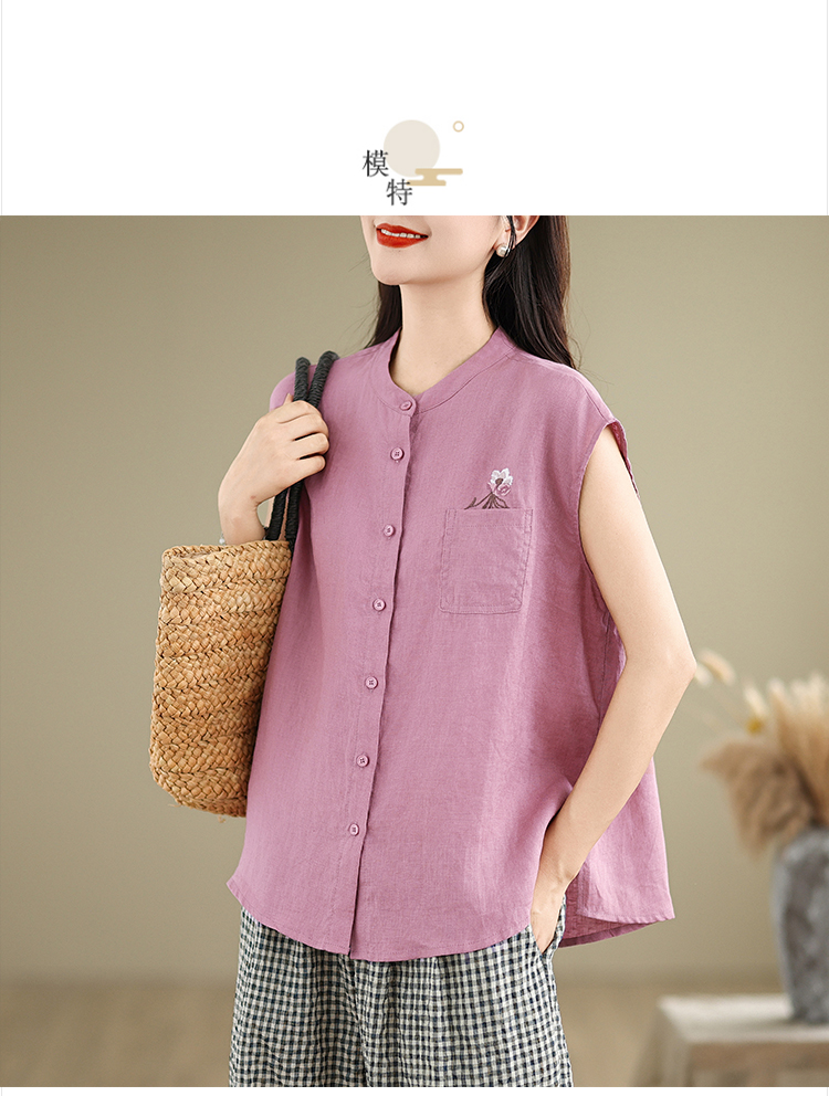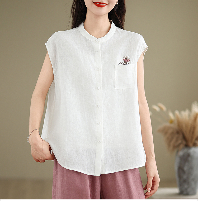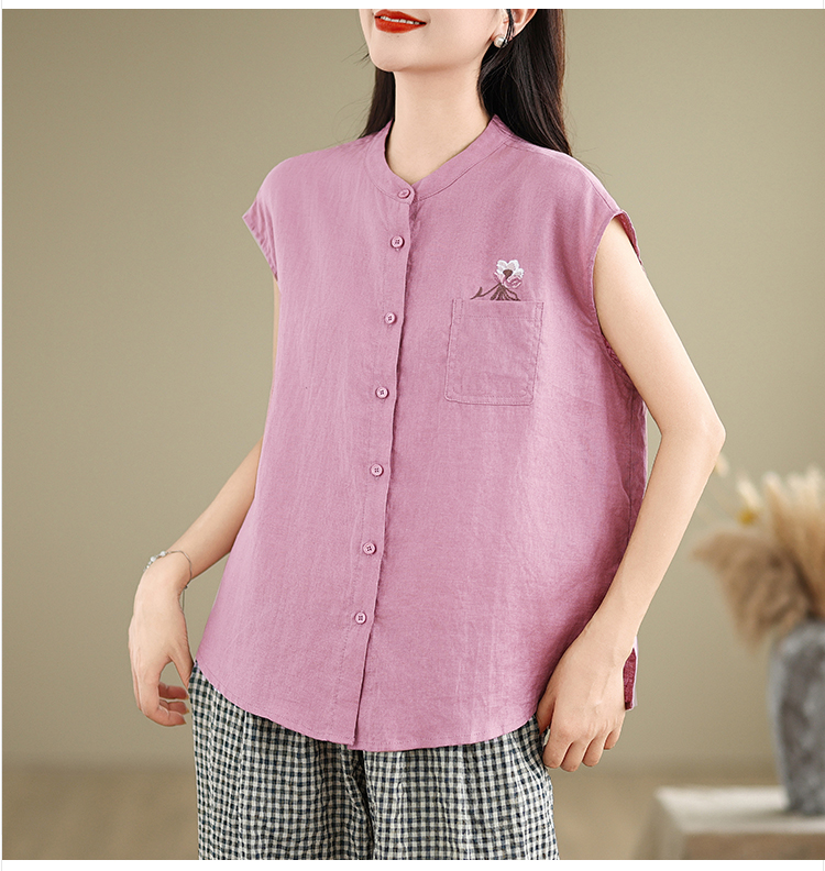 면 린넨 지성 문예 여름 섹션 새로운 스탠드 칼라 배트윙 소매 루즈핏 셔츠 아마 하프 열기 빅 사이즈 맨위