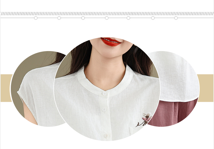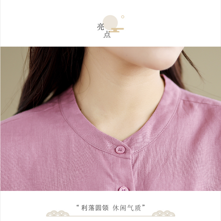 레트로 색상 도트 무늬 아마 새로운 여름 섹션 여성 셔츠 품격 곰팡이 고리 셔츠 여름 반팔 맨위