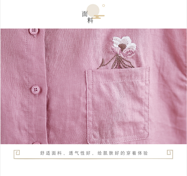 실사 여름 센 부서 순면 프린트 셔츠 레트로 문예 루즈핏 빅 사이즈 폴로 칼라 셔츠 여성 셔츠 790#