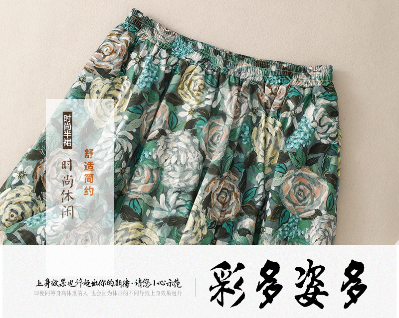 작은 청신 녹색 유화 꽃무늬 반신 스커트 여성 여름 새로운 중간 길이 하이웨이스트 연령 감소 한 마디 치마