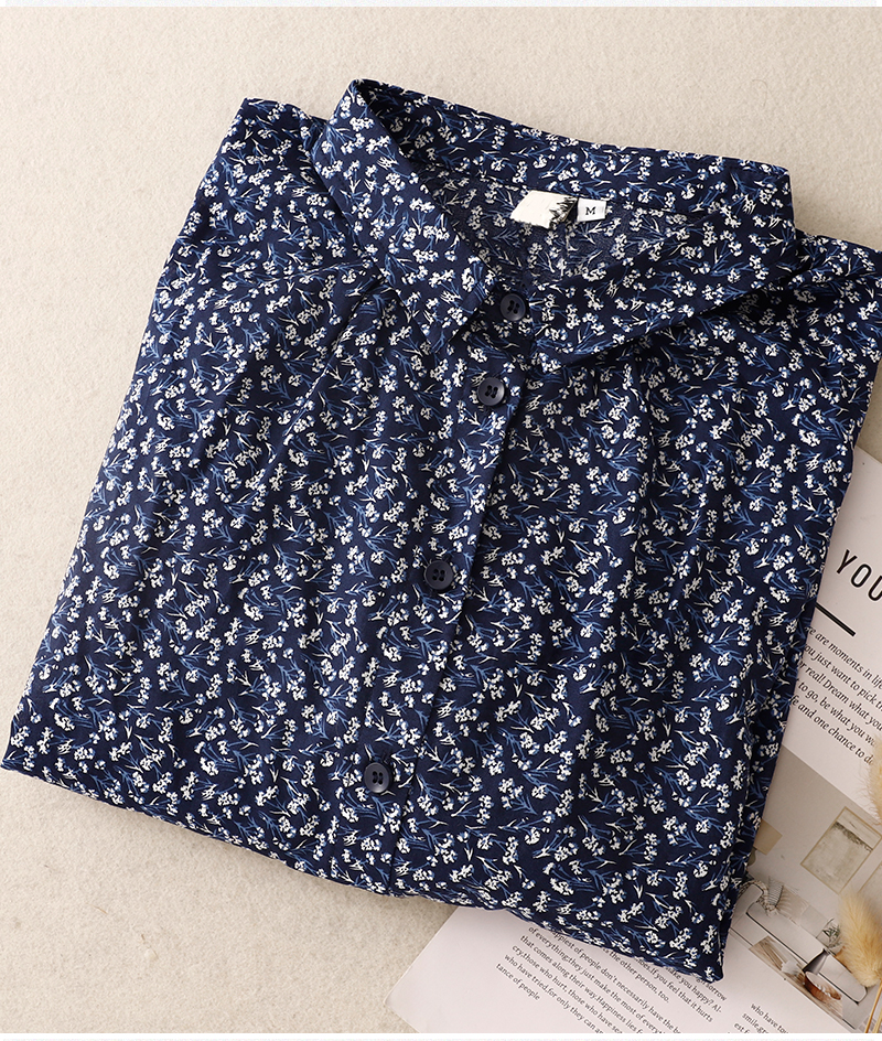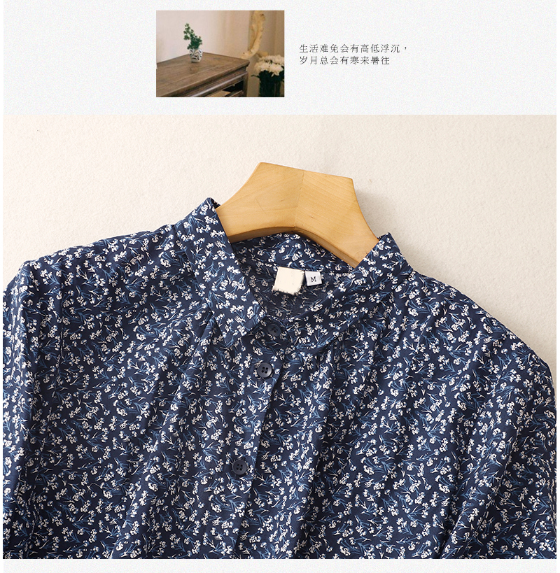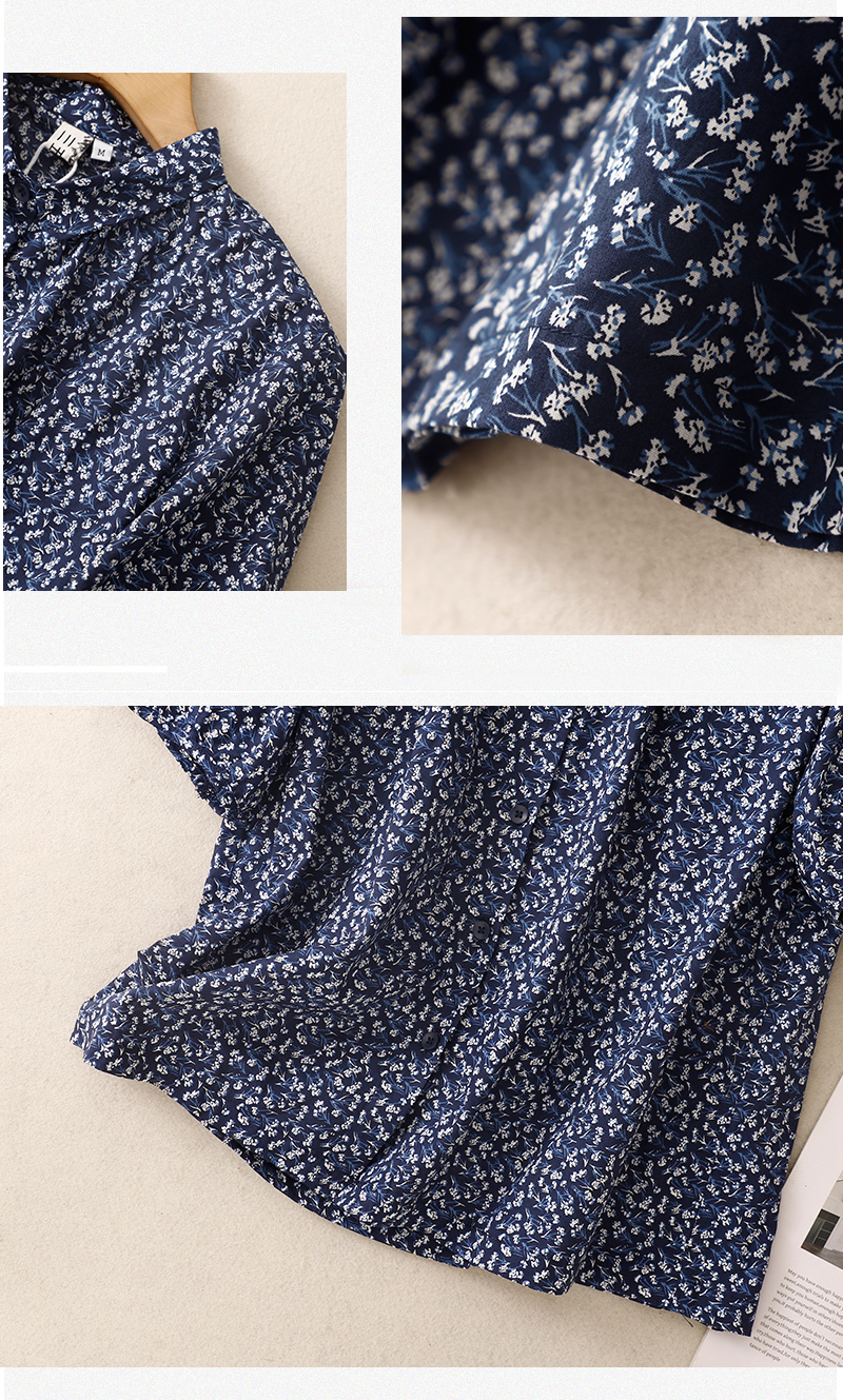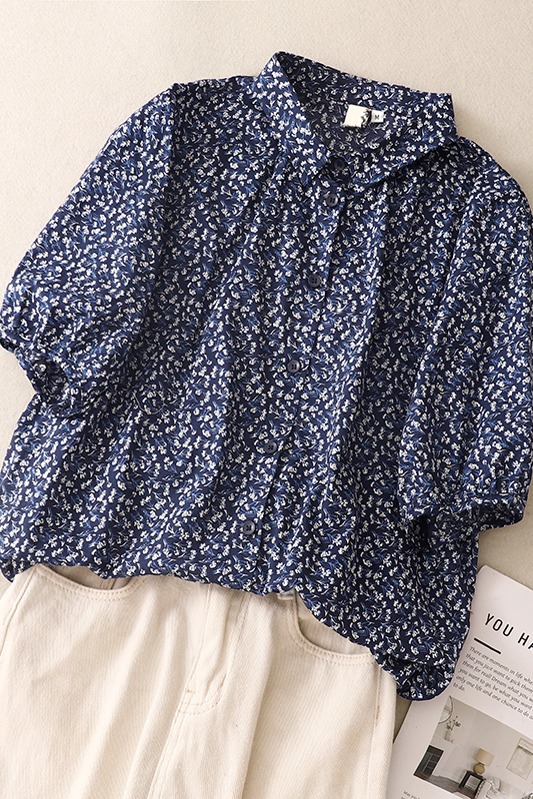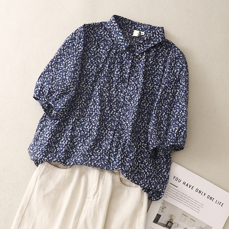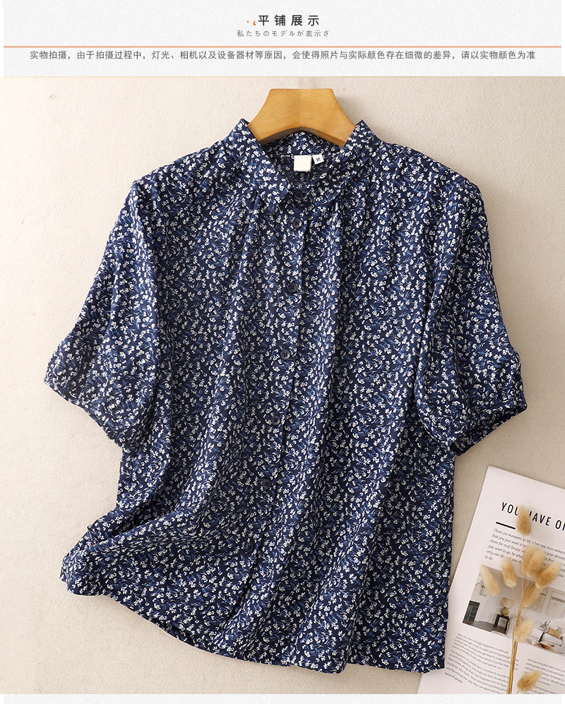 실사 여름 센 부서 순면 프린트 셔츠 레트로 문예 루즈핏 빅 사이즈 폴로 칼라 셔츠 여성 셔츠 790#