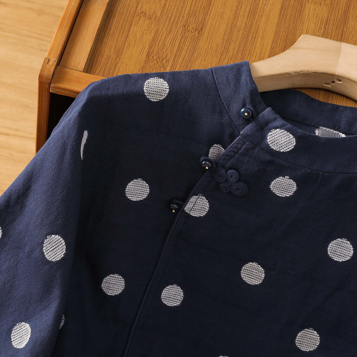 2025 여름 신제품 면 린넨 자수 프랑스식 문예 레트로 도트 무늬 셔츠