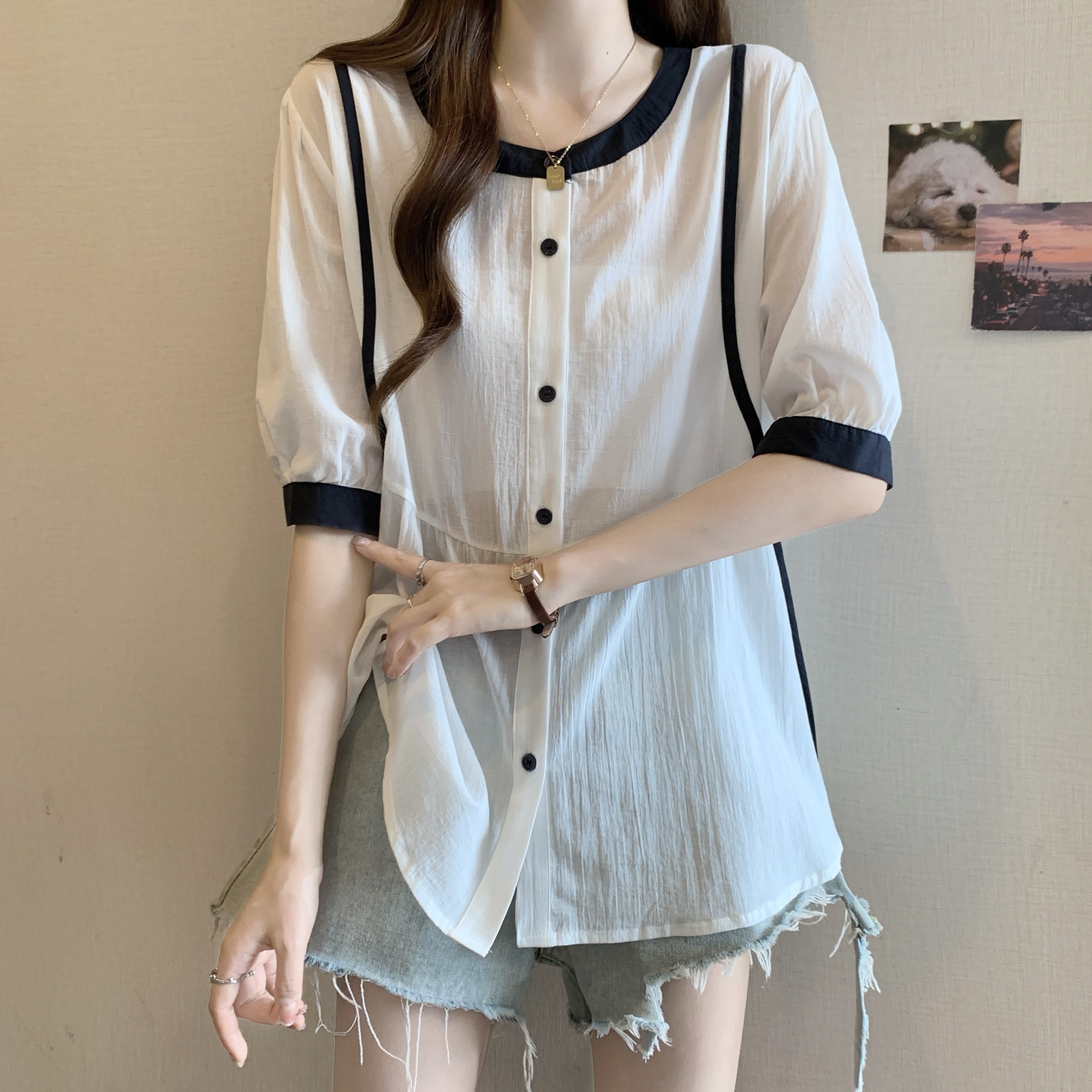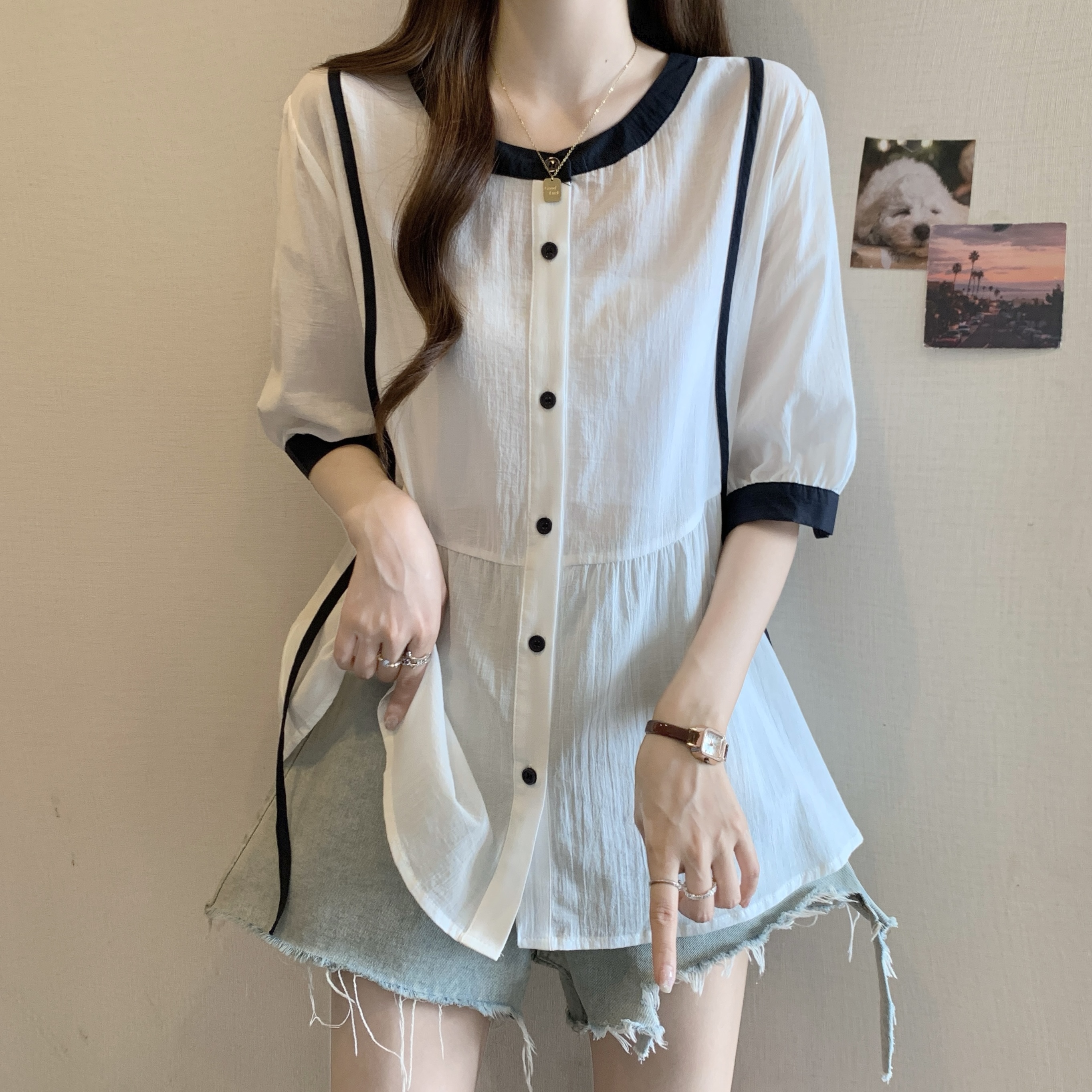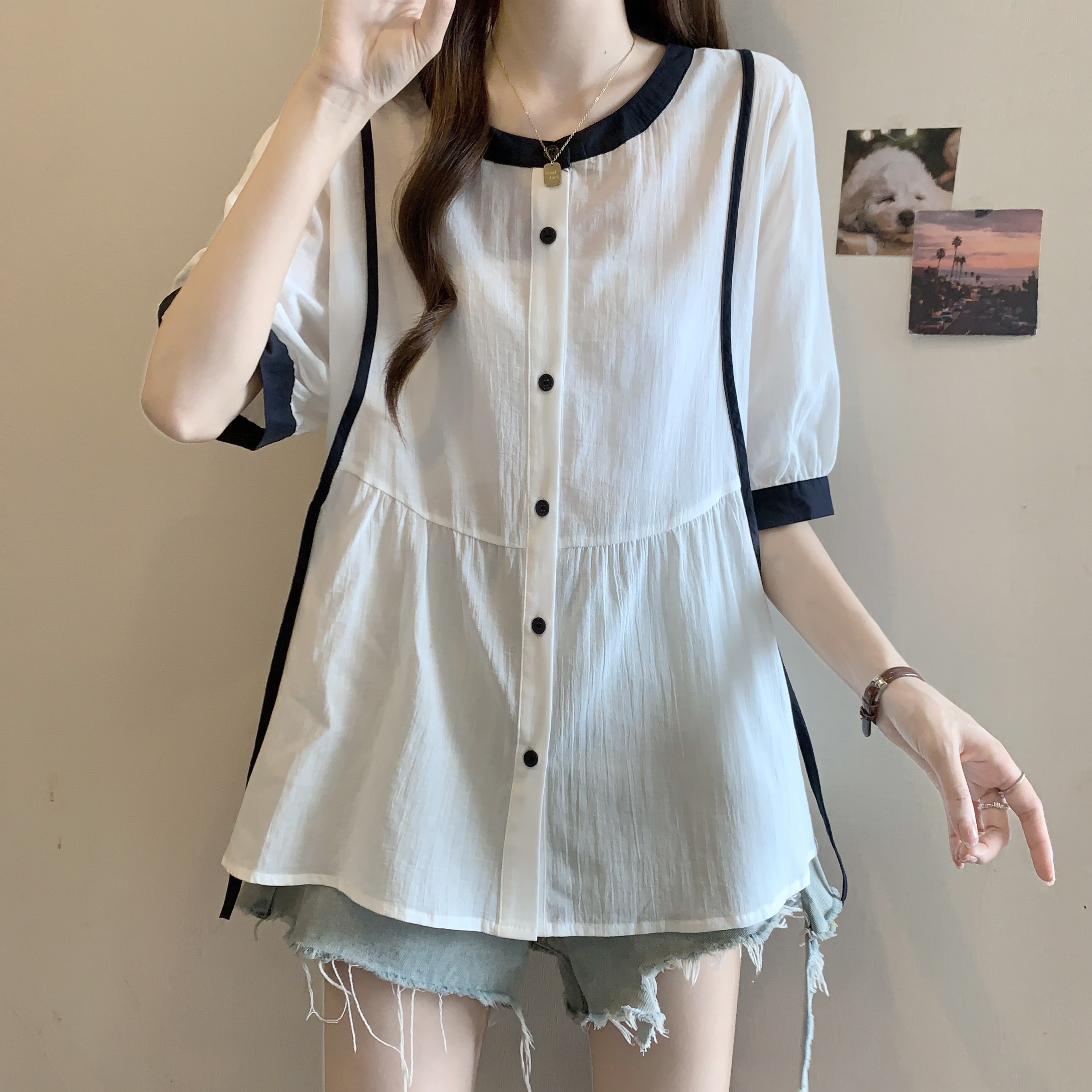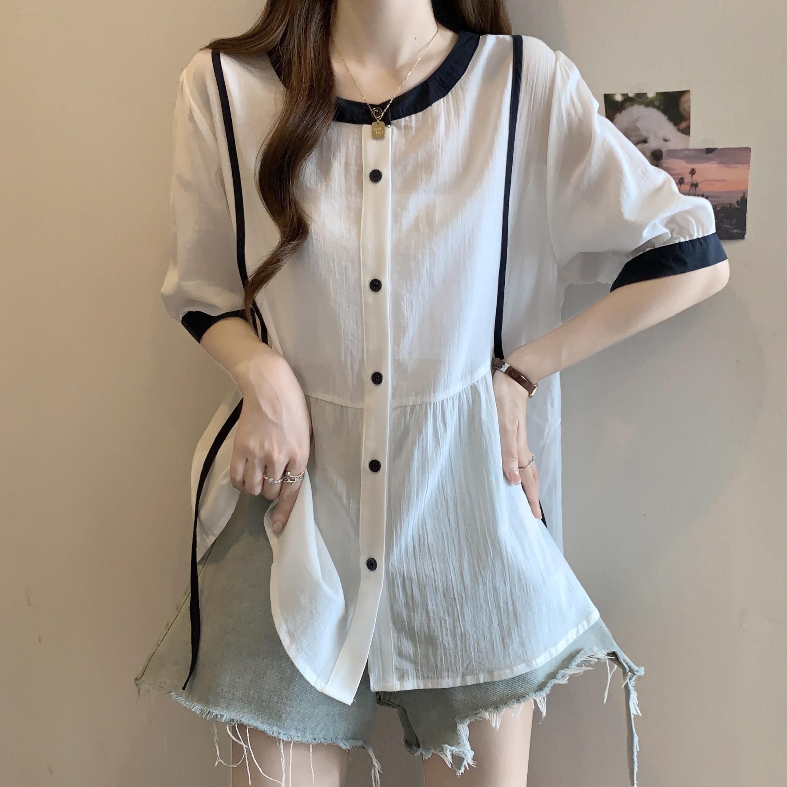 실사 빅 사이즈 새로운 디자인 센스 한 부서 프릴 캐주얼 셔츠 루즈핏 슬림해 보이는 다용도 맨위 여성