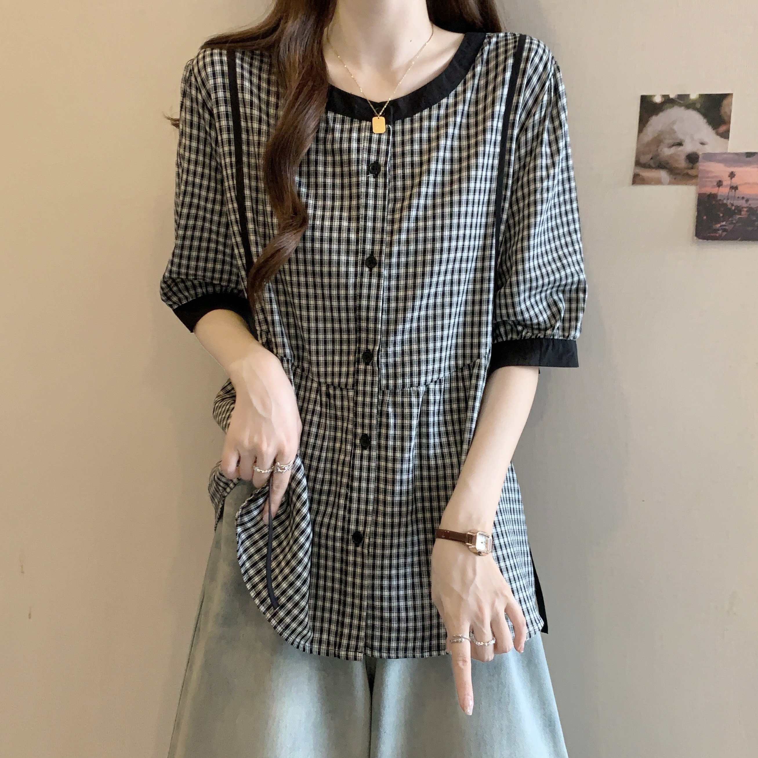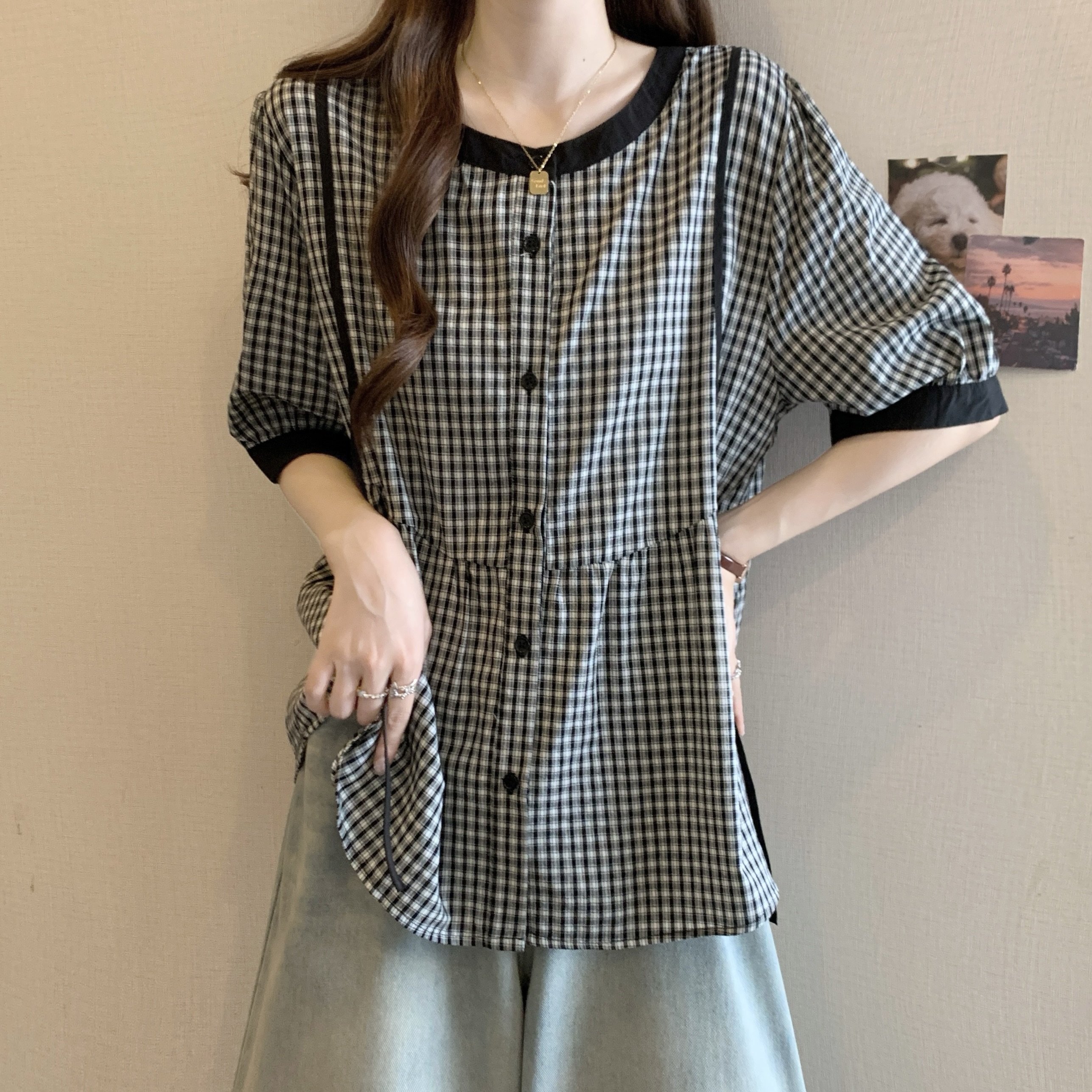 실사 빅 사이즈 지방 mm 새로운 디자인 센스 달콤한 스타일 광장 칼라 미니멀리즘 다용도 반팔 슬림해 보이는 표지 고기 맨위 여성