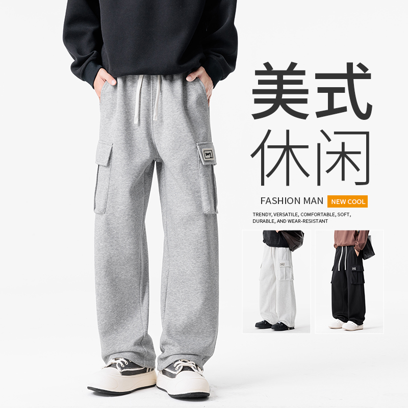 새로운 아메리칸 모통이 칼 바지 루즈핏 넓은 다리 청바지 남자 다용도 캐주얼 긴 바지 겨울 펌프 로프 스트레이트 팬츠