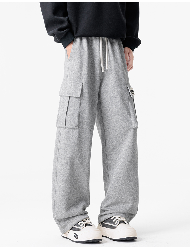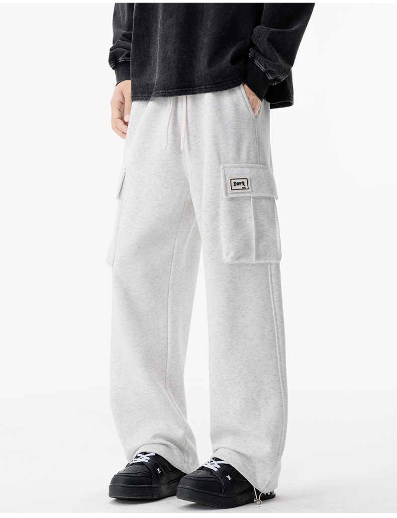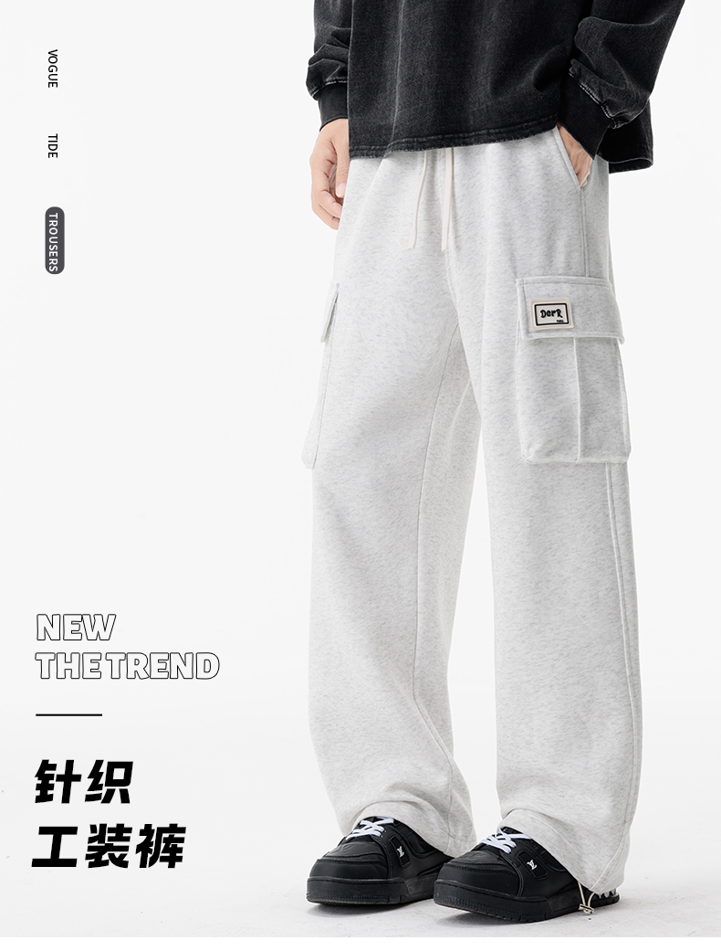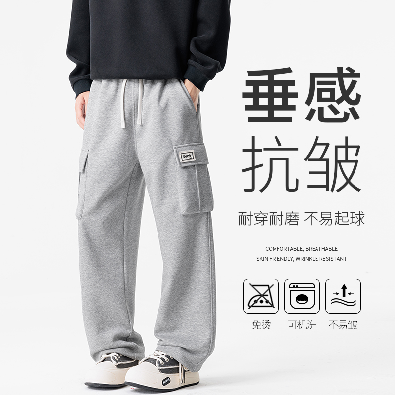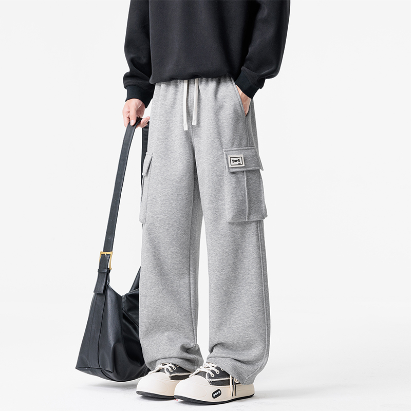 새로운 느슨함 바람 회색 루즈핏 스트레이트 웨이 바지 도루 센스 넓은 다리 캐주얼 긴 바지 다용도 도루 센스 운동 바지 웨이 바지