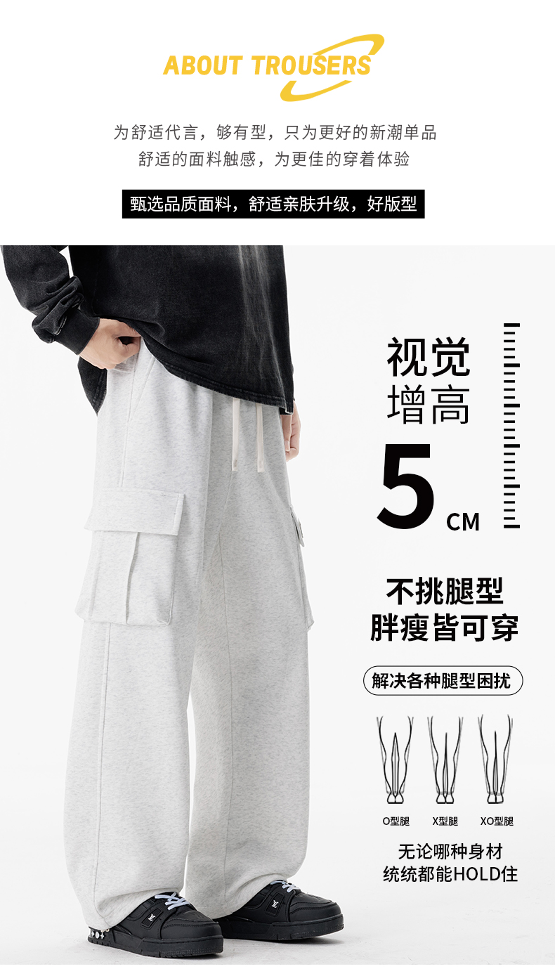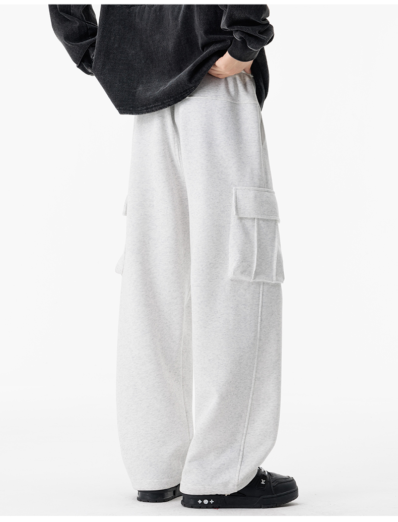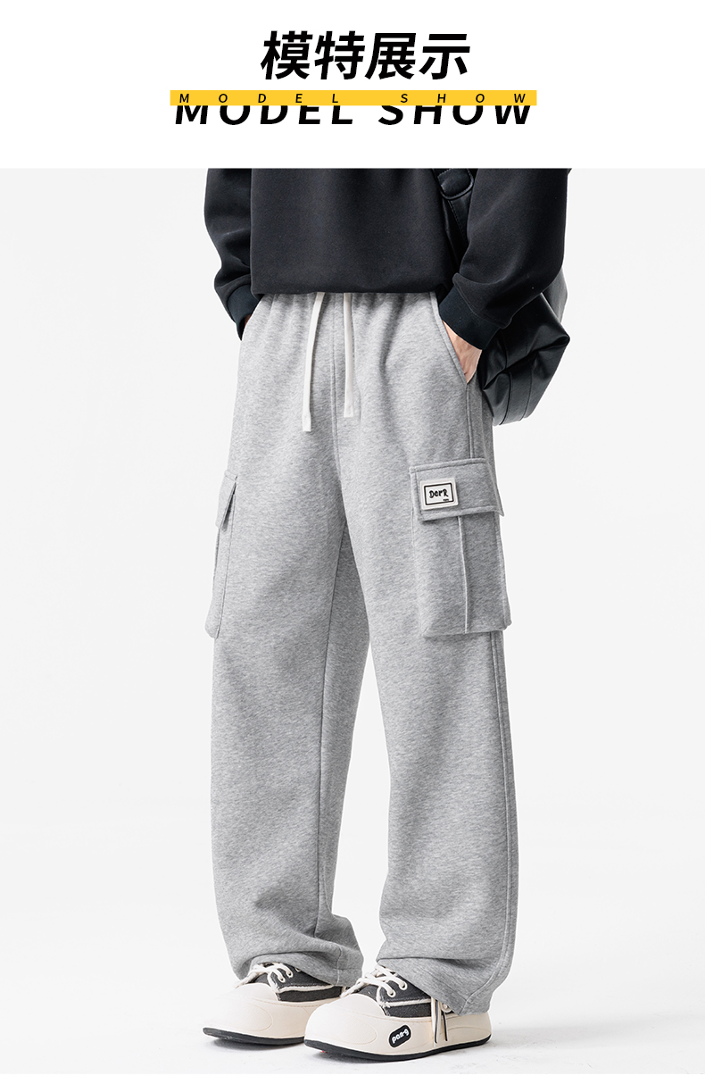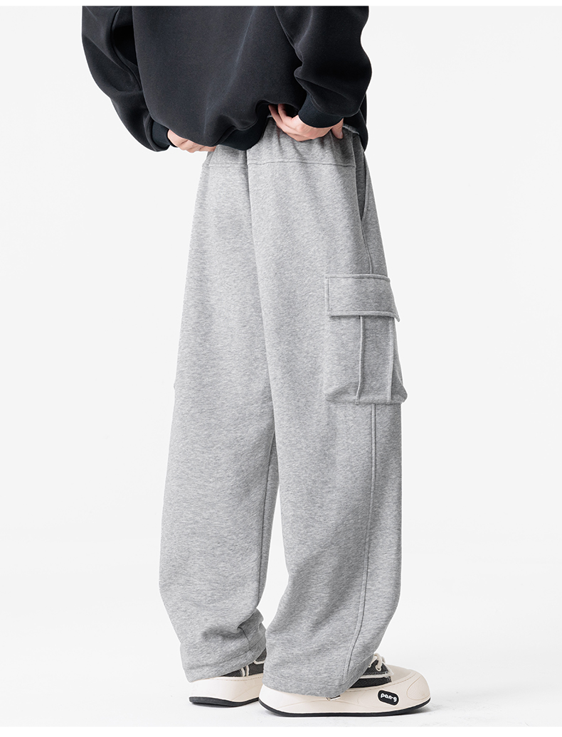 새로운 느슨함 바람 회색 루즈핏 스트레이트 웨이 바지 도루 센스 넓은 다리 캐주얼 긴 바지 다용도 도루 센스 운동 바지 웨이 바지