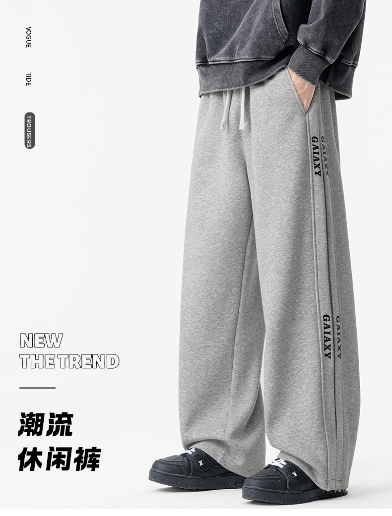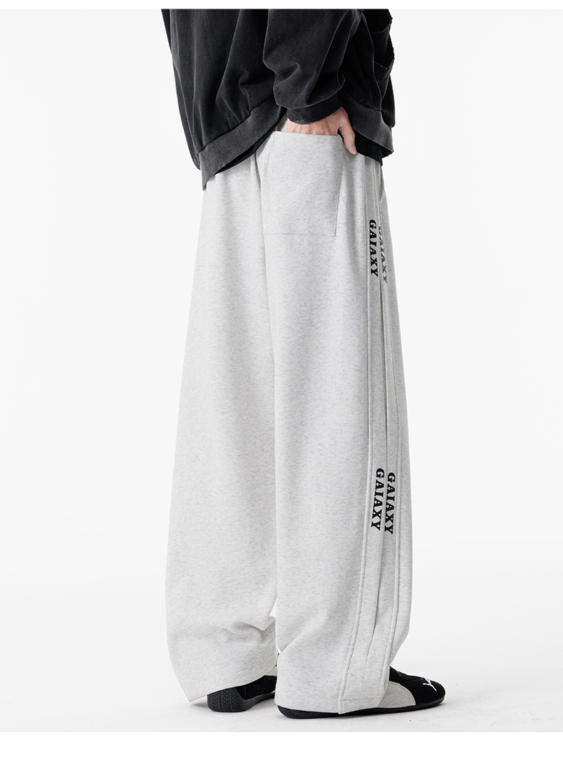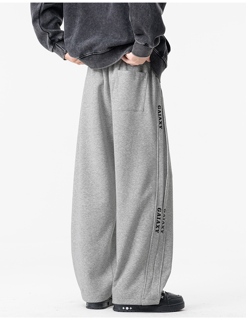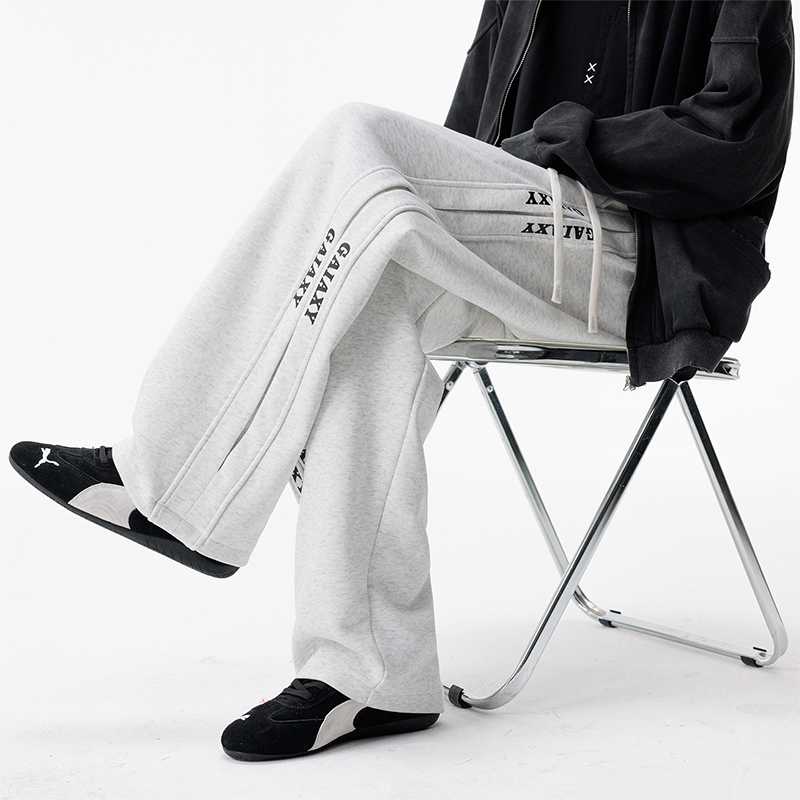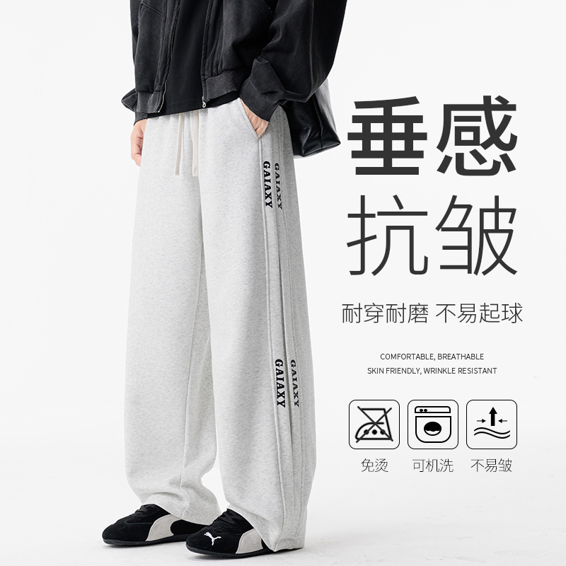 새로운 느슨함 바람 회색 루즈핏 스트레이트 웨이 바지 도루 센스 넓은 다리 캐주얼 긴 바지 다용도 도루 센스 운동 바지 웨이 바지