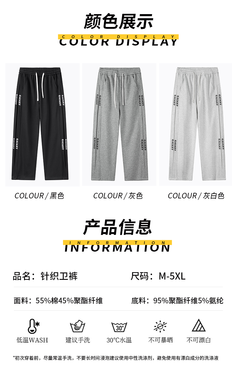 새로운 봄 가을 새로운 워싱 면 운동 캐주얼 소년 청소년 넓은 다리 루즈핏 학생 스트레이트 긴 바지