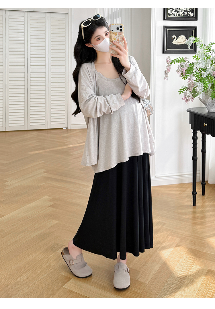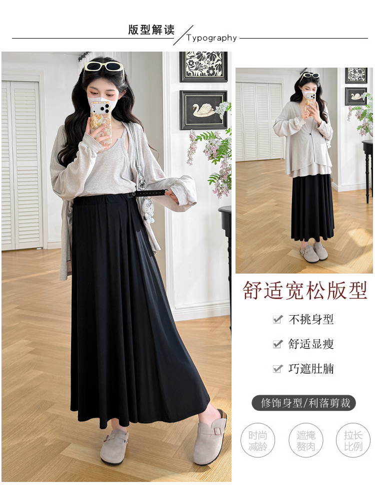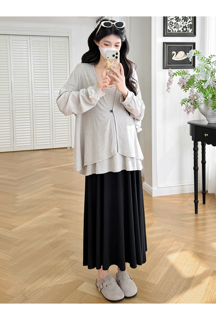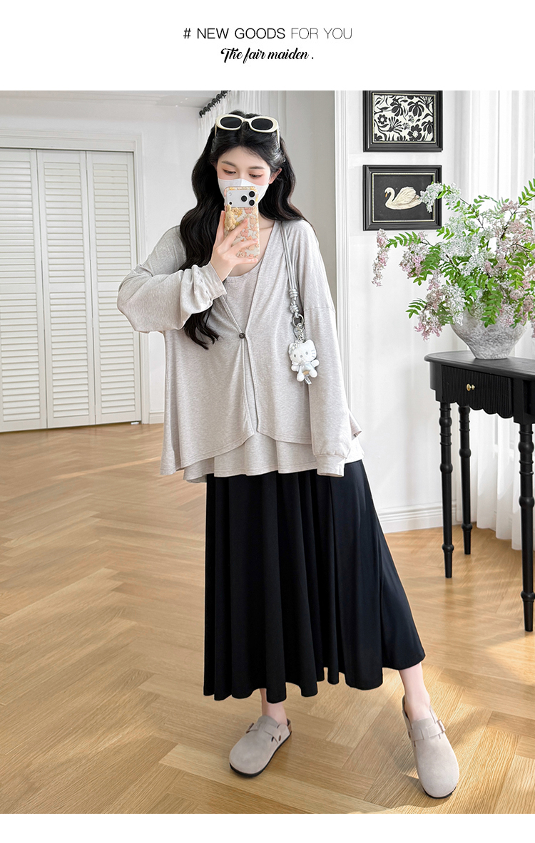 실사 신제품 임산부 봄 여름 외출용 디자인 센스 루즈핏 다용도 연령 감소 티셔츠 복부 지지 슬림해 보이는 치마 세트