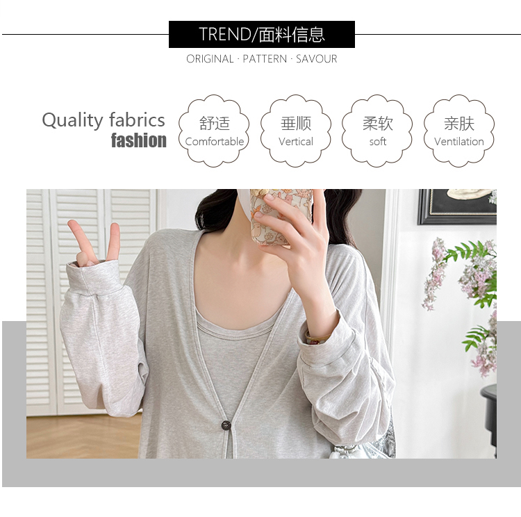 실사 봄 새로운 긴팔 셔츠 루즈핏 슬림해 보이는 멜빵 스커트 투피스 세트 출산 착용