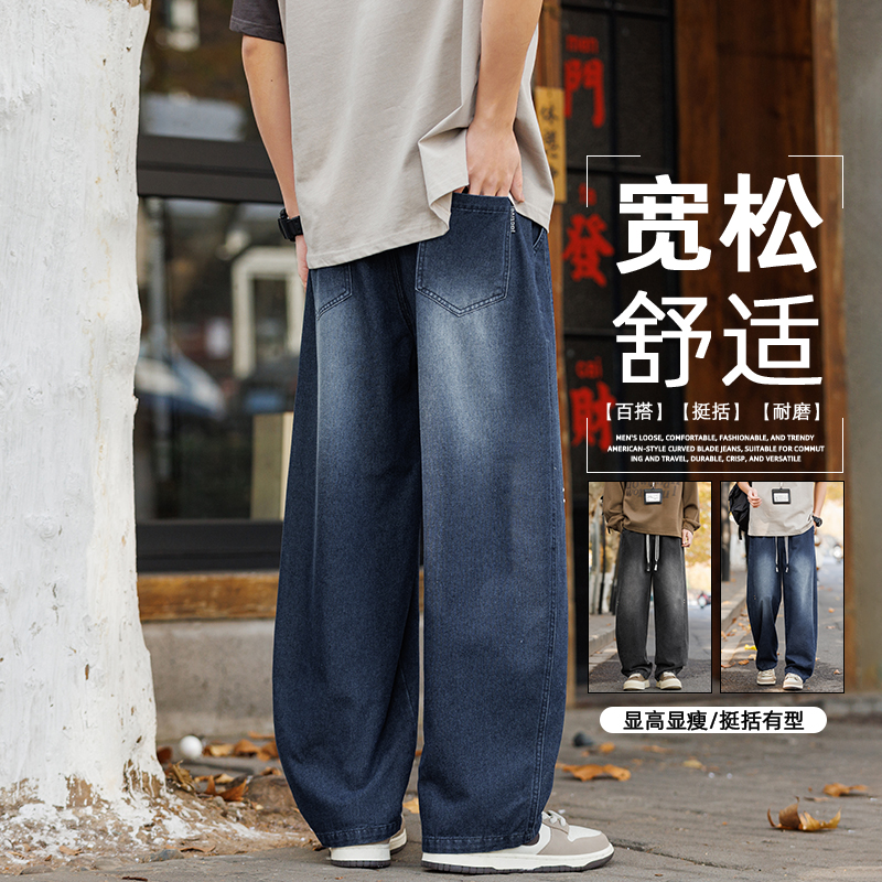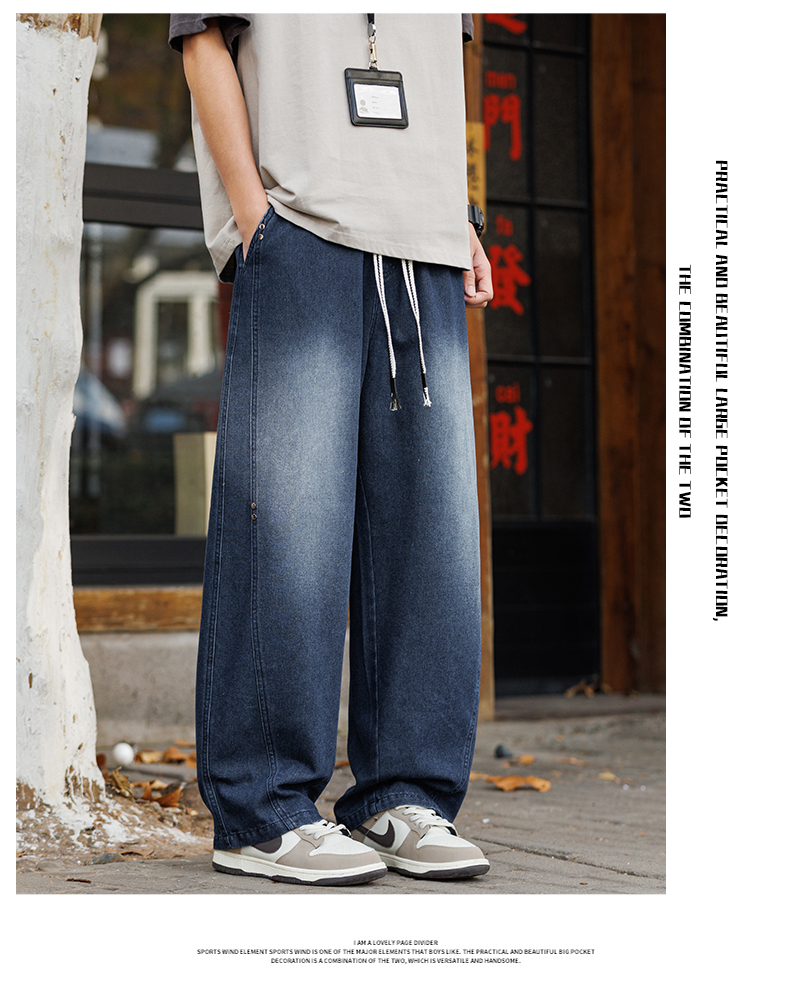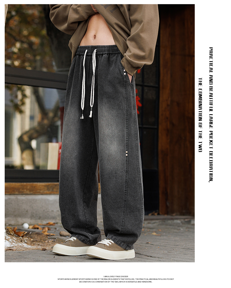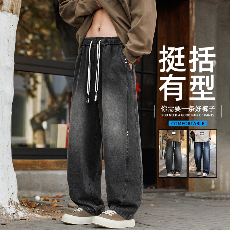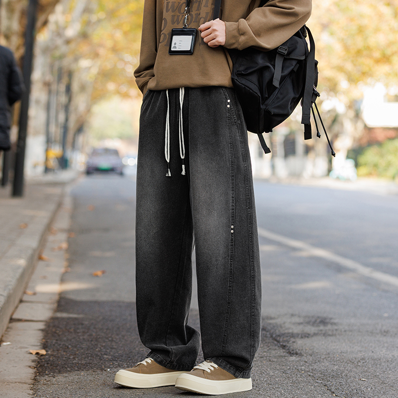 새로운 아메리칸 모통이 칼 바지 루즈핏 넓은 다리 청바지 남자 다용도 캐주얼 긴 바지 겨울 펌프 로프 스트레이트 팬츠