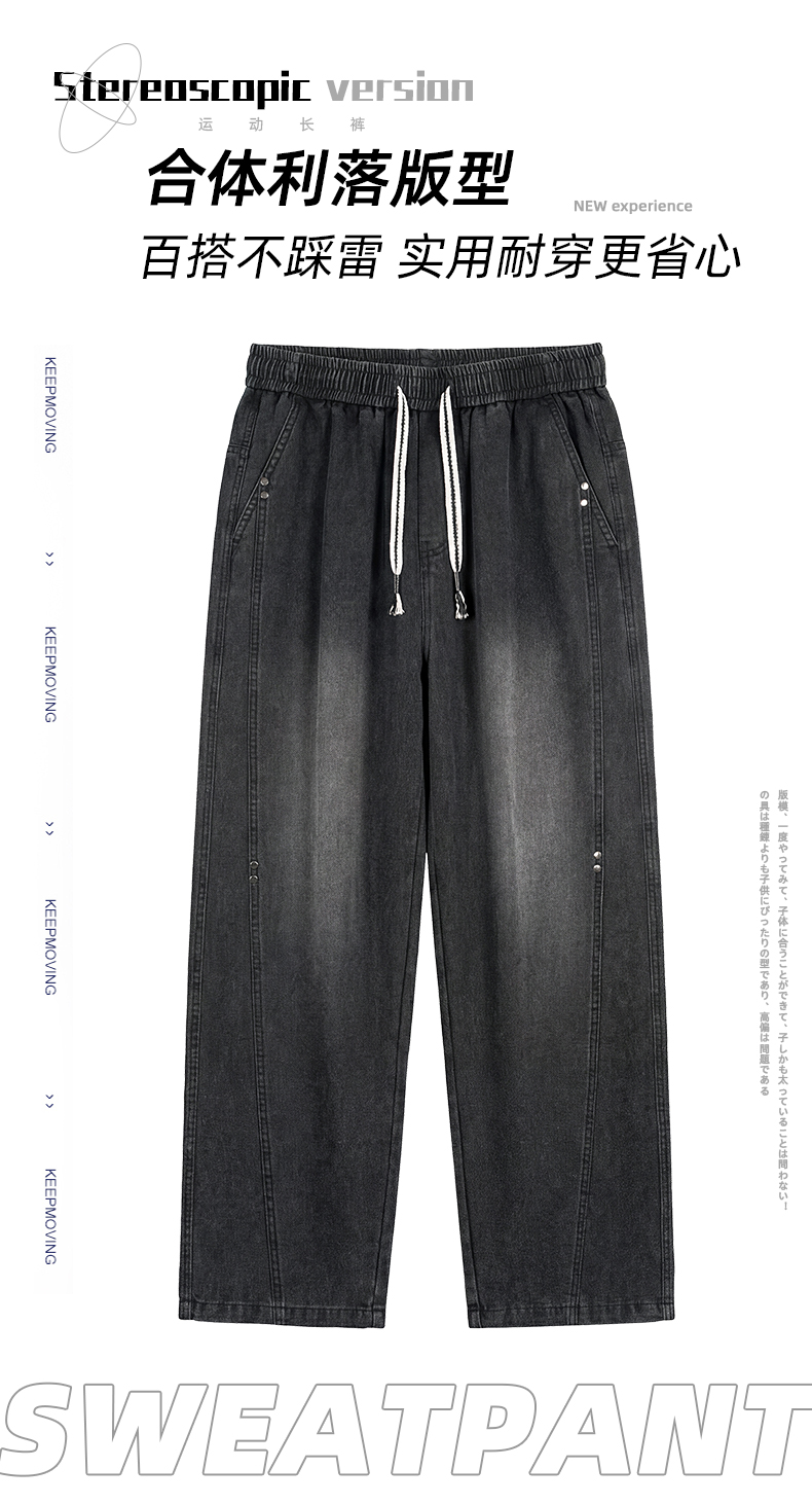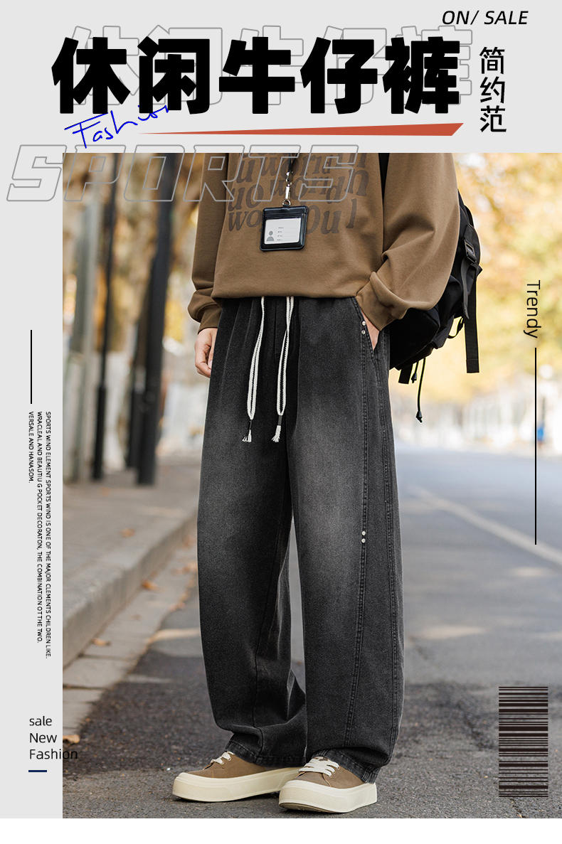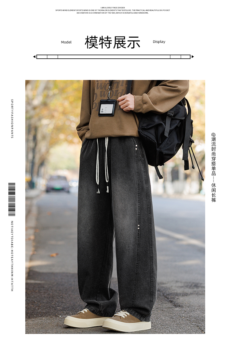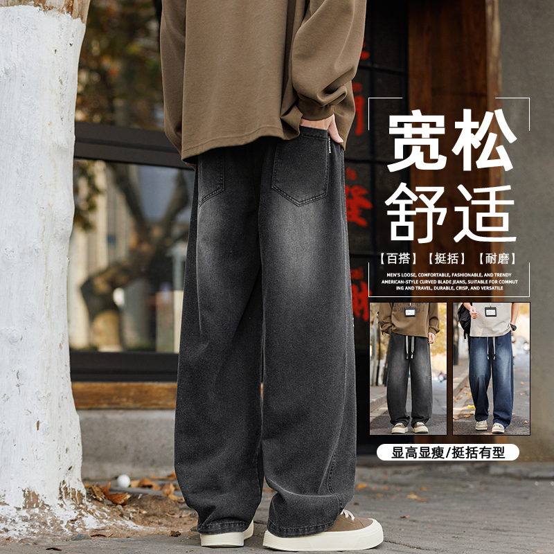 새로운 아메리칸 모통이 칼 바지 루즈핏 넓은 다리 청바지 남자 다용도 캐주얼 긴 바지 겨울 펌프 로프 스트레이트 팬츠