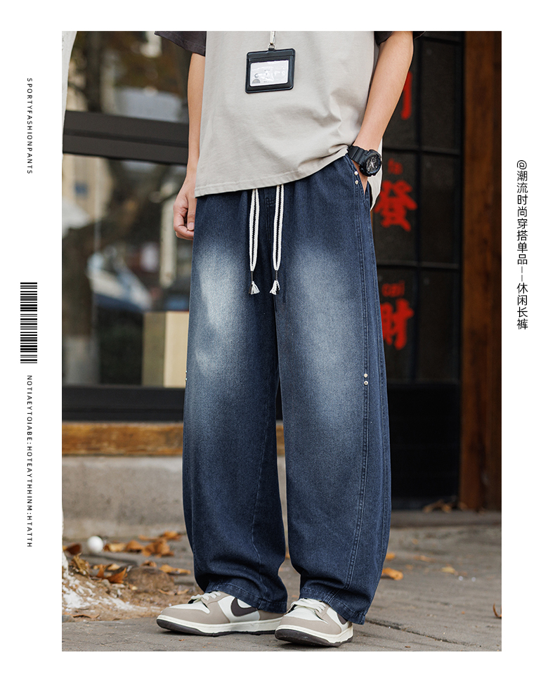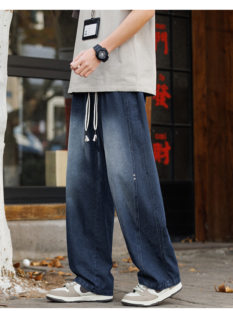 새로운 라이 경기 서울 주간 실크 얇고 가벼운 통기성 아메리칸 레트로 워싱 청바지 루즈핏 넓은 다리 도루 센스 캐주얼 바지