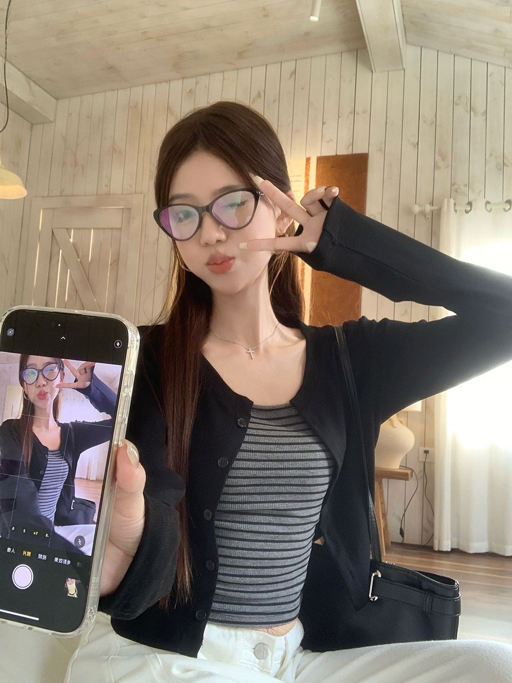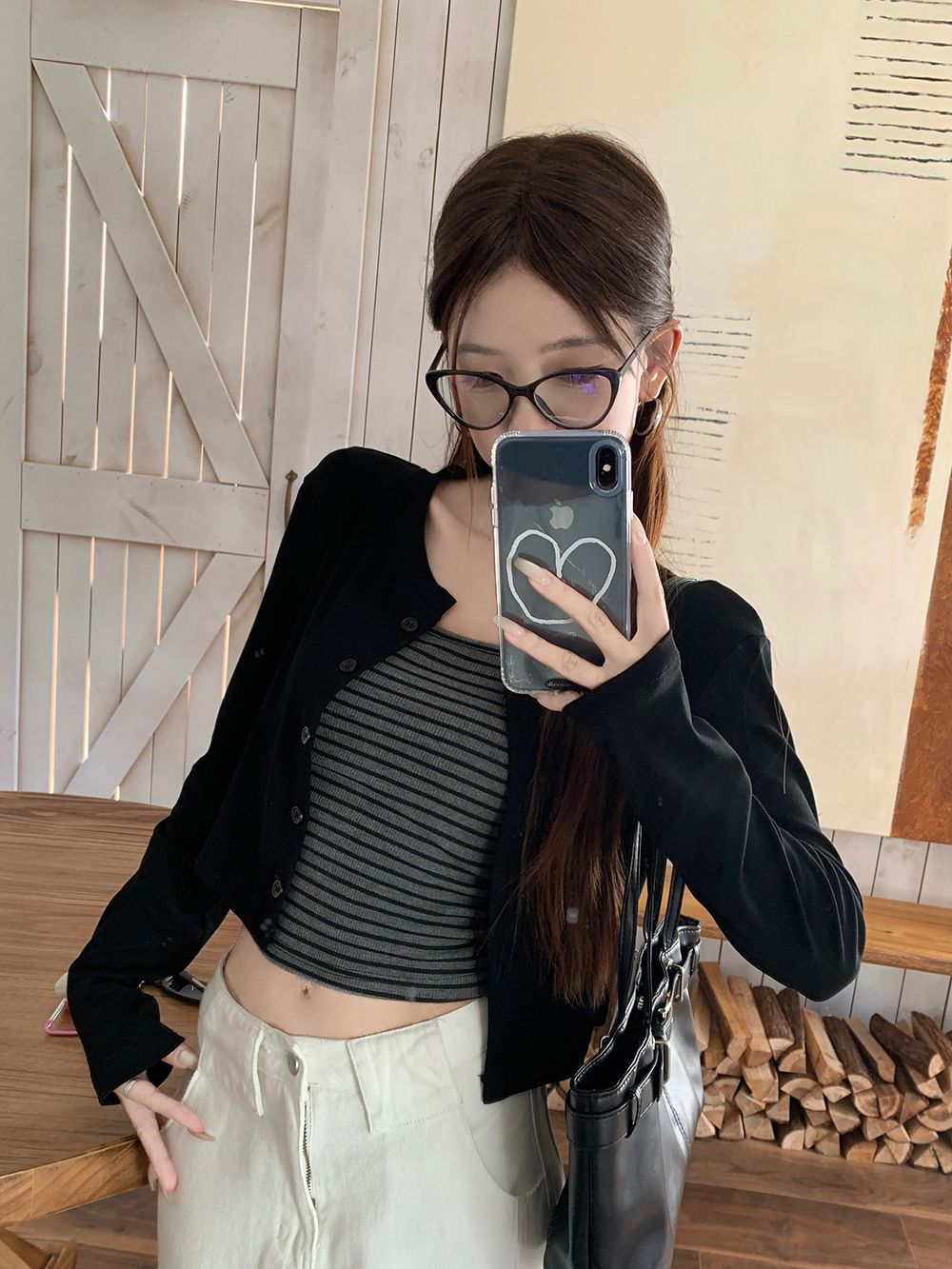 한 부서 디자인 센스 긴팔 오픈 가디건 스트라이프 조끼 슬립 봄 새로운 달콤한 매운맛 패션 세트
