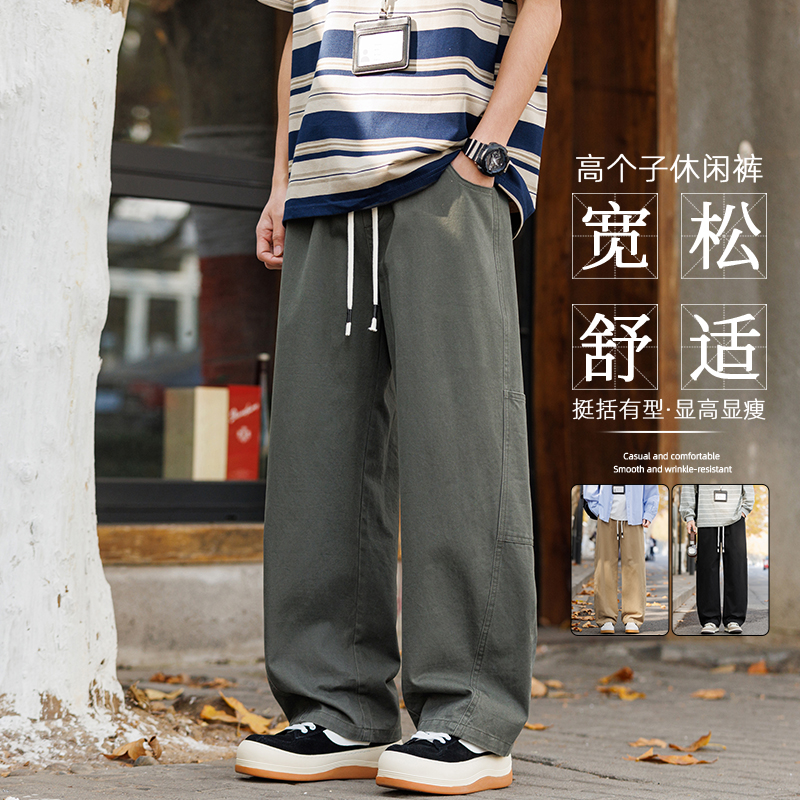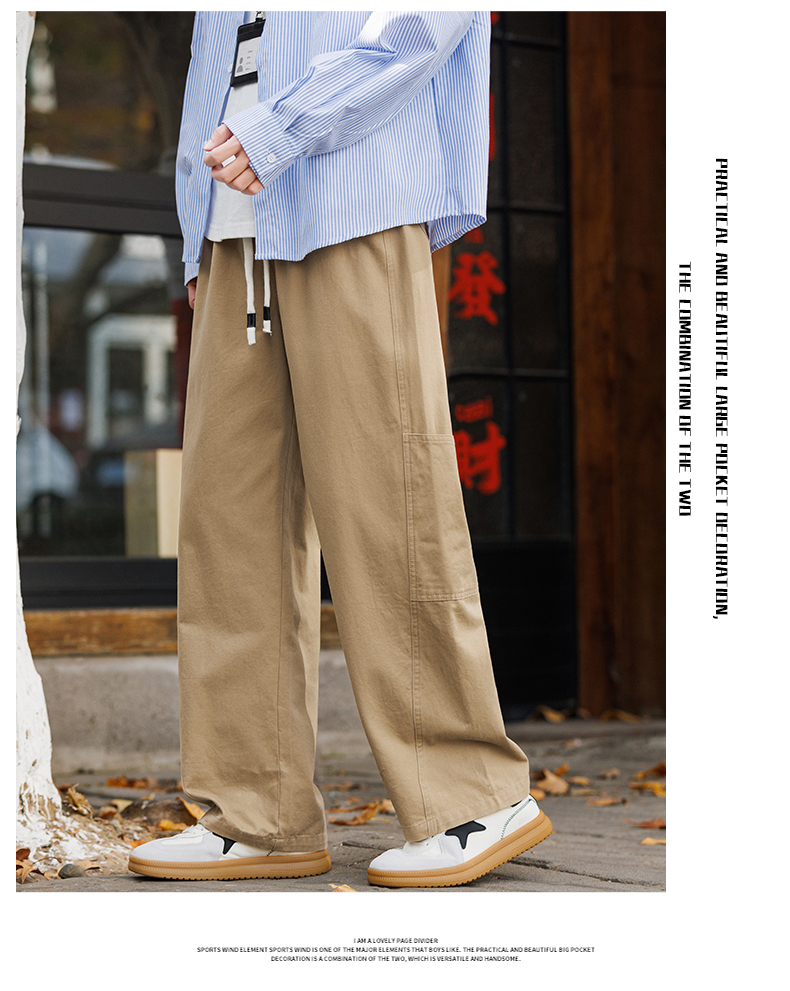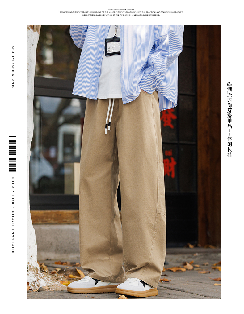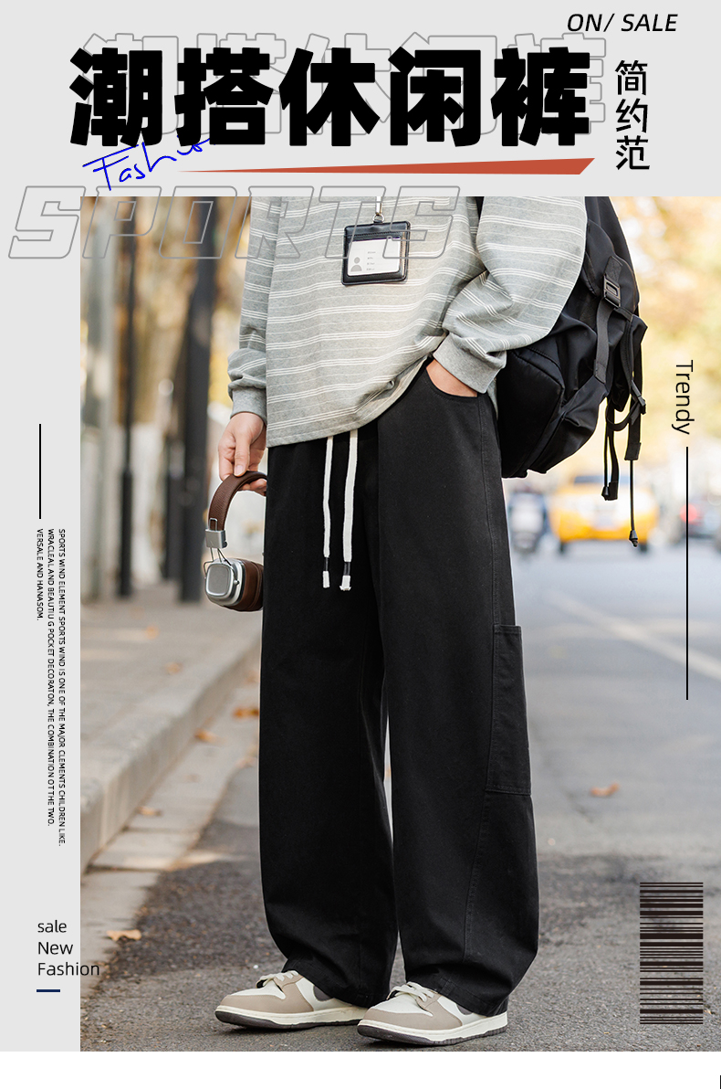 새로운 얇은 스타일 도루 센스 캐주얼 바지 남성 루즈핏 스트레이트 팬츠 남성 넓은 다리 운동 워크웨어 긴 바지