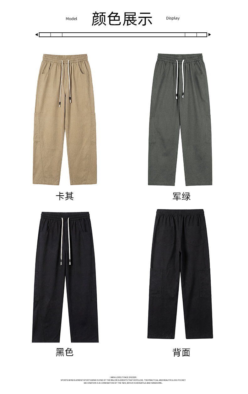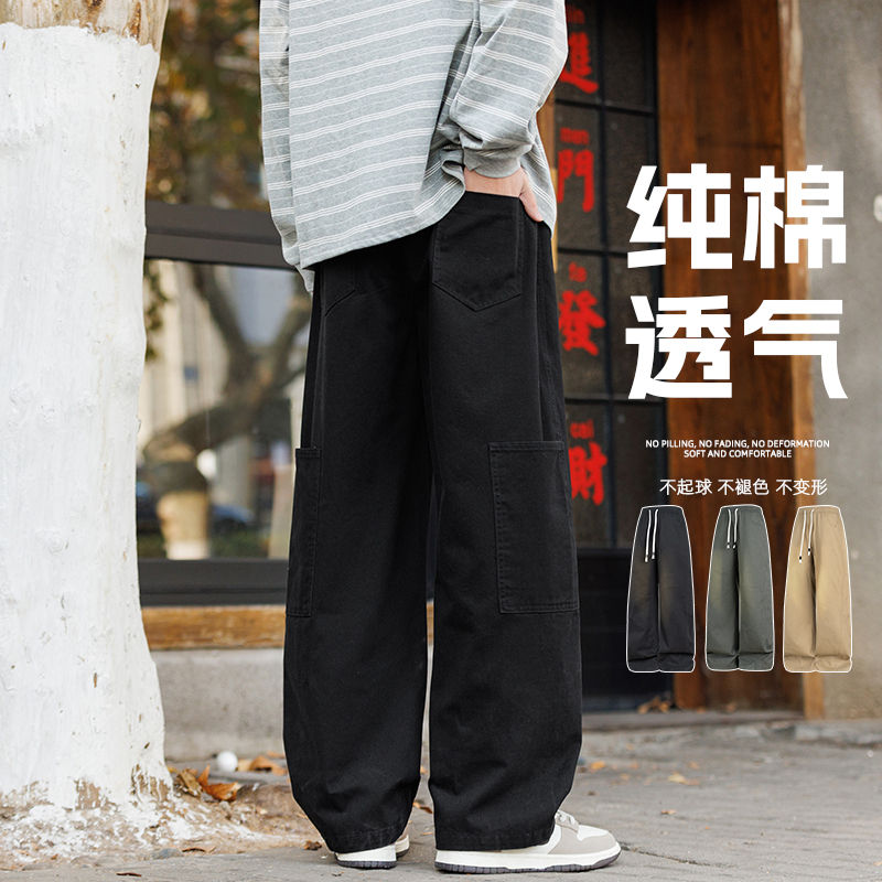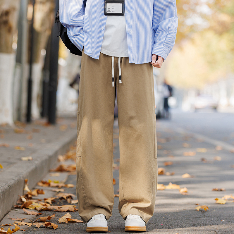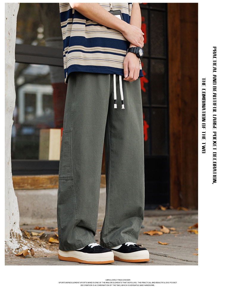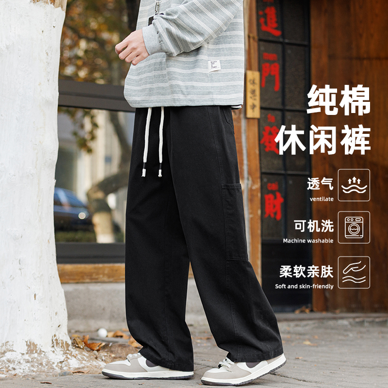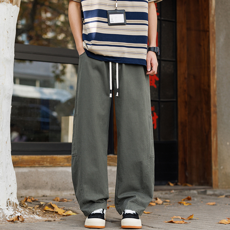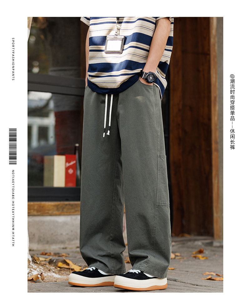 새로운 순면 워싱 통기성 캐주얼 바지 남자 루즈핏 스트레이트 팬츠 다용도 도루 센스 긴 바지 남성 펌프 로프 바지