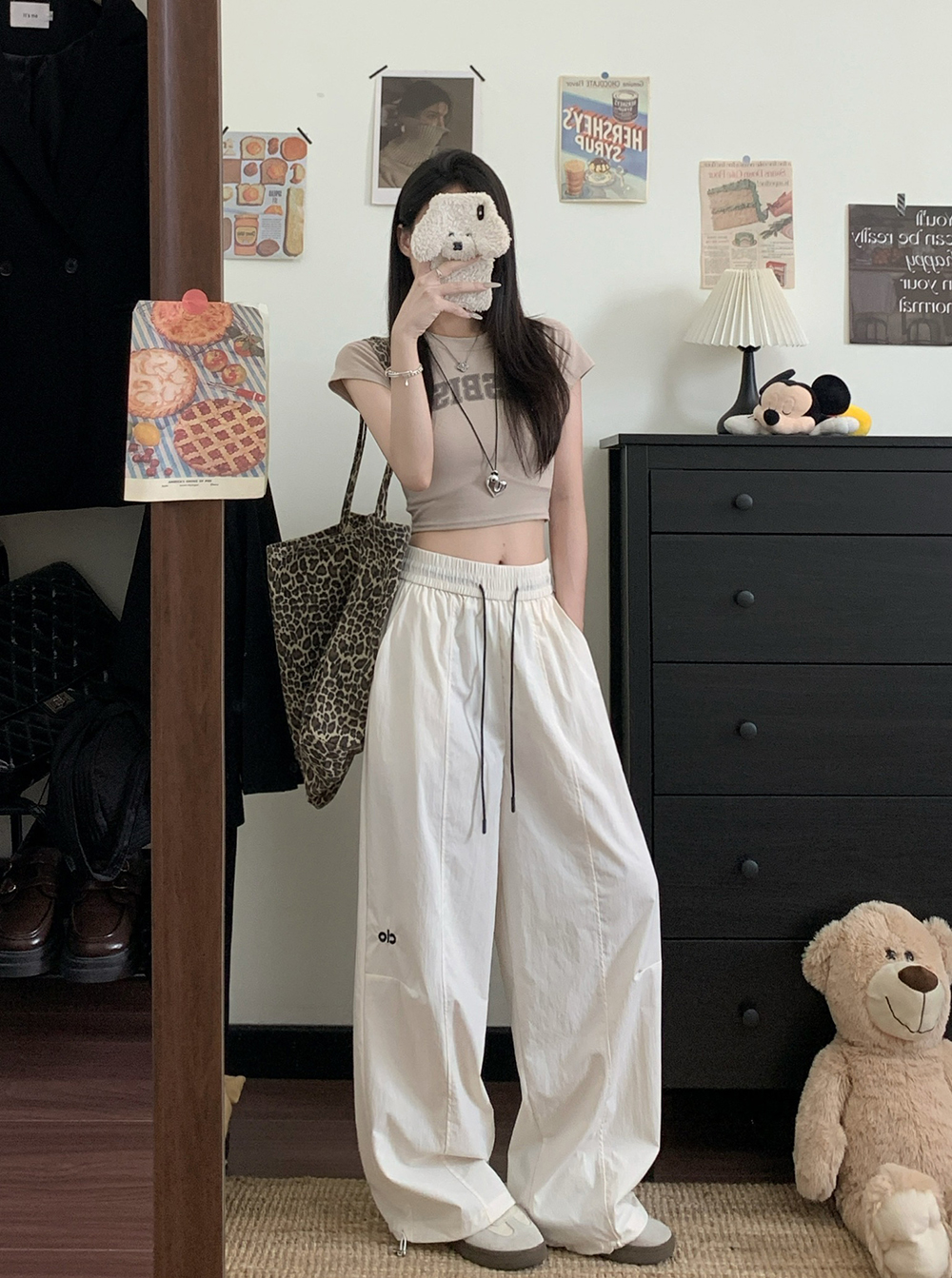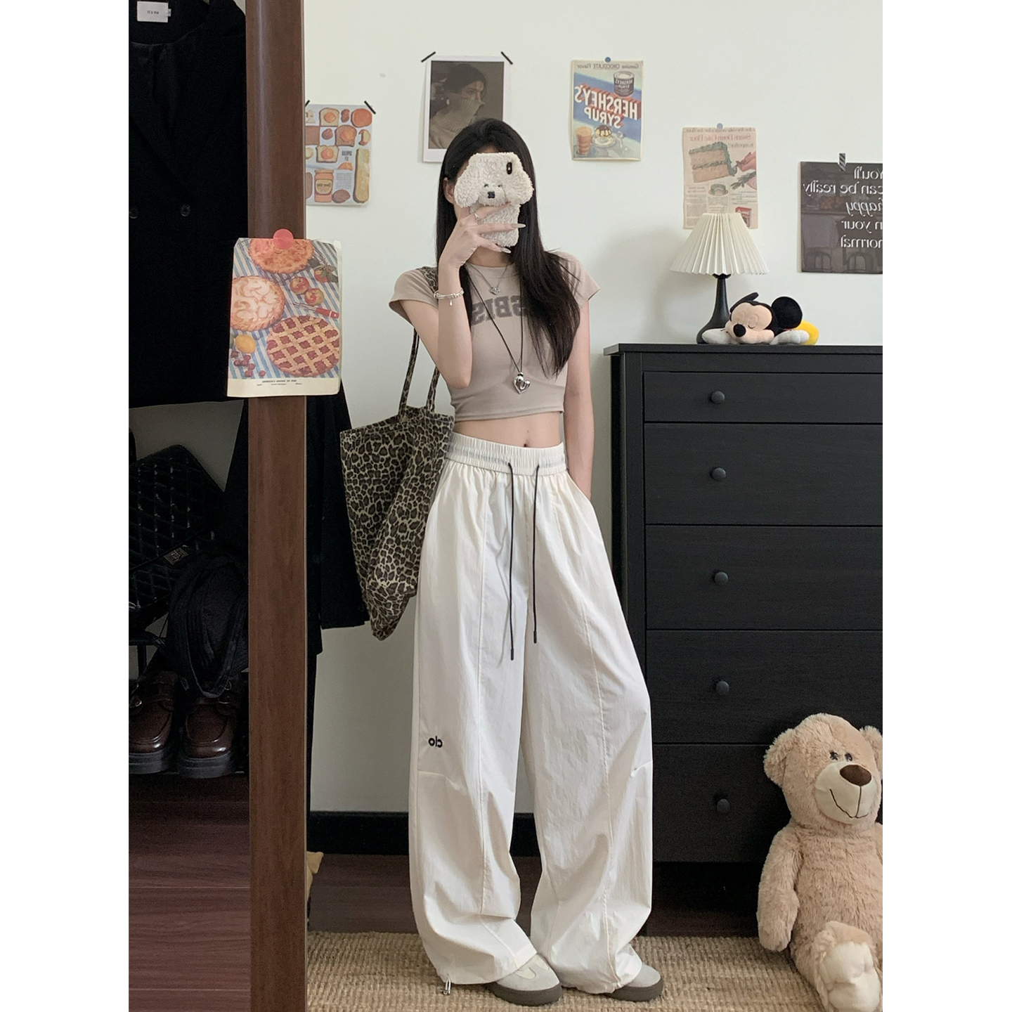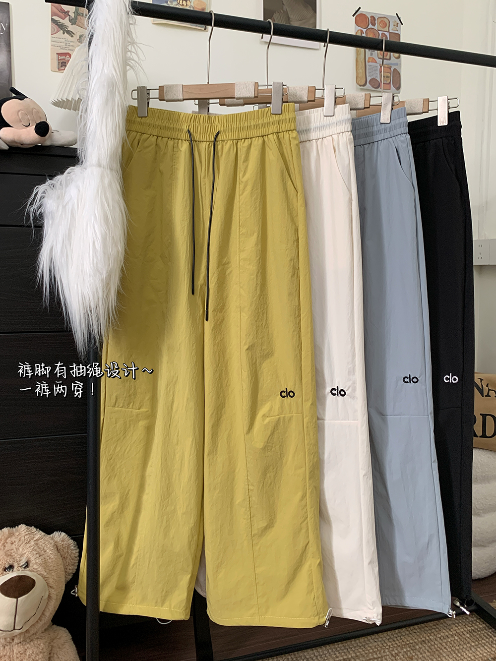 실사 2026 새로운 개성 디자인 센스 와이드 레깅스 바지 도루 센스 루즈핏 캐주얼 바지