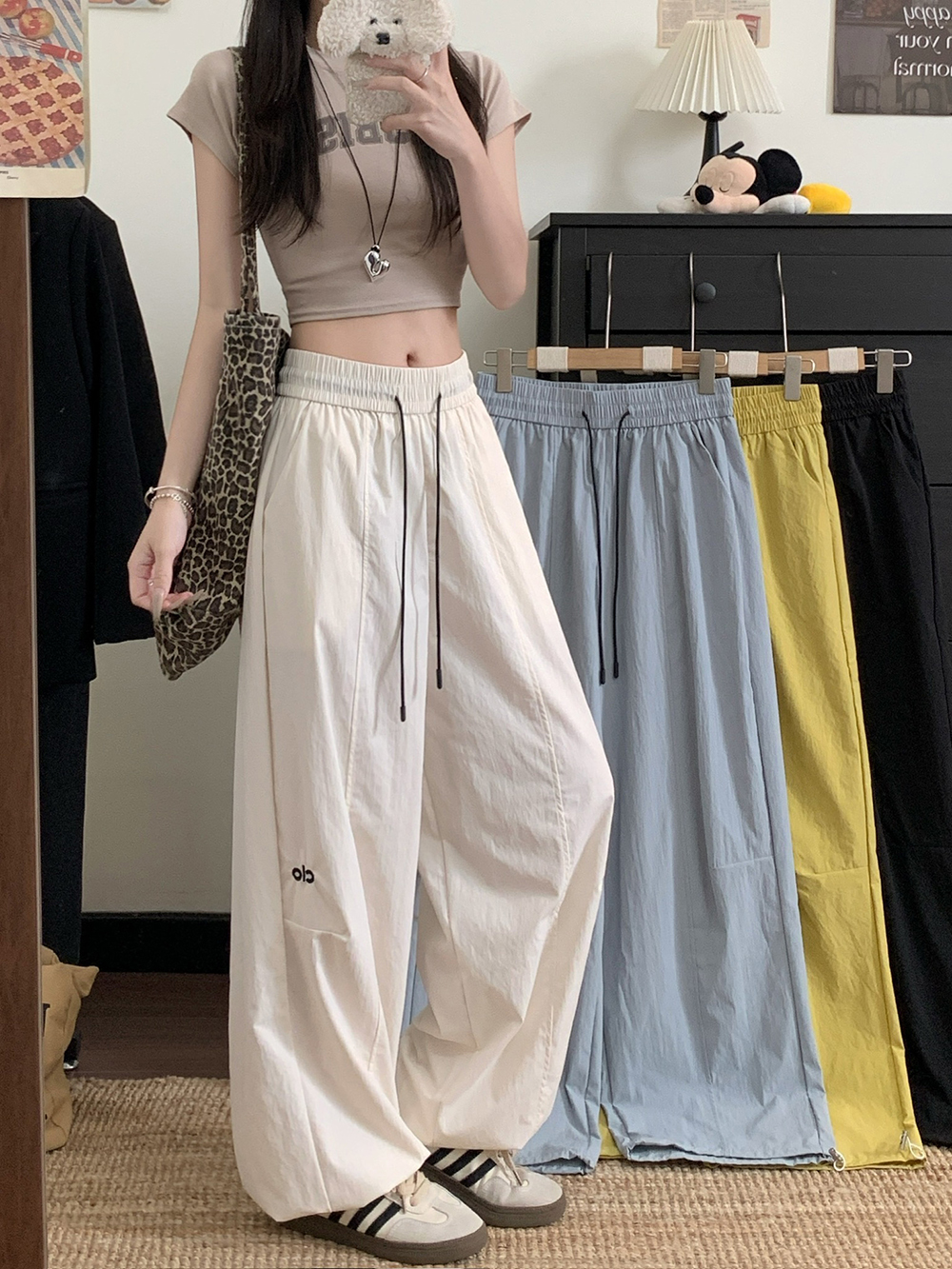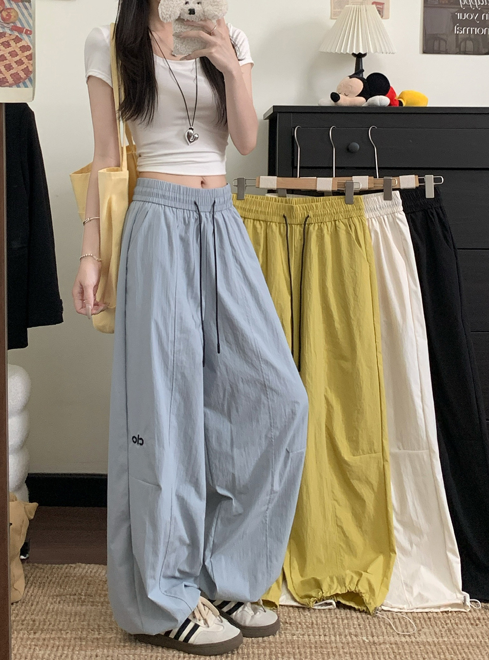 실사 새로운 허리밴드 슬림해 보이는 캐주얼 바지 여성 루즈핏 와이드 레그 팬츠