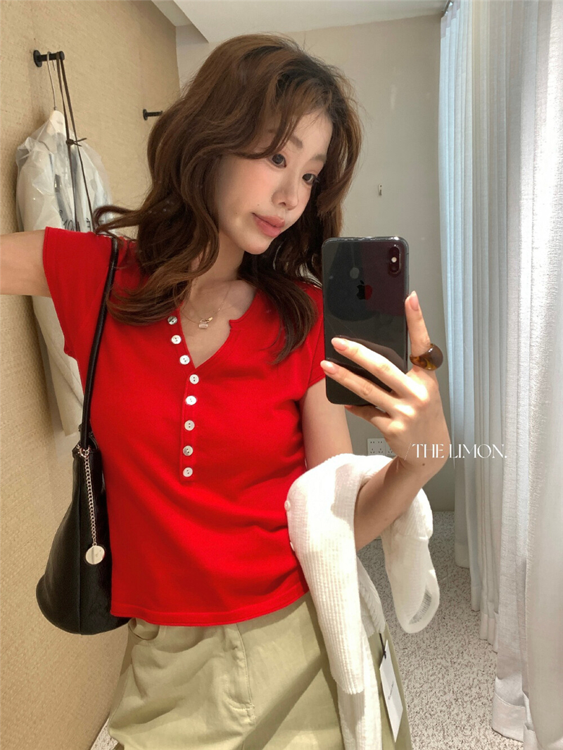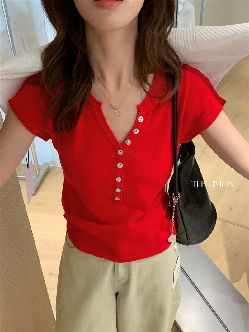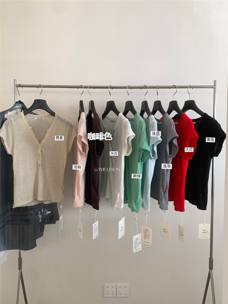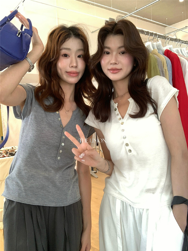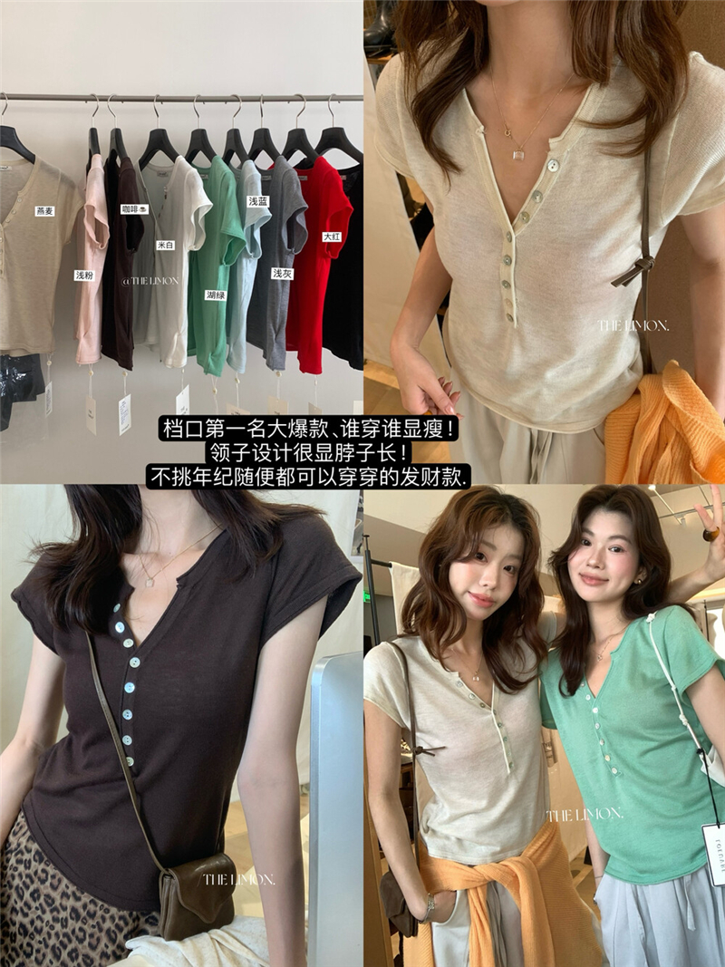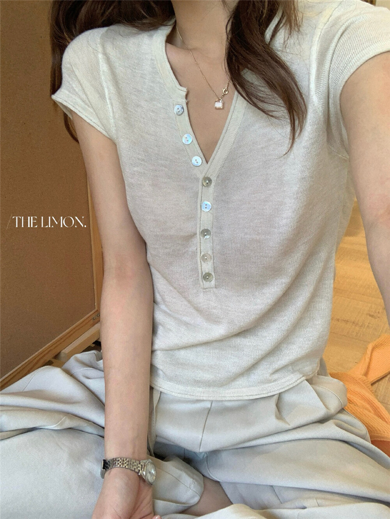 헨리 셔츠 레몬 녹차 반 개방 칼라 단추 긍정적 인 어깨 몸매 가꾸기 슬림해 보이는 니트 스웨터 다용도 디자인 센스 맨위