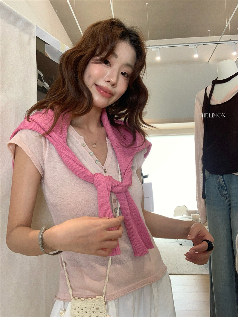 느긋한 자매 모달 핑크색 오픈 가디건 외부 가져 가라. 여름 튜브탑 한 부서 분위기 센스 순수한 욕망 세트