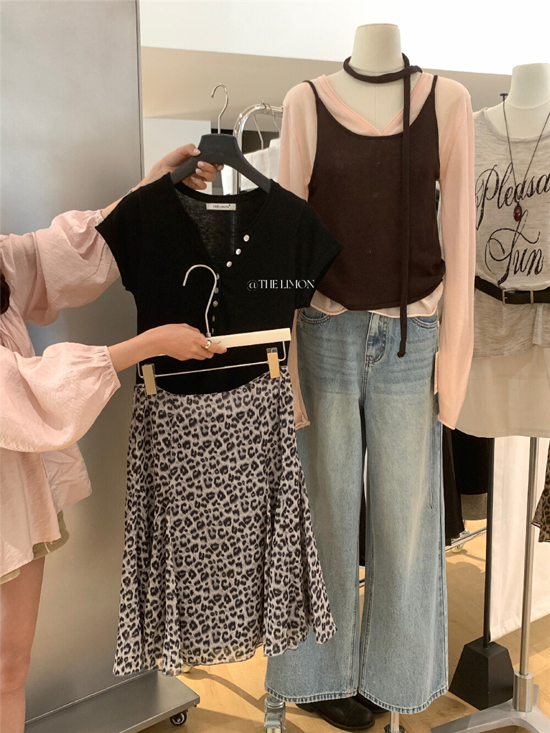 한 부서 디자인 센스 긴팔 오픈 가디건 스트라이프 조끼 슬립 봄 새로운 달콤한 매운맛 패션 세트