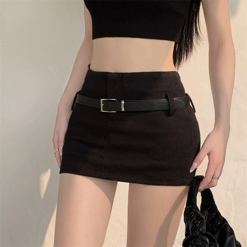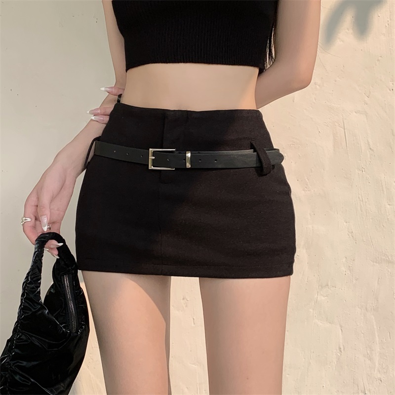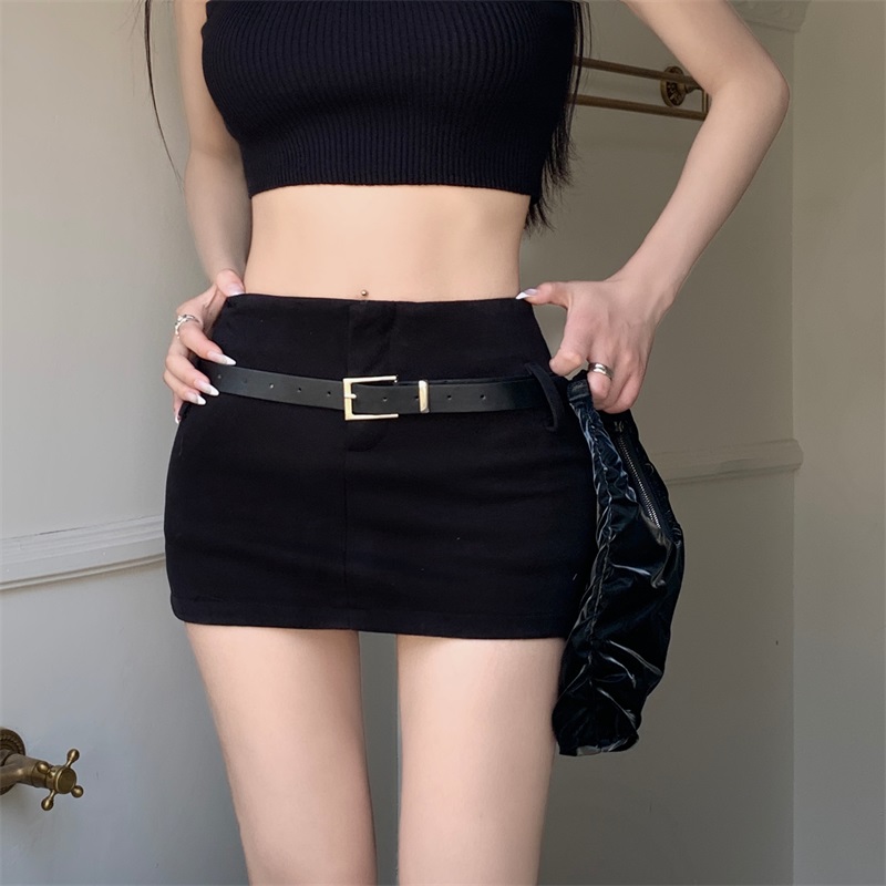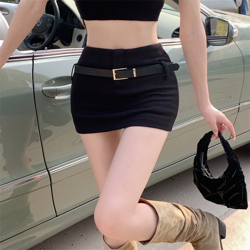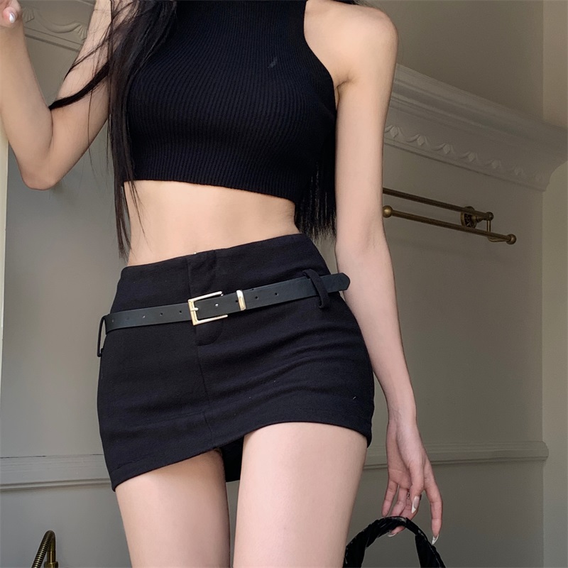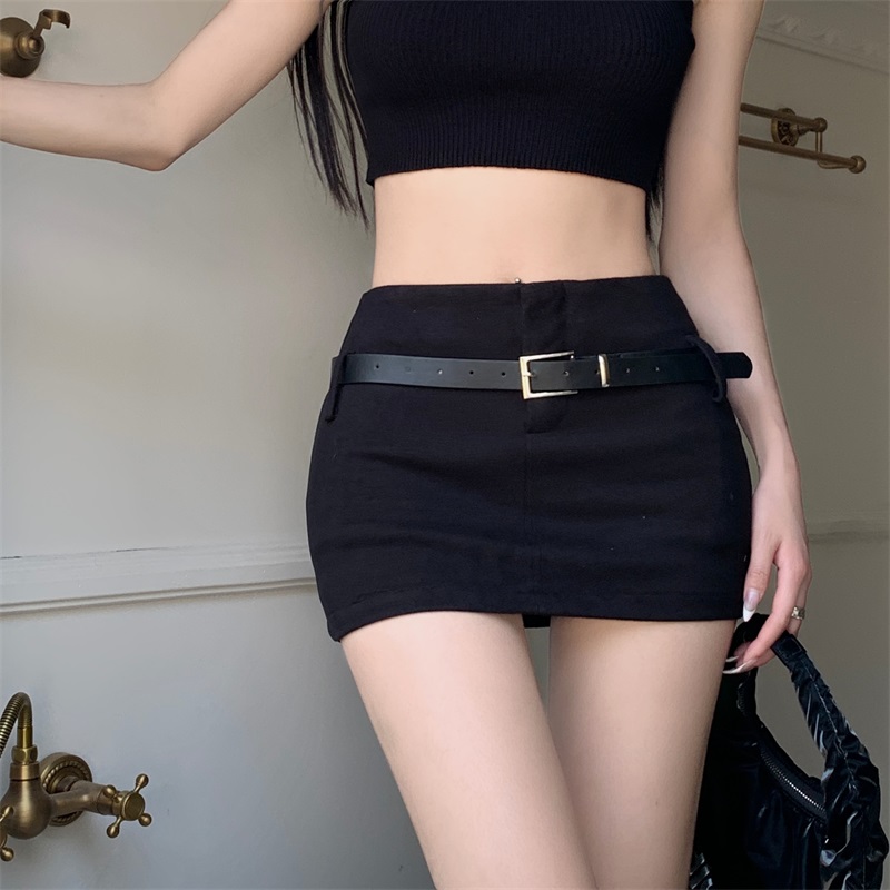 실사 정가 감소되지 않음 블랙 벨트 벨트 반신 스커트 여름 새로운 하이웨이스트 품격 섹시함 타이트 스커트 A라인 스커트