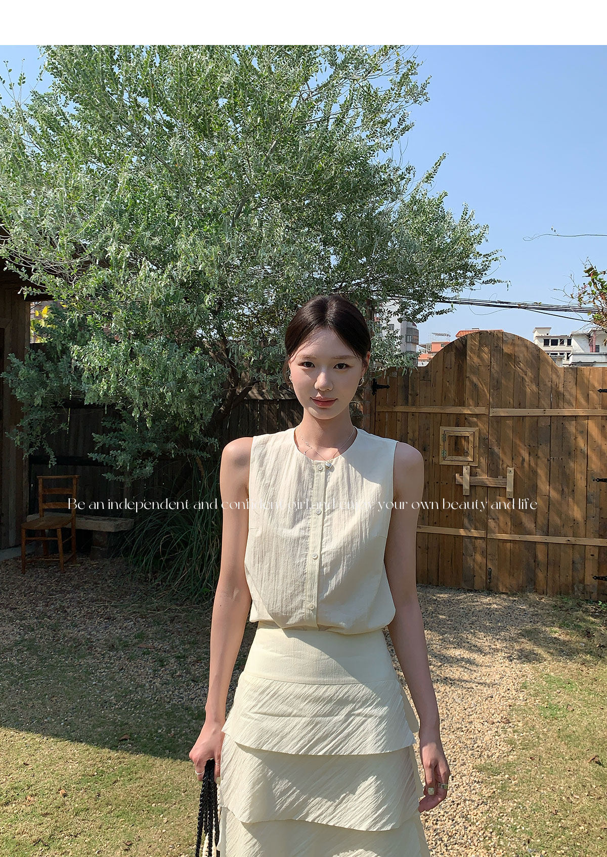 dh 대 꽃 남쪽 법 산책 익스트림 제인 라운드 넥 베스트 조끼 무거운 작업 기타 자르다 조각 케이크 반신 치마 세트