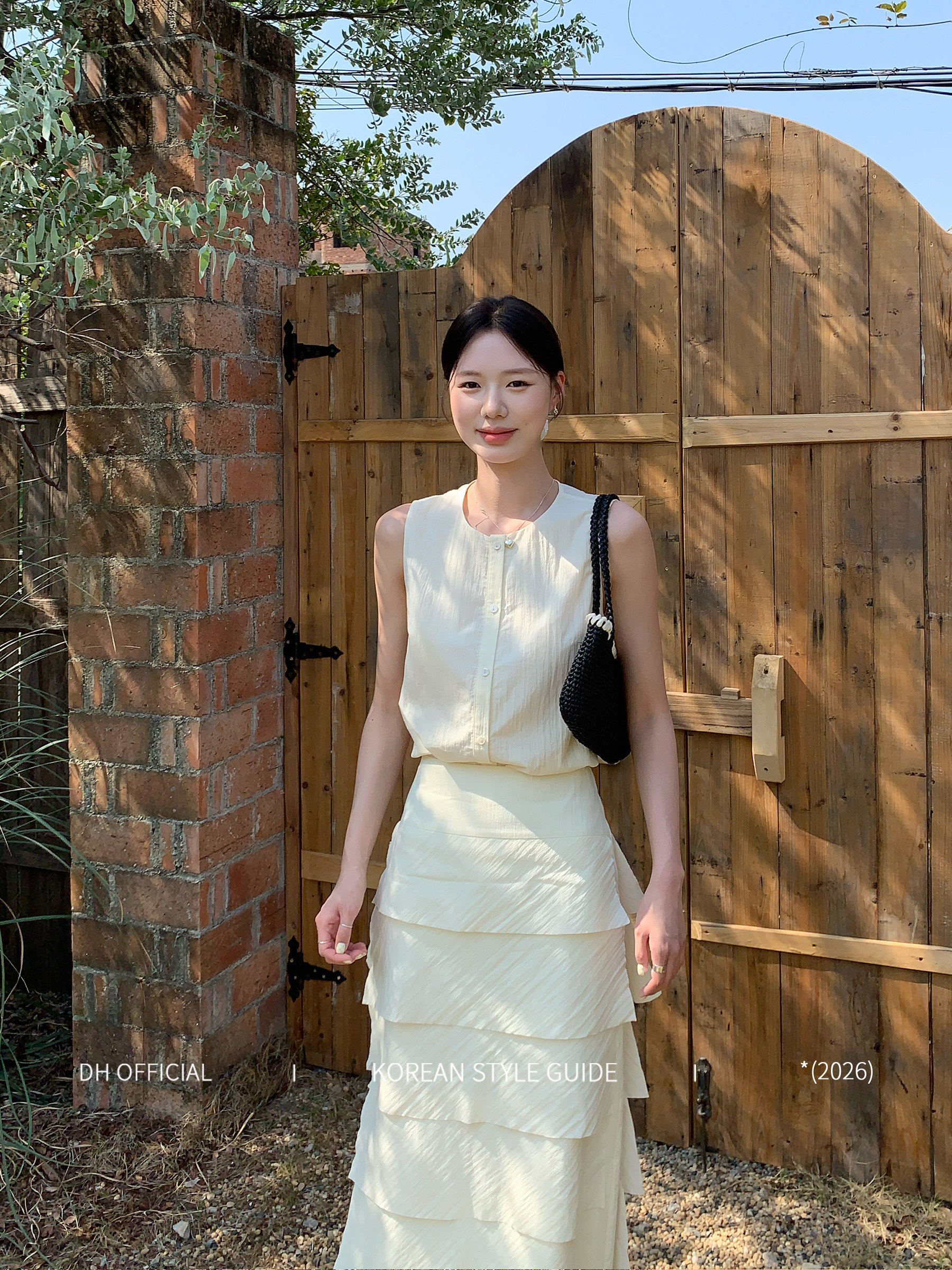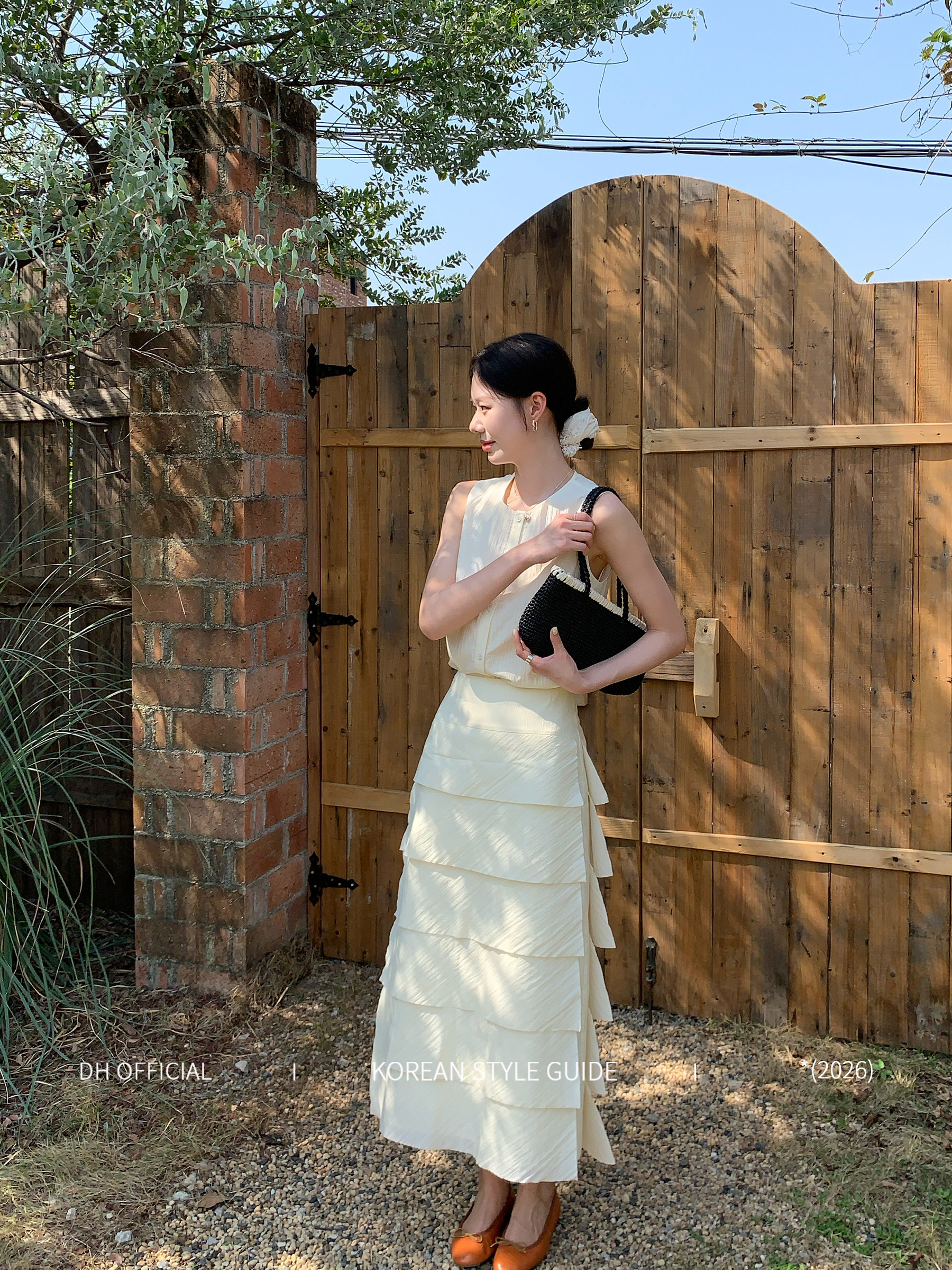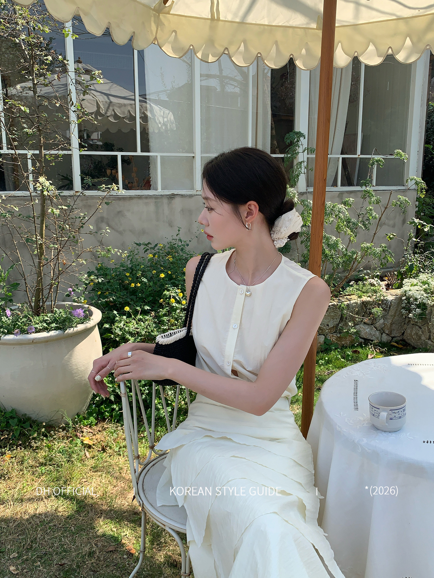 필드 크 사이 웨이 스타 같은 단락 2026 프랑스식 레트로 장미 여성 드레스 품격 슬림해 보이는 민소매 조끼 롱 스커트 여름