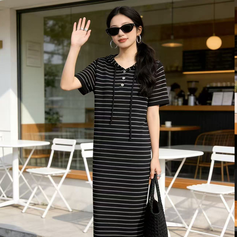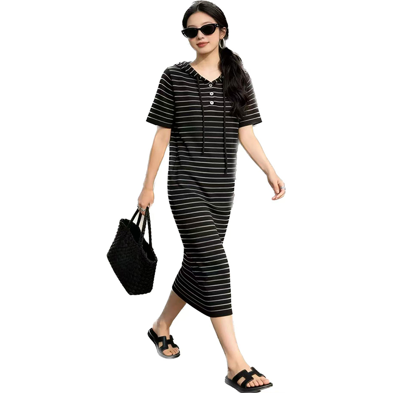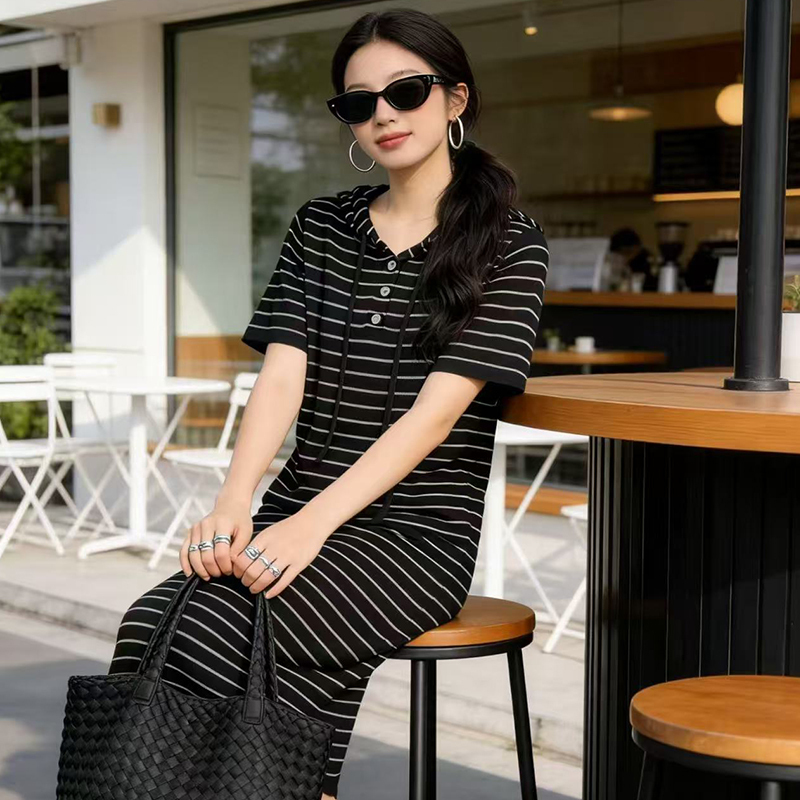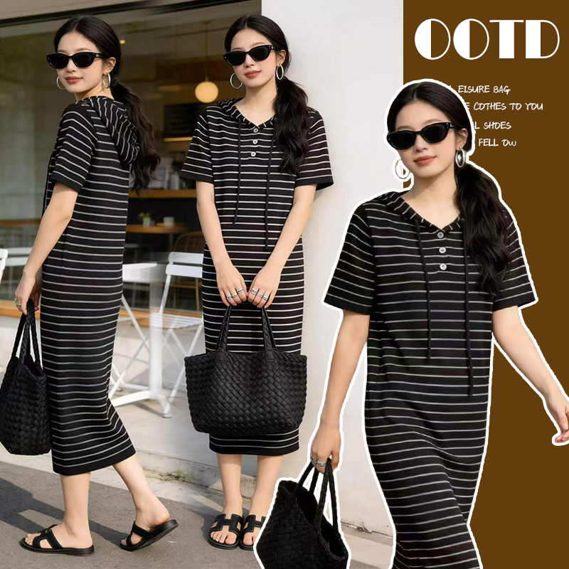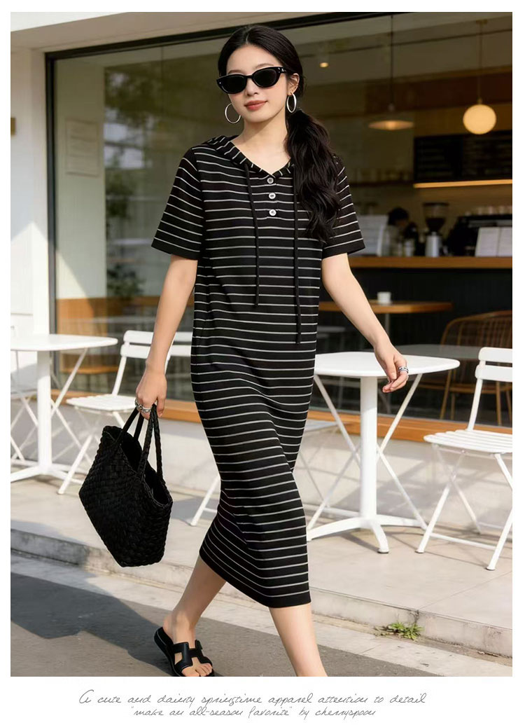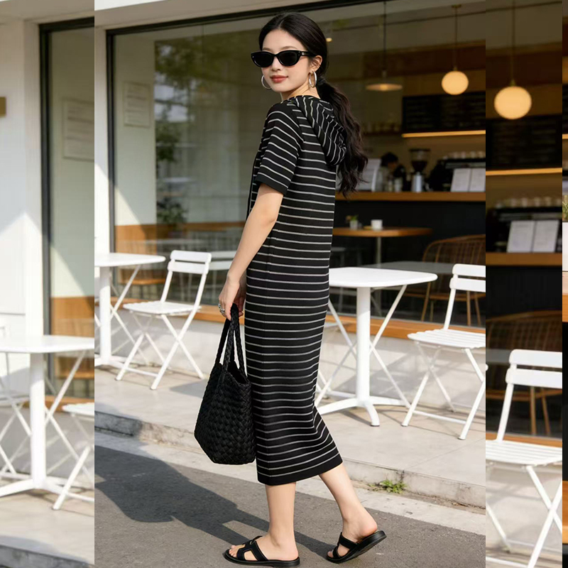 출산 착용 2026 여름 패션 스트라이프 니트 임산부 드레스 한국 스타일 루즈핏 표지 배 롱 코트