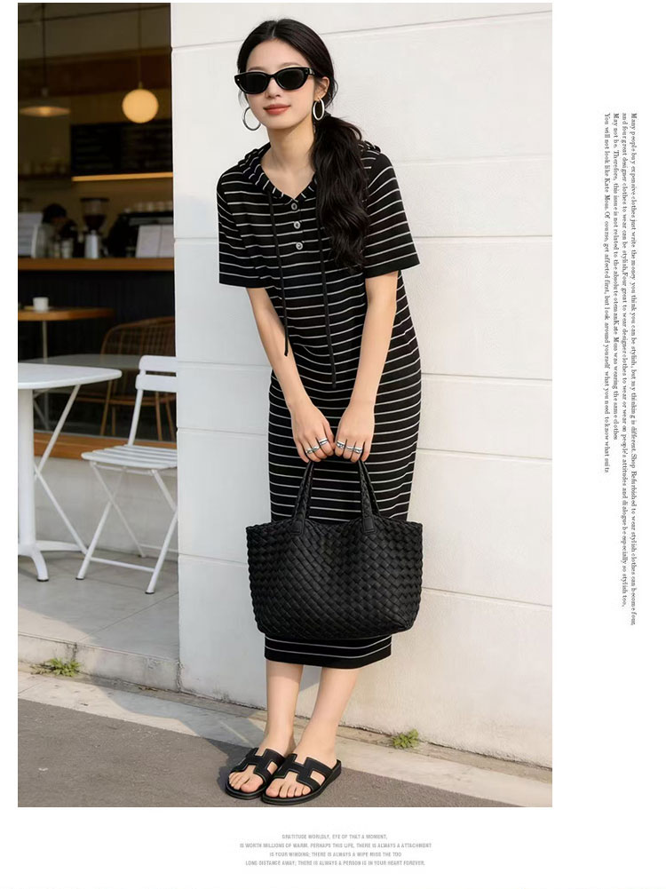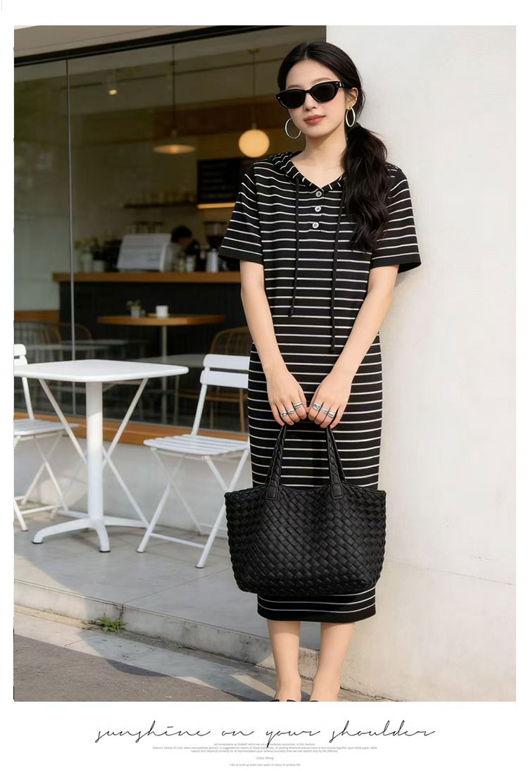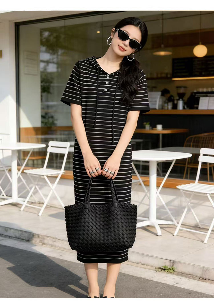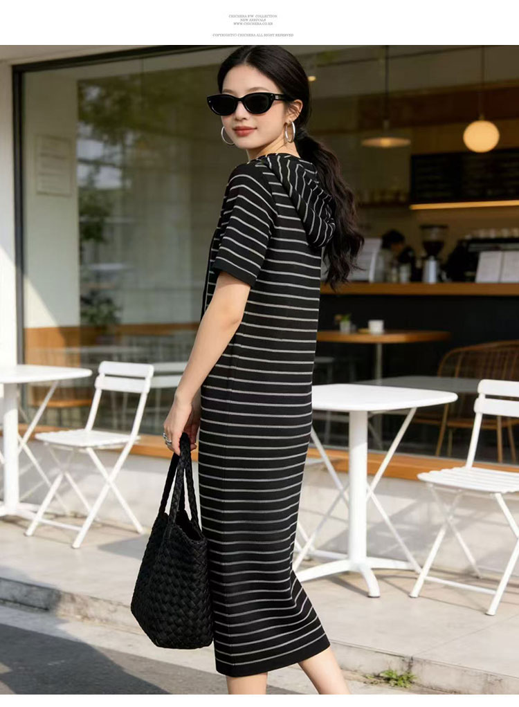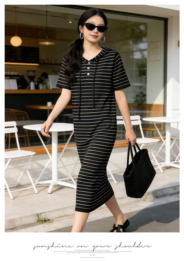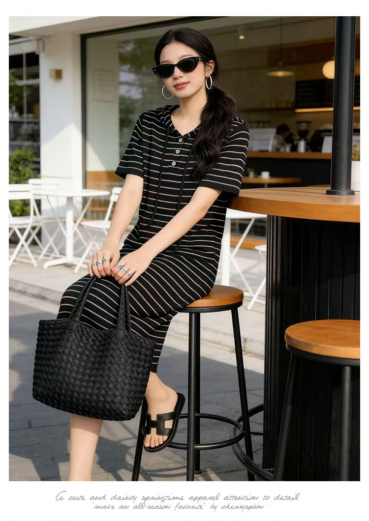출산 착용 2026 여름 패션 스트라이프 니트 임산부 드레스 한국 스타일 루즈핏 표지 배 롱 코트