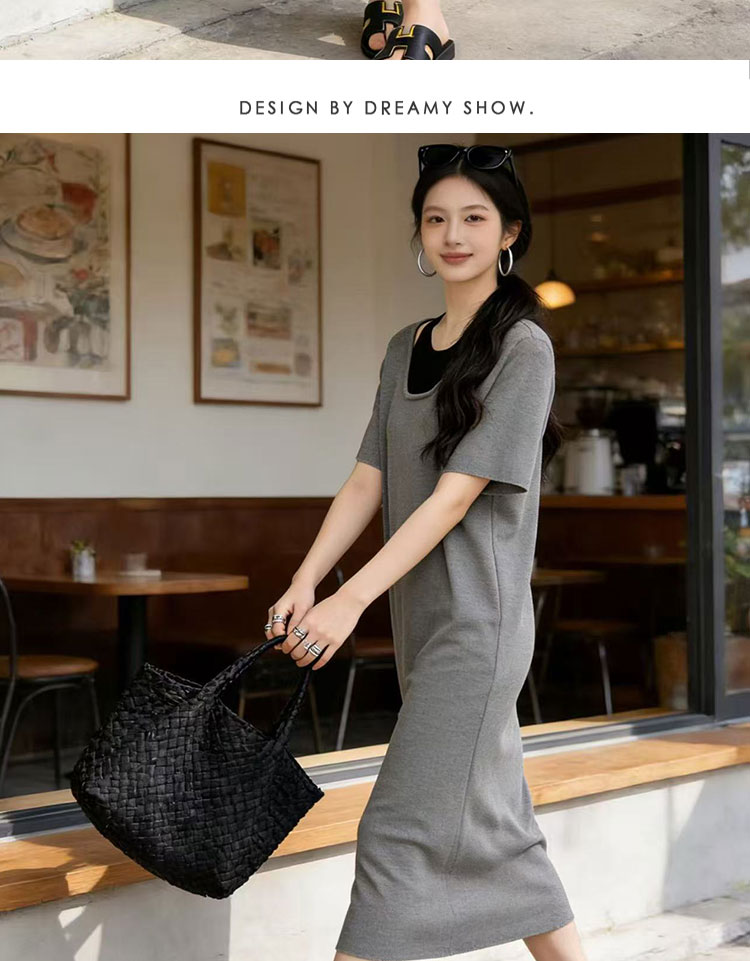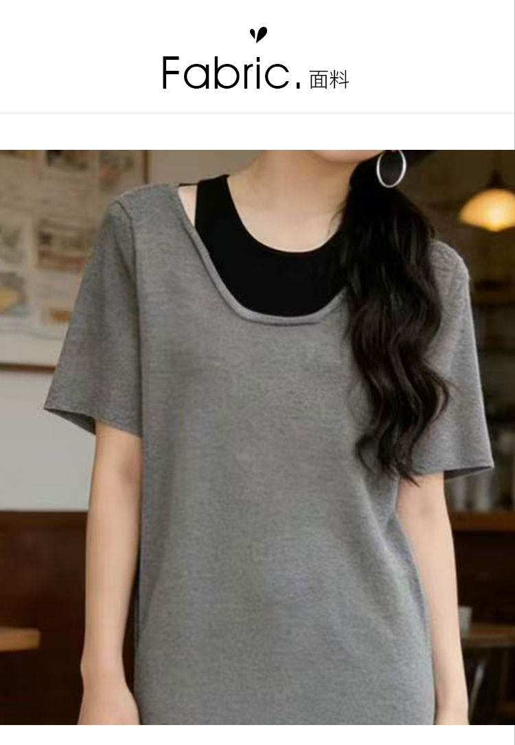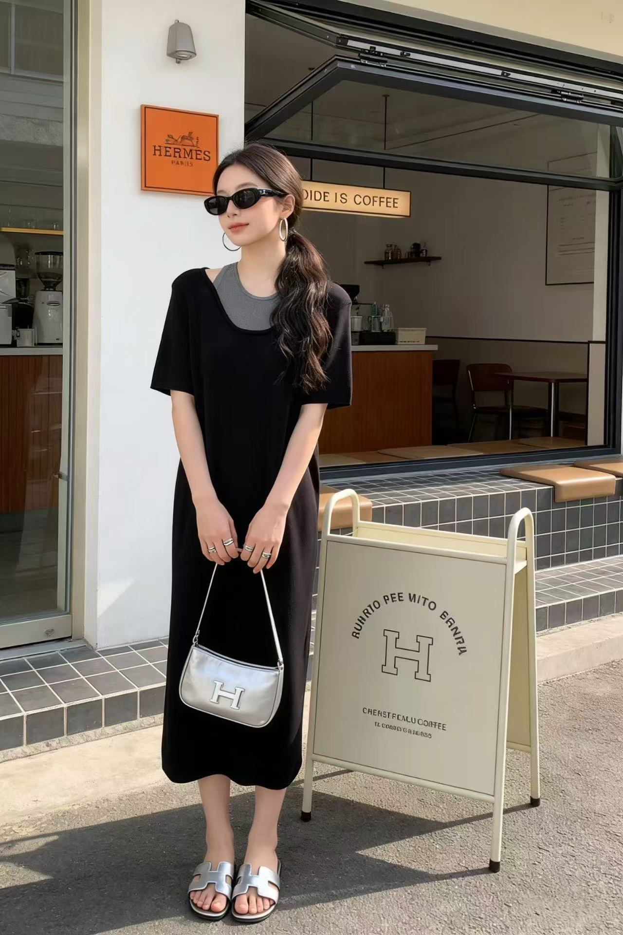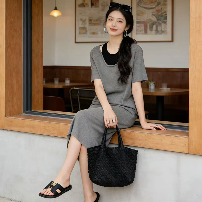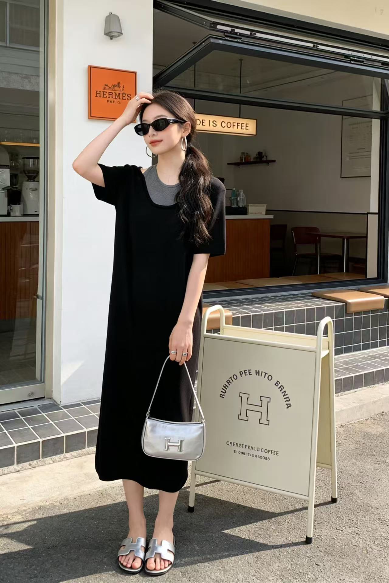 임산부 드레스 2026 여름 새로운 니트 망사 패치워크 루즈핏 페이크 레이어드 임산부 드레스