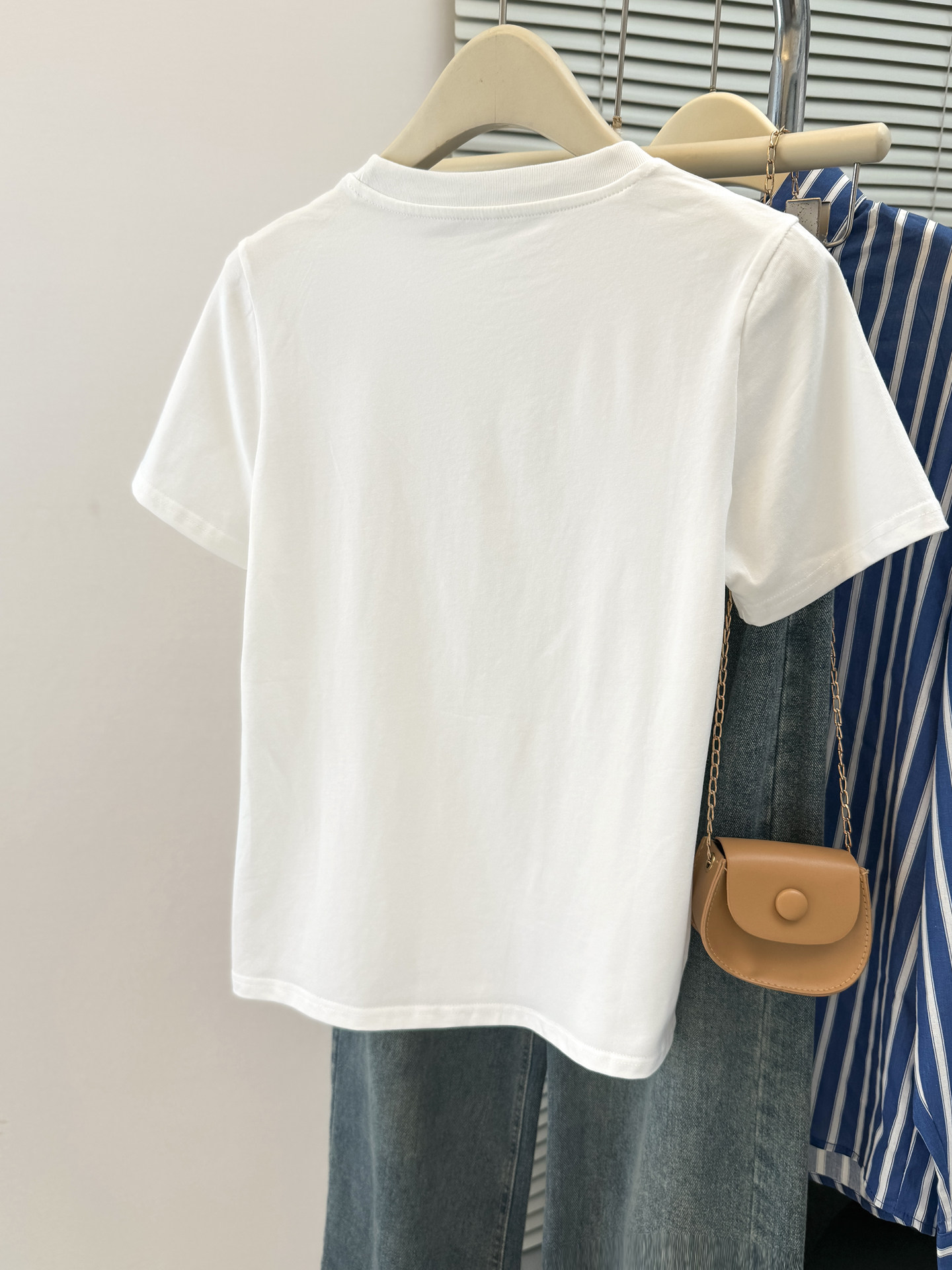 실사 배색 라운드 넥 반팔 티셔츠 여성 여름 새로운 몸매 가꾸기 한국 스타일 인사이드 가져 가라. 기본 셔츠 디자인 센스 맨위 서비스