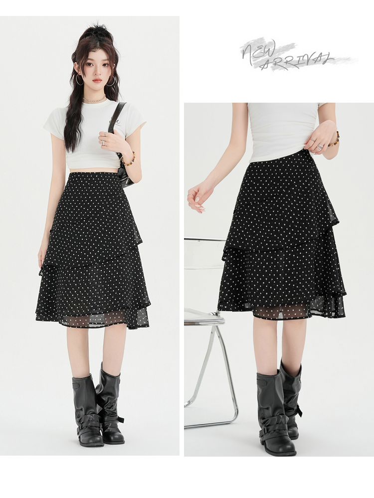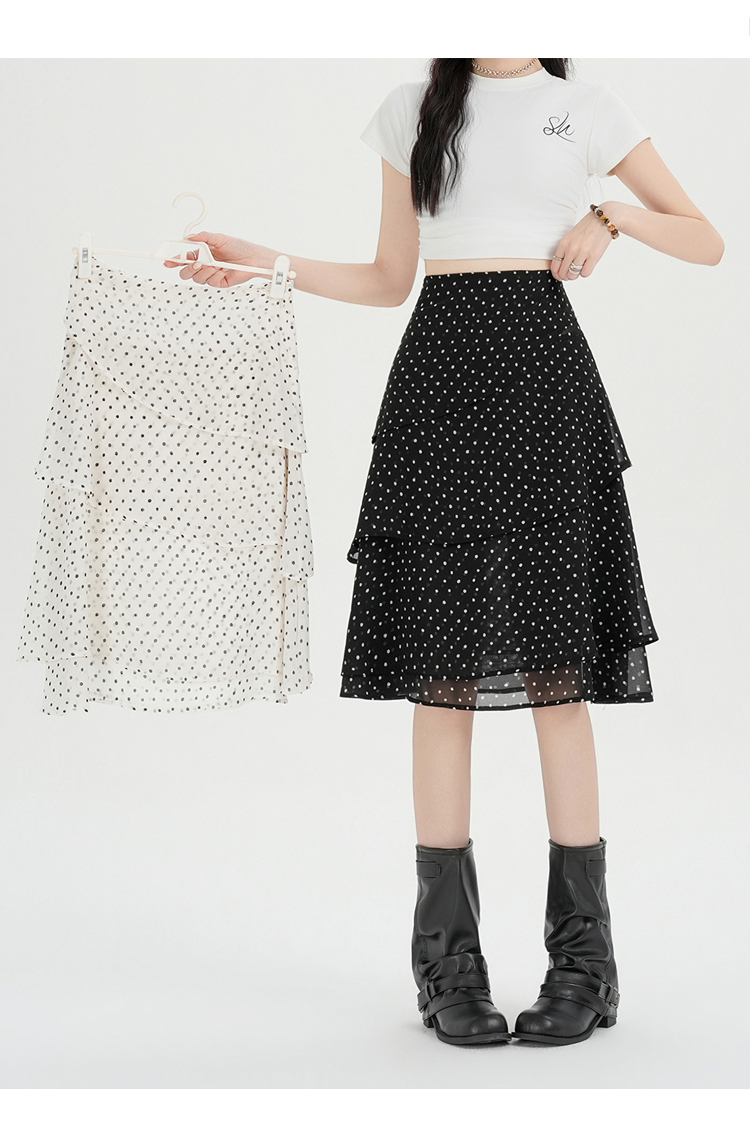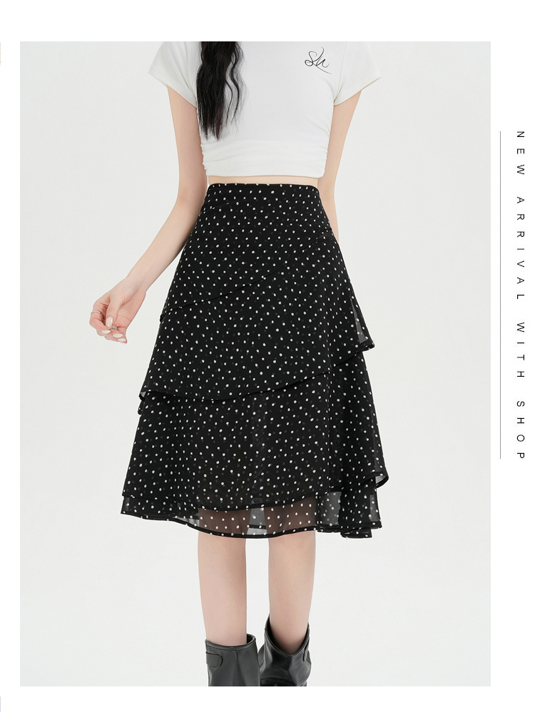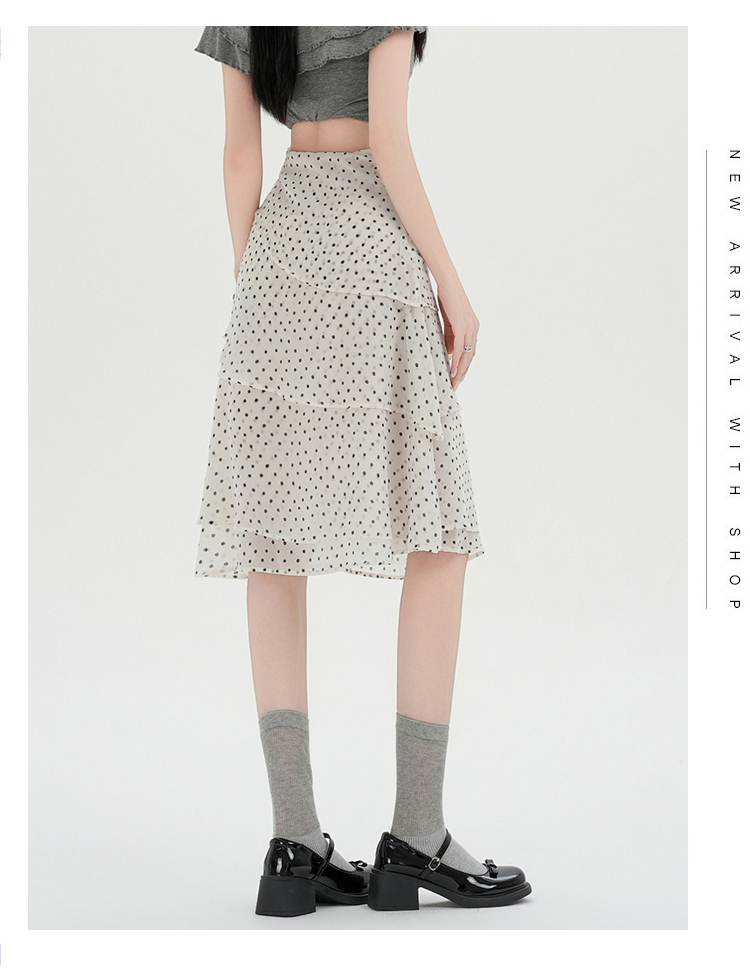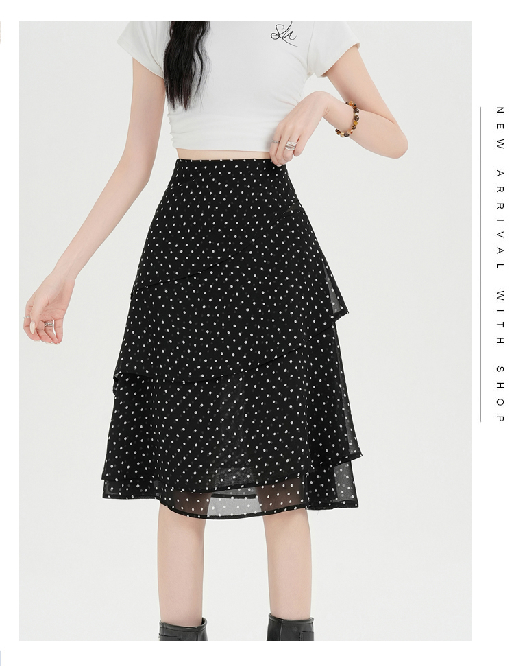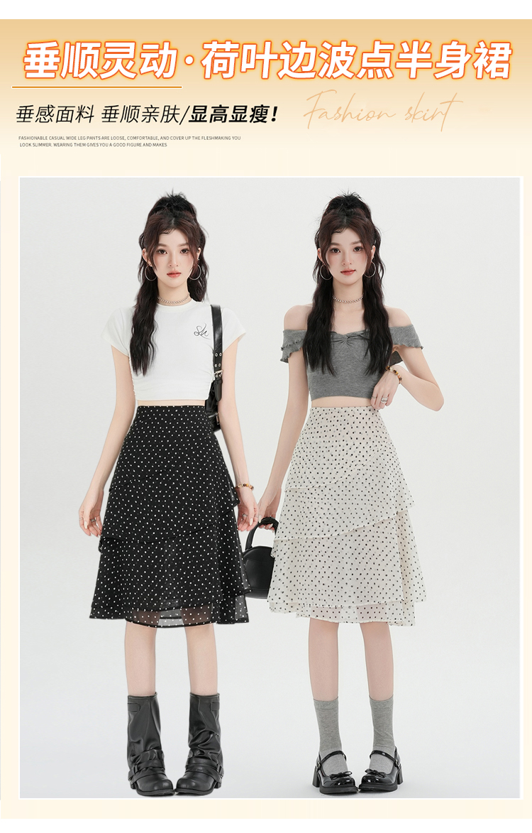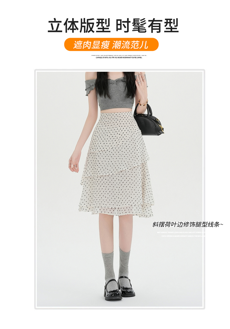 실사 2026 달콤함 프릴 도트 무늬 반신 스커트 여성 봄 여름 새로운 하이웨이스트 불규칙 연령 감소 한 마디 중간 스커트