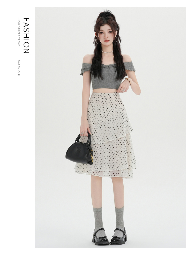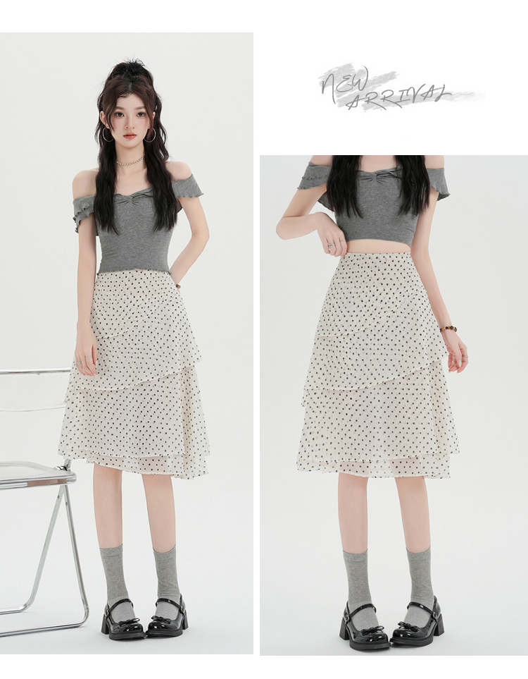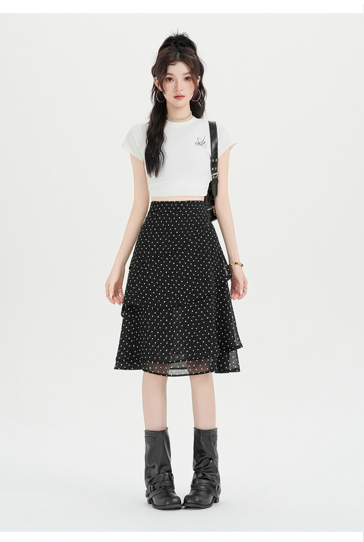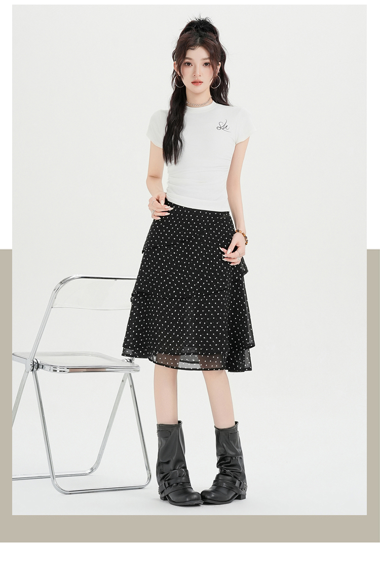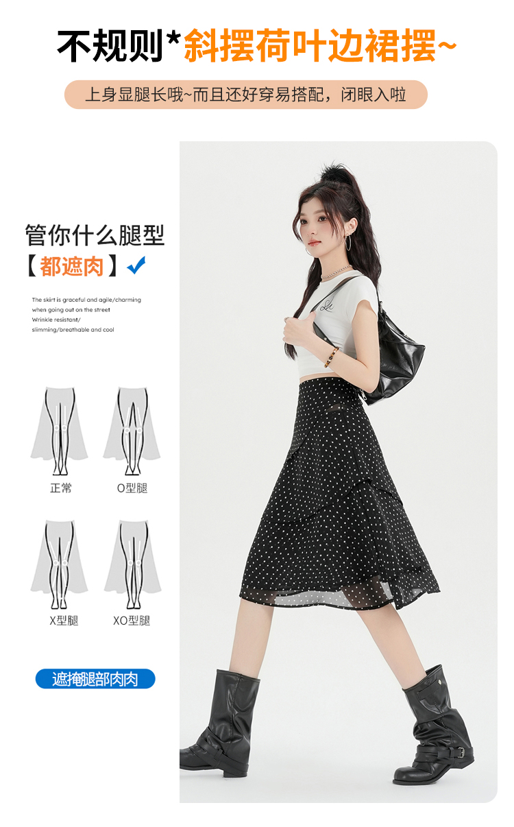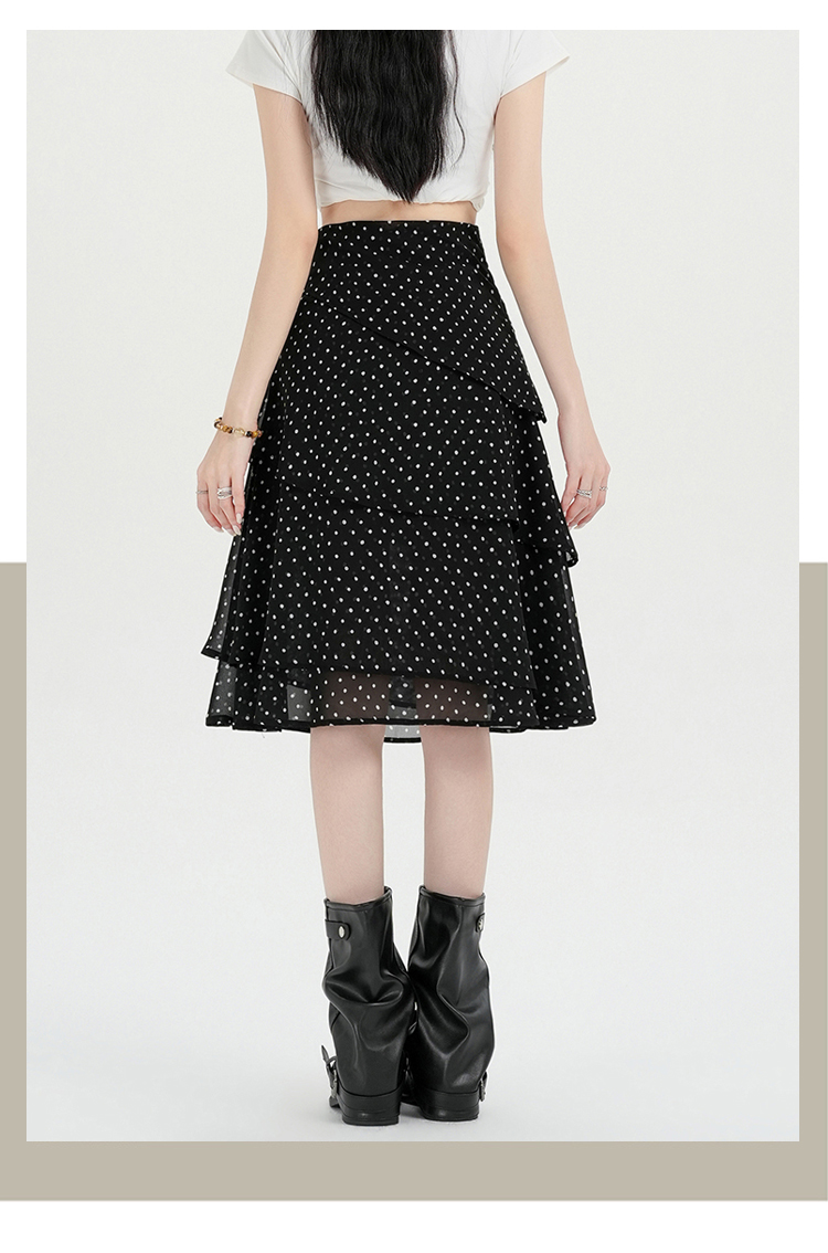 실사 2026 달콤함 프릴 도트 무늬 반신 스커트 여성 봄 여름 새로운 하이웨이스트 불규칙 연령 감소 한 마디 중간 스커트