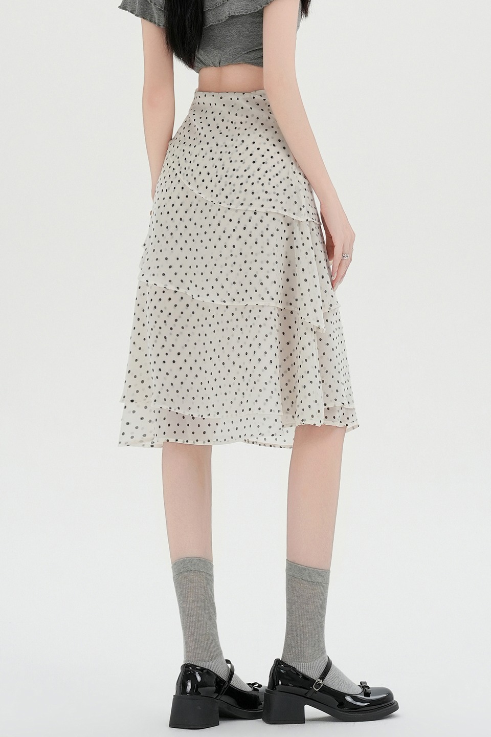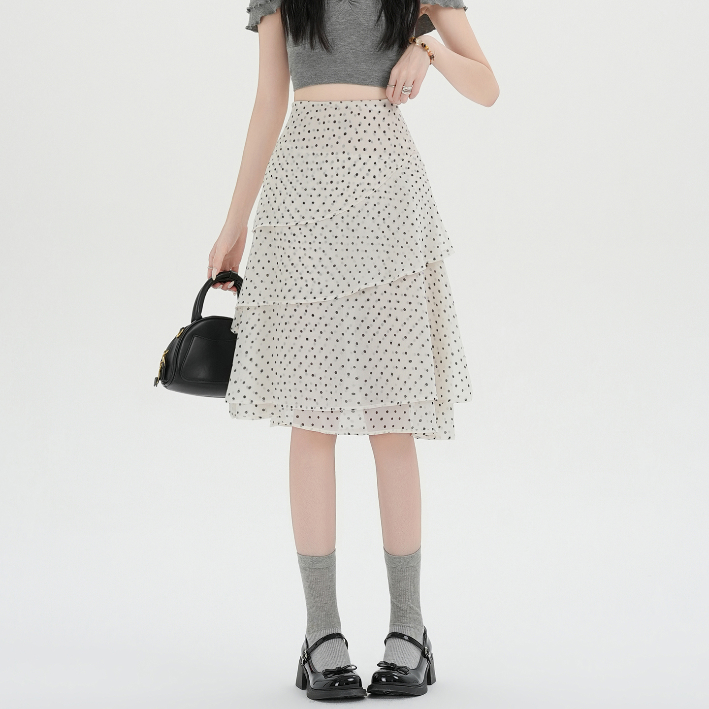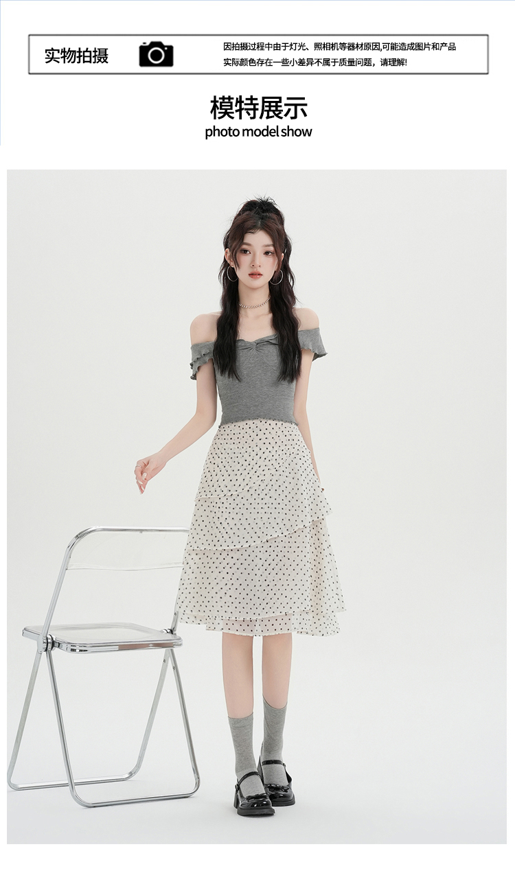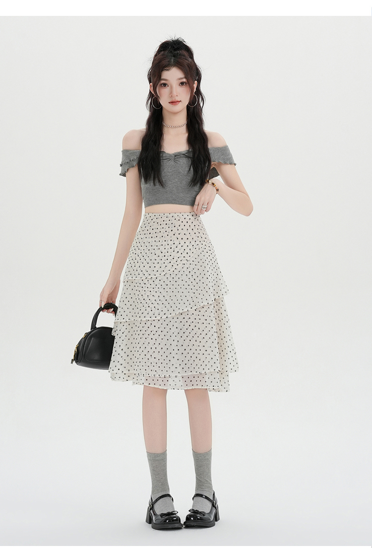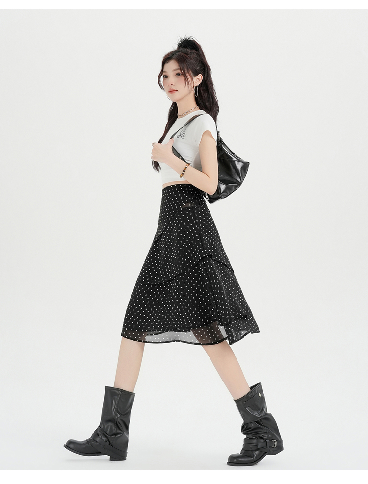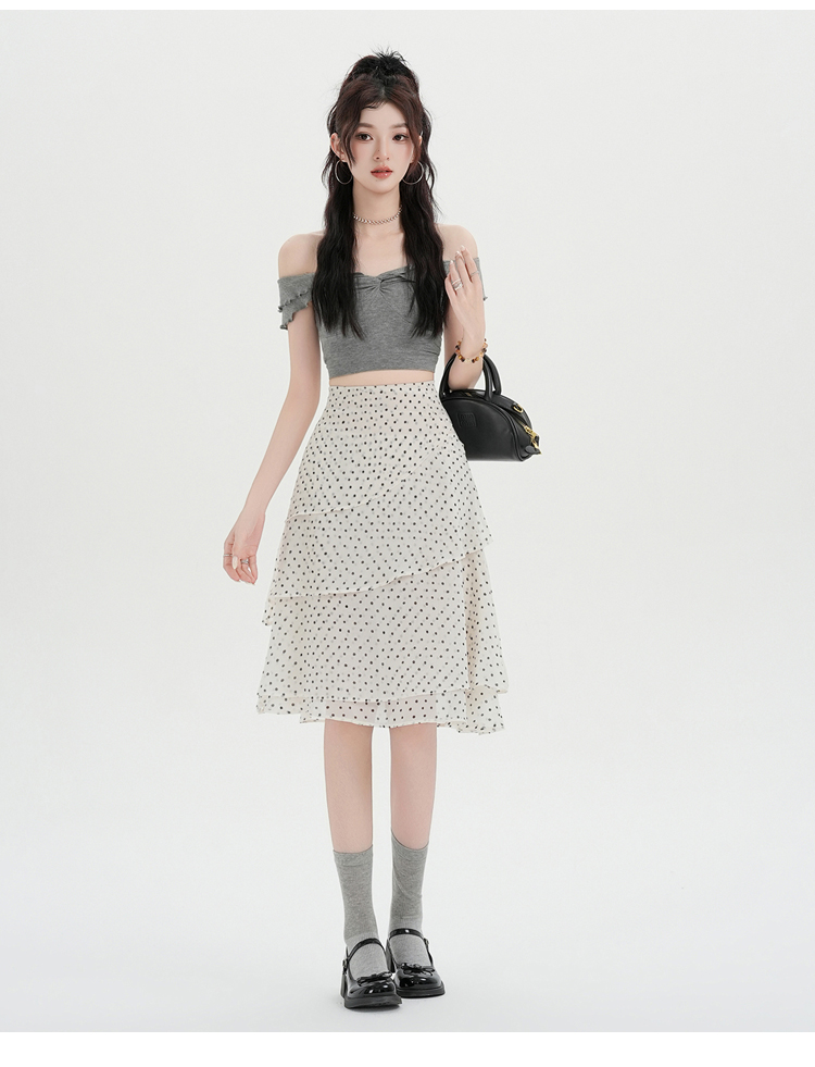 실사 2026 달콤함 프릴 도트 무늬 반신 스커트 여성 봄 여름 새로운 하이웨이스트 불규칙 연령 감소 한 마디 중간 스커트