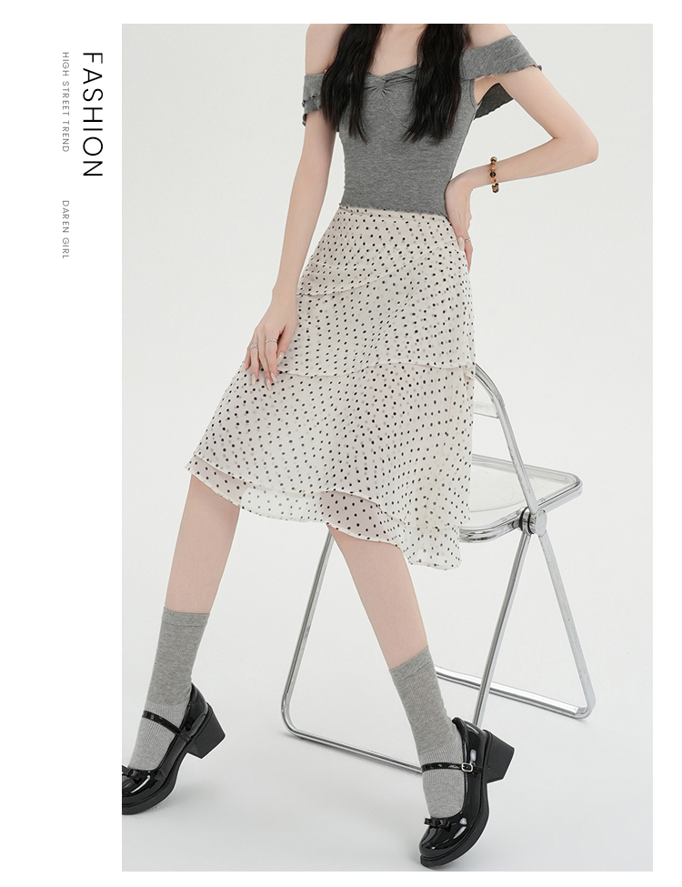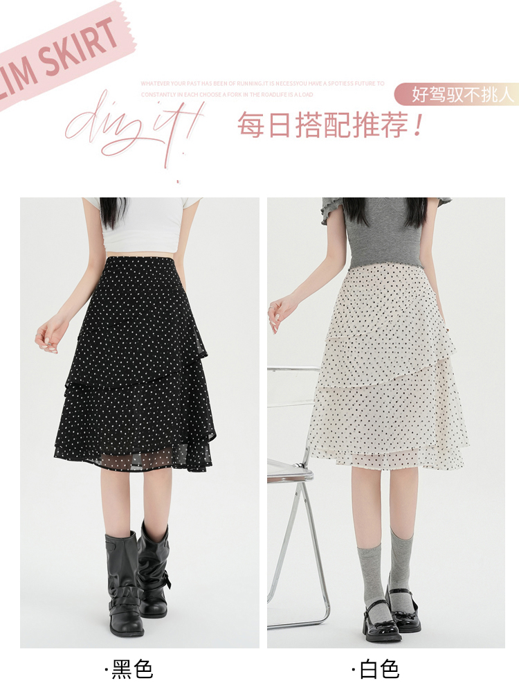 실사 화이트 도트 무늬 반신 스커트 여름 새로운 중간 길이 프랑스식 하이웨이스트 슬림해 보이는 한 마디 큰 진자 인어 꼬리 스커트