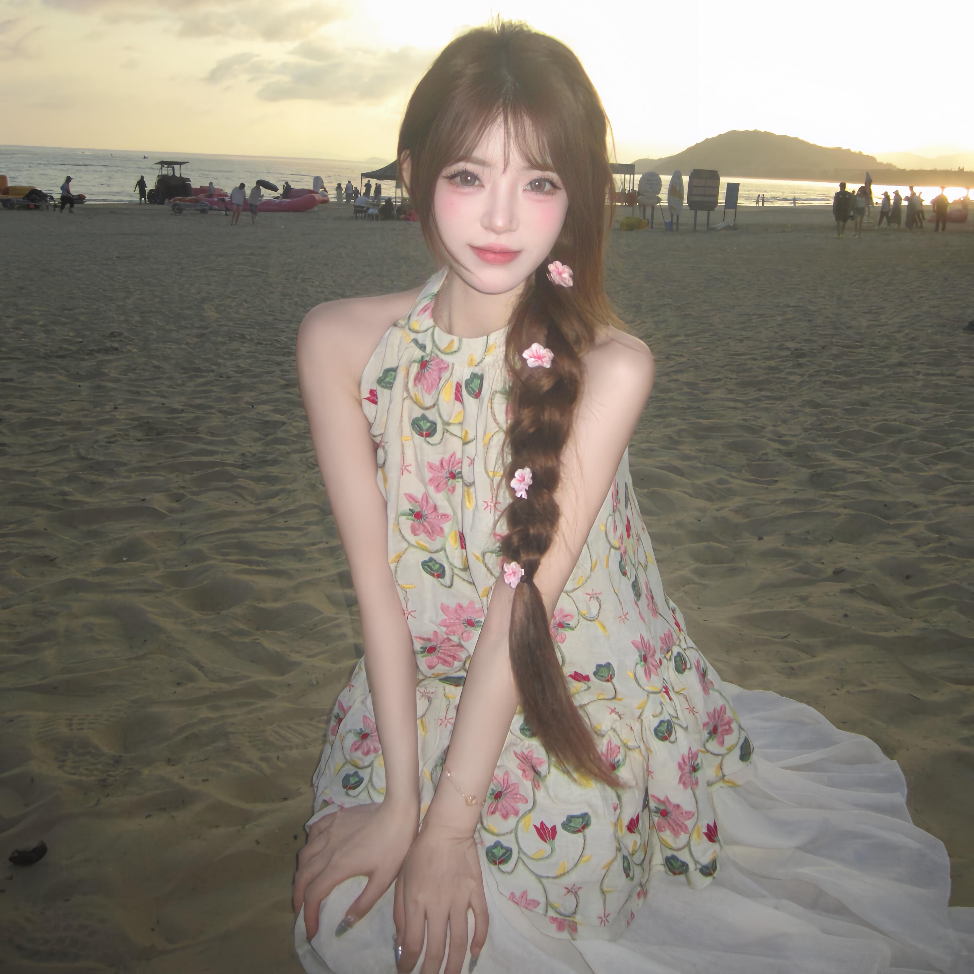 Du 엉덩이 복숭아 오리지널 휴일 마드리드 봄 아모이 중식 국풍 자수 면 소재 데님 민소매 맨위 반바지