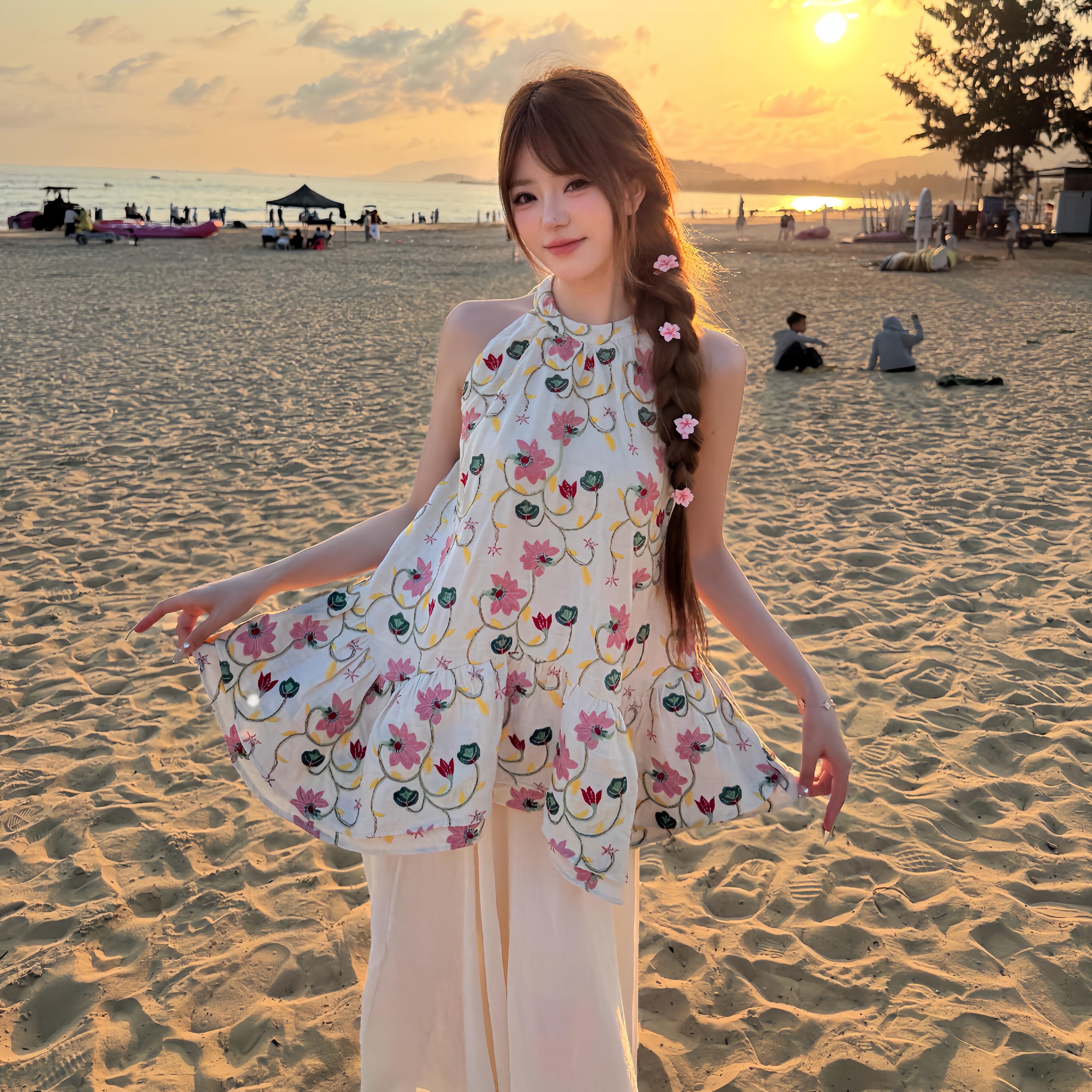 2026 봄 새로운 순수한 욕망 슈퍼 요정 프린트 다용도 조끼 한 부서 달콤한 매운맛 루즈핏 품격 행침 목 맨위 여성